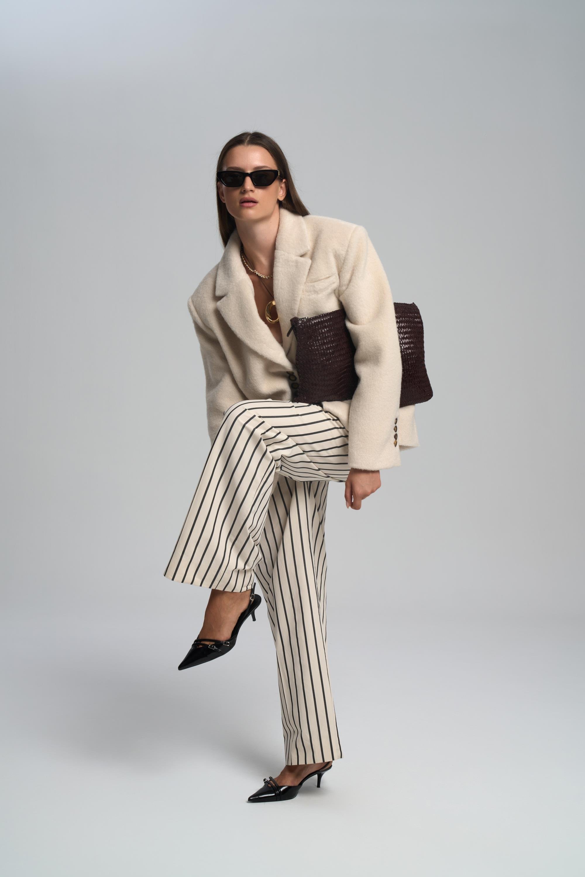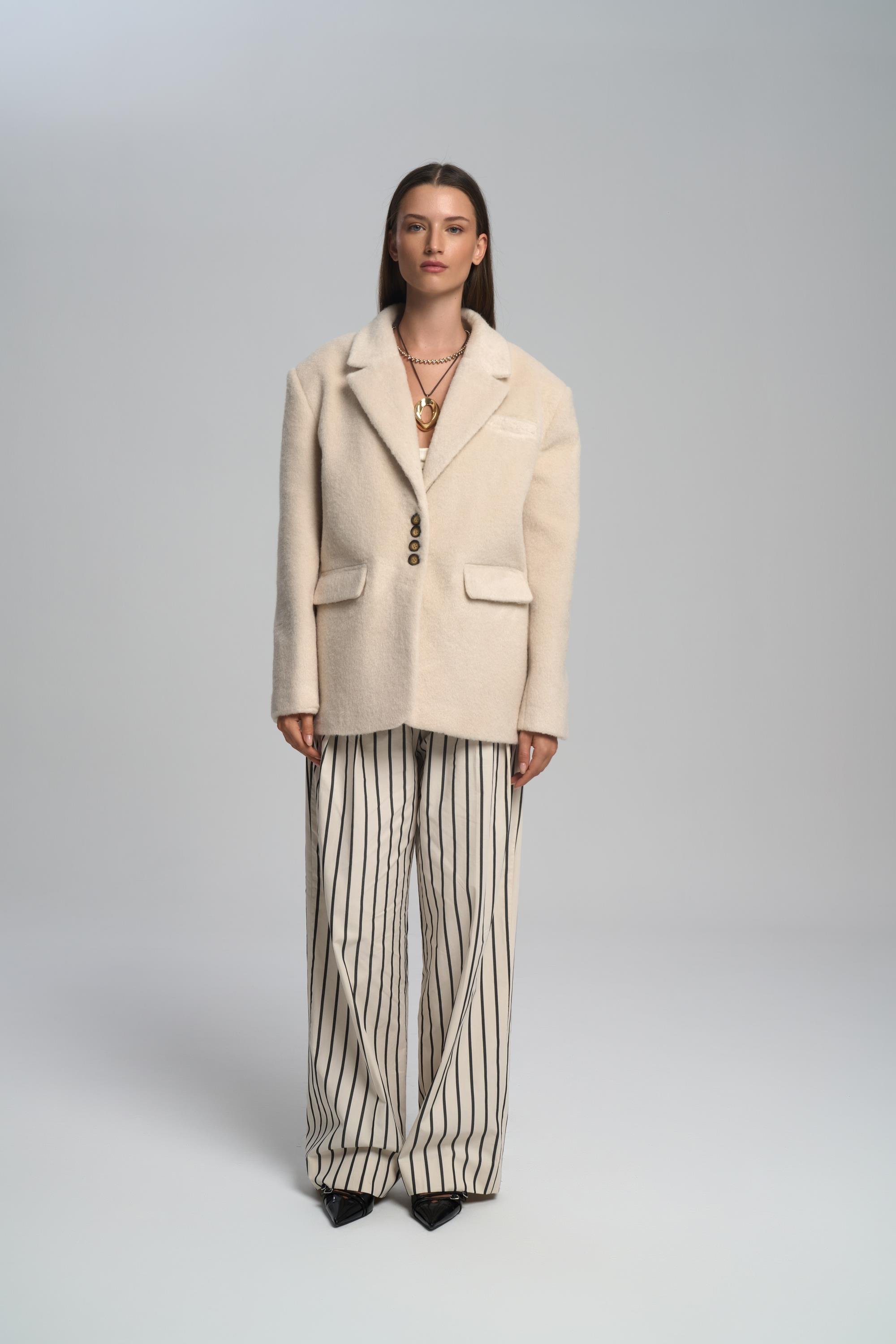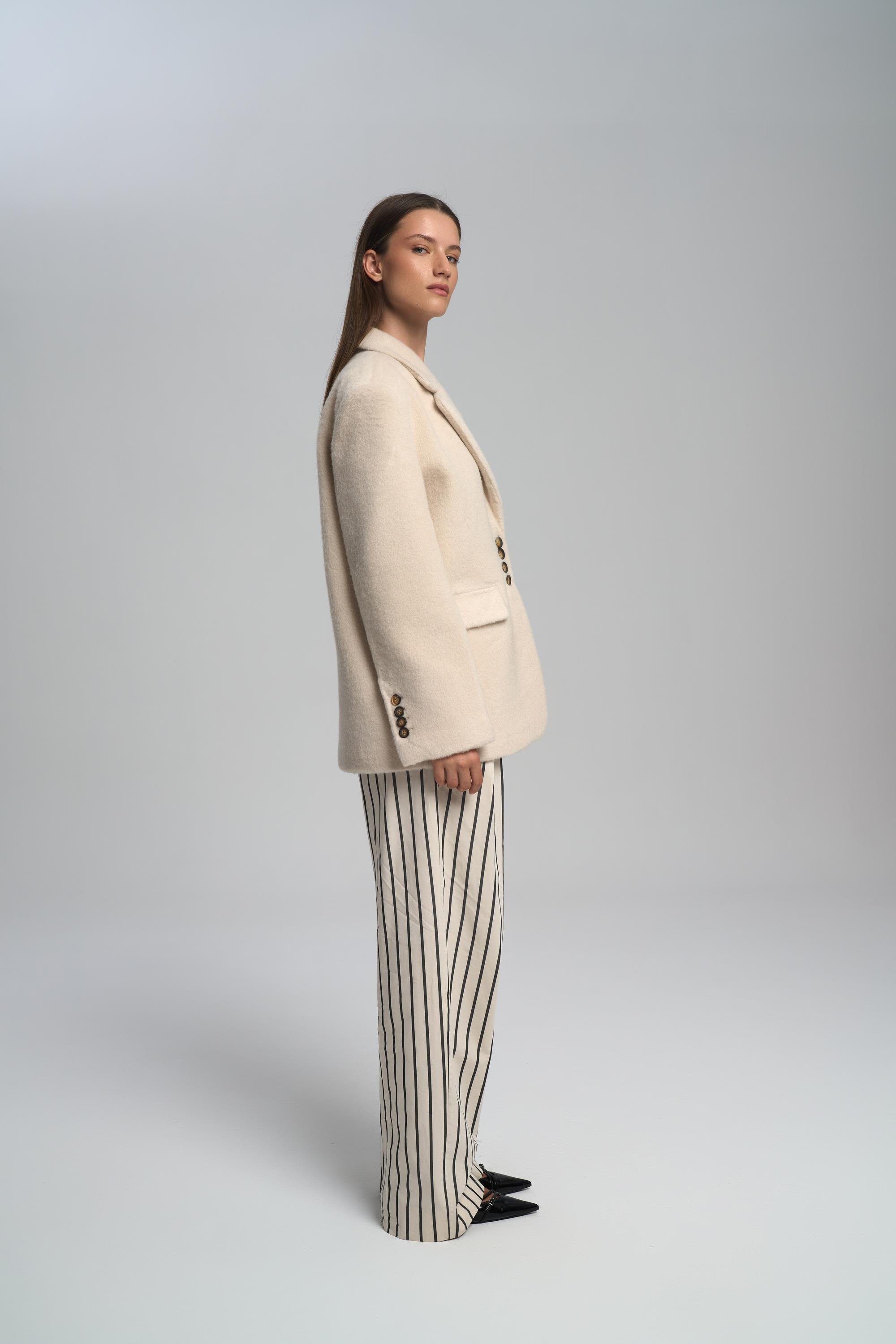 Katlı yaka, dökümlü blazer ceket. Vatkalı ve astarlı. Önü ve kolları düğmeli.