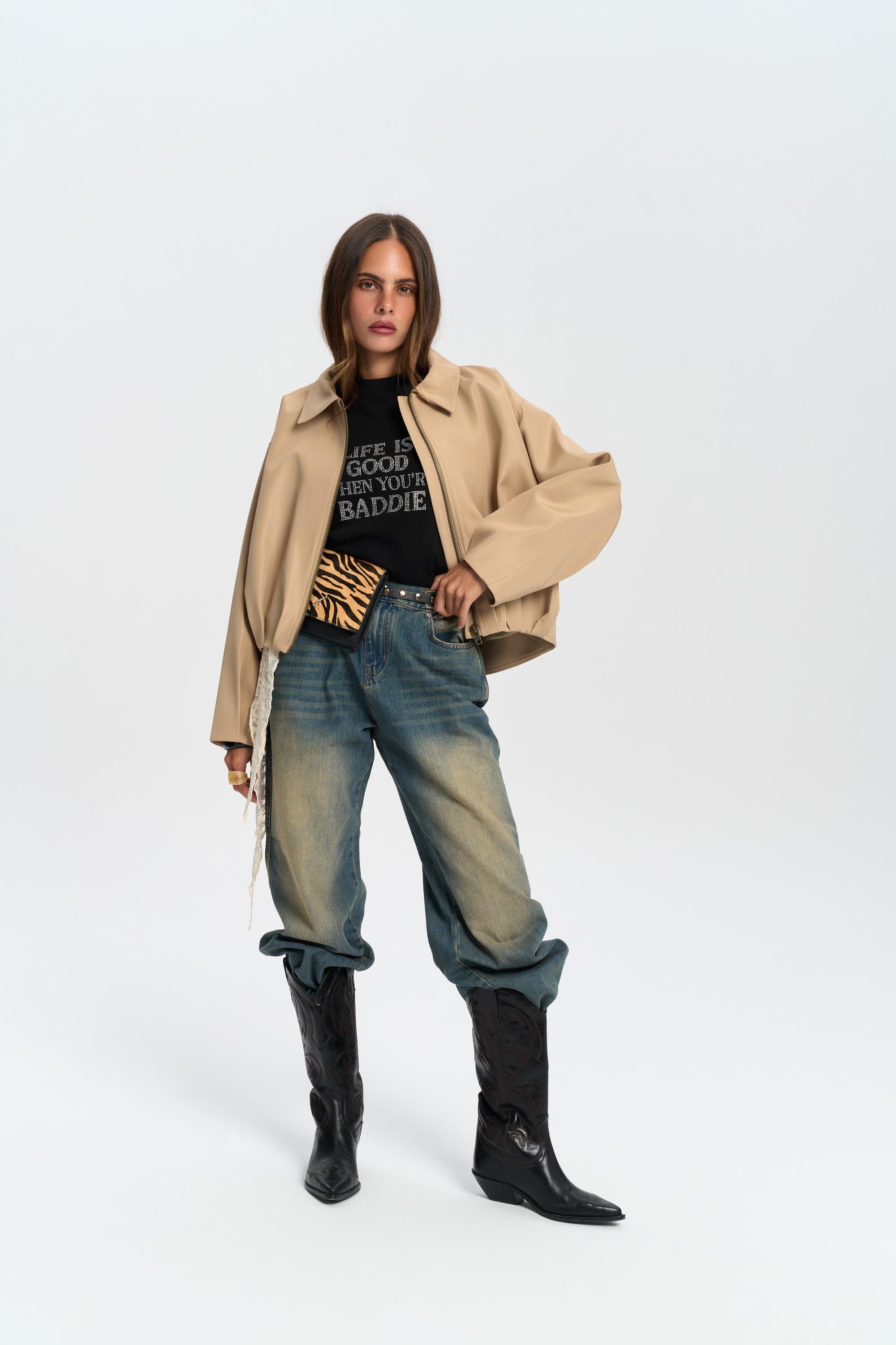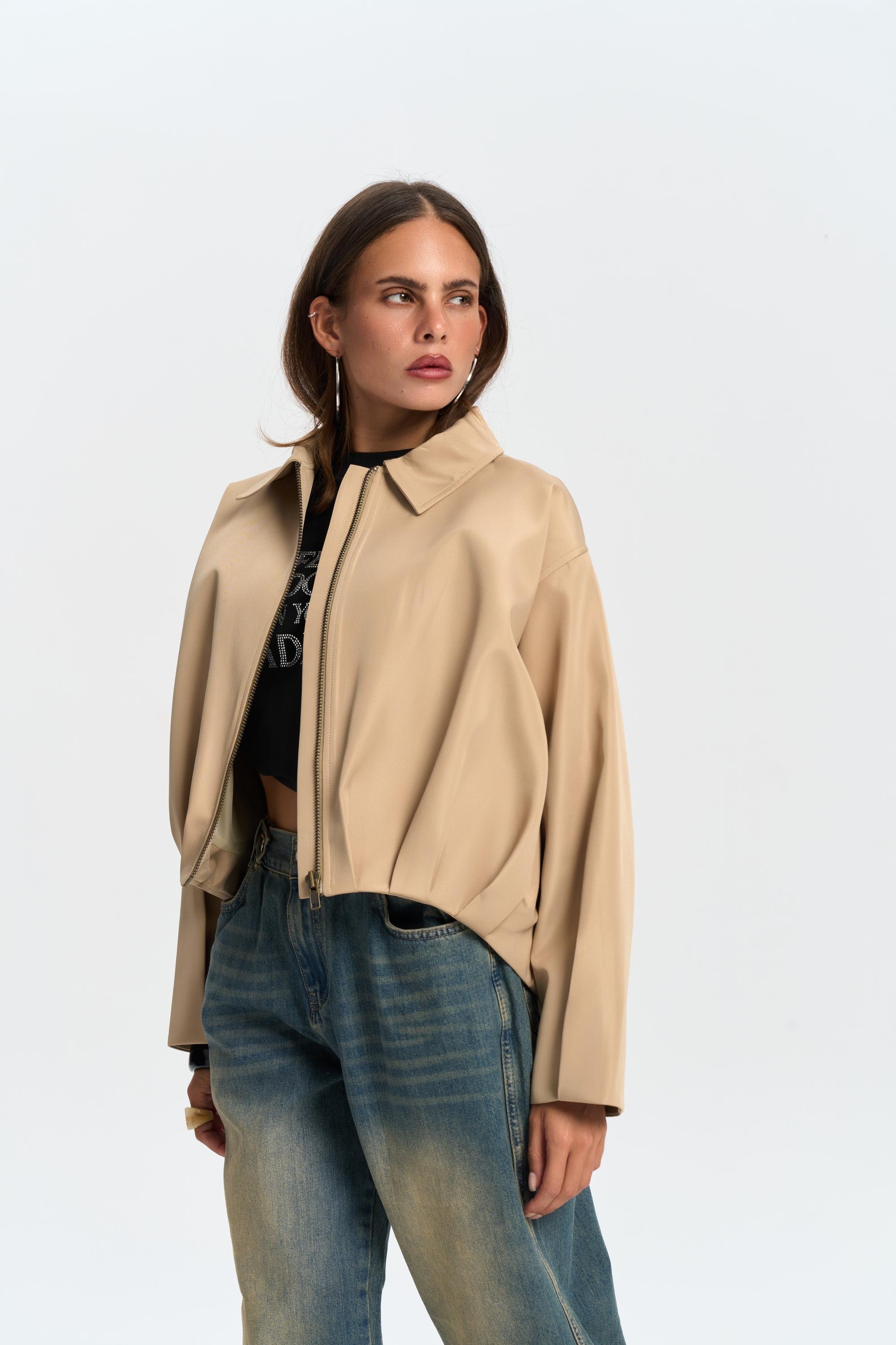 Astrid Mevsimlik Bej Kısa Bomber Ceket Astrid Mevsimlik Camel Kısa Bomber Ceket Astrid Mevsimlik Vizon Kısa Bomber Ceket