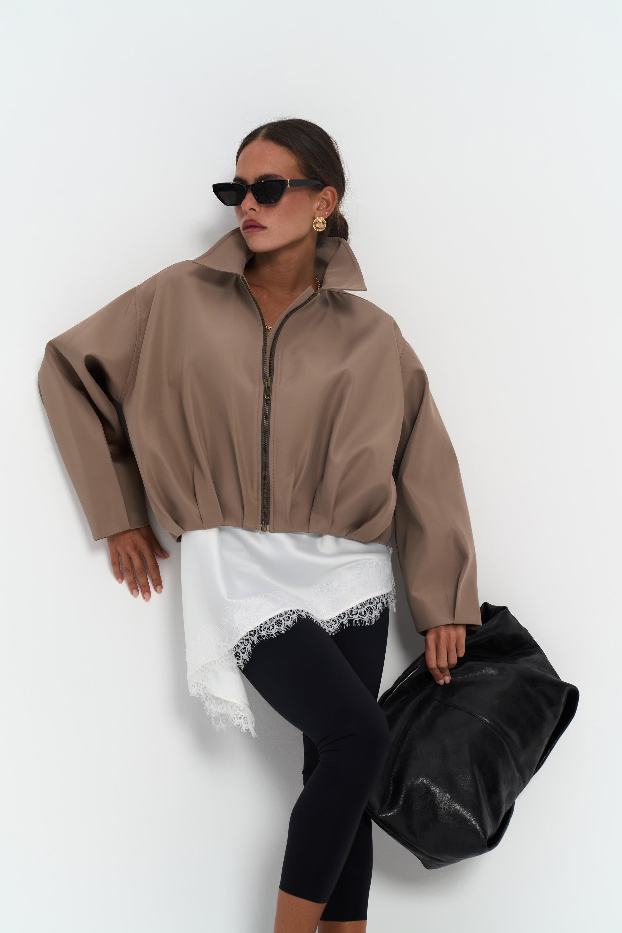 Astrid Mevsimlik Bej Kısa Bomber Ceket Astrid Mevsimlik Camel Kısa Bomber Ceket Astrid Mevsimlik Vizon Kısa Bomber Ceket
