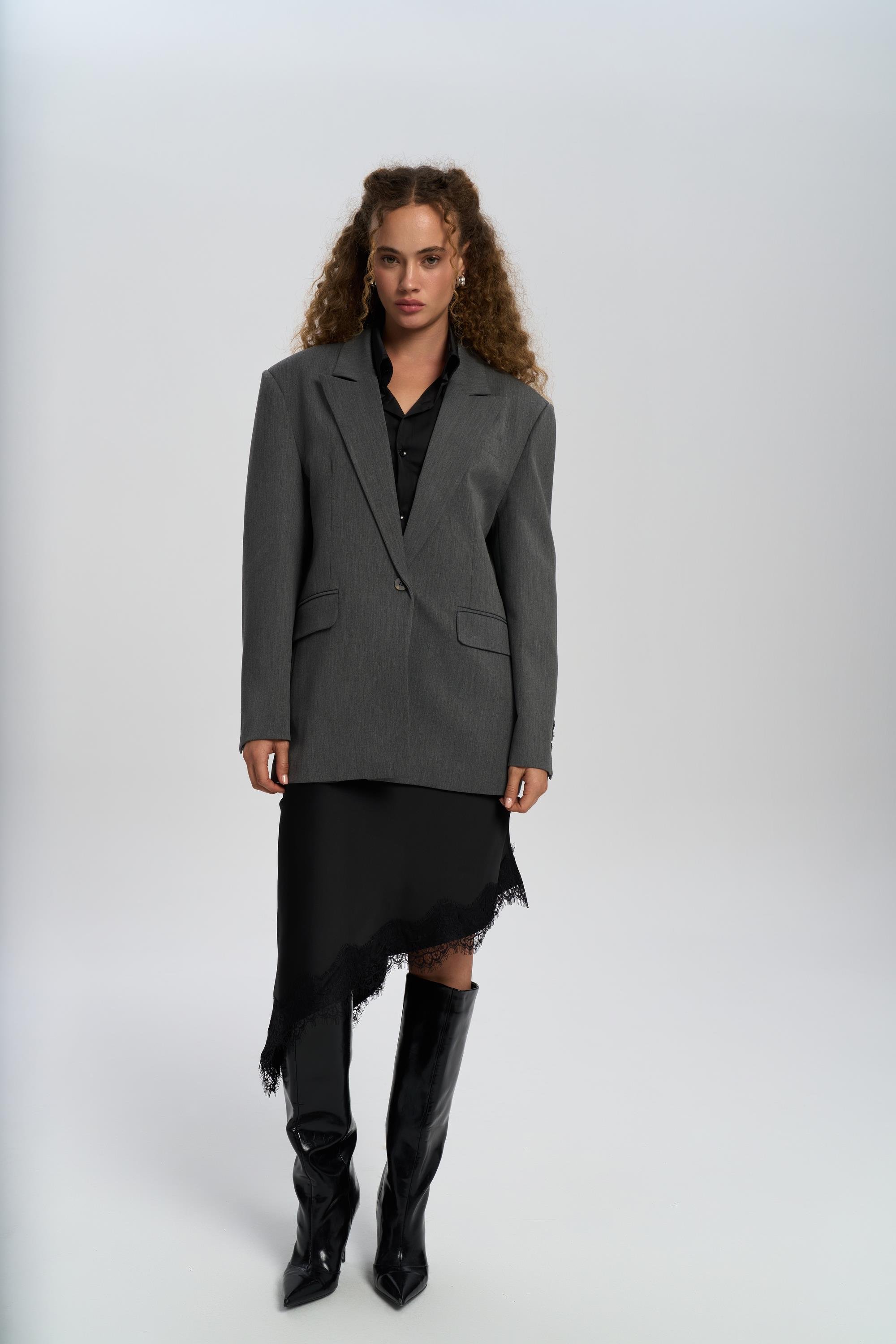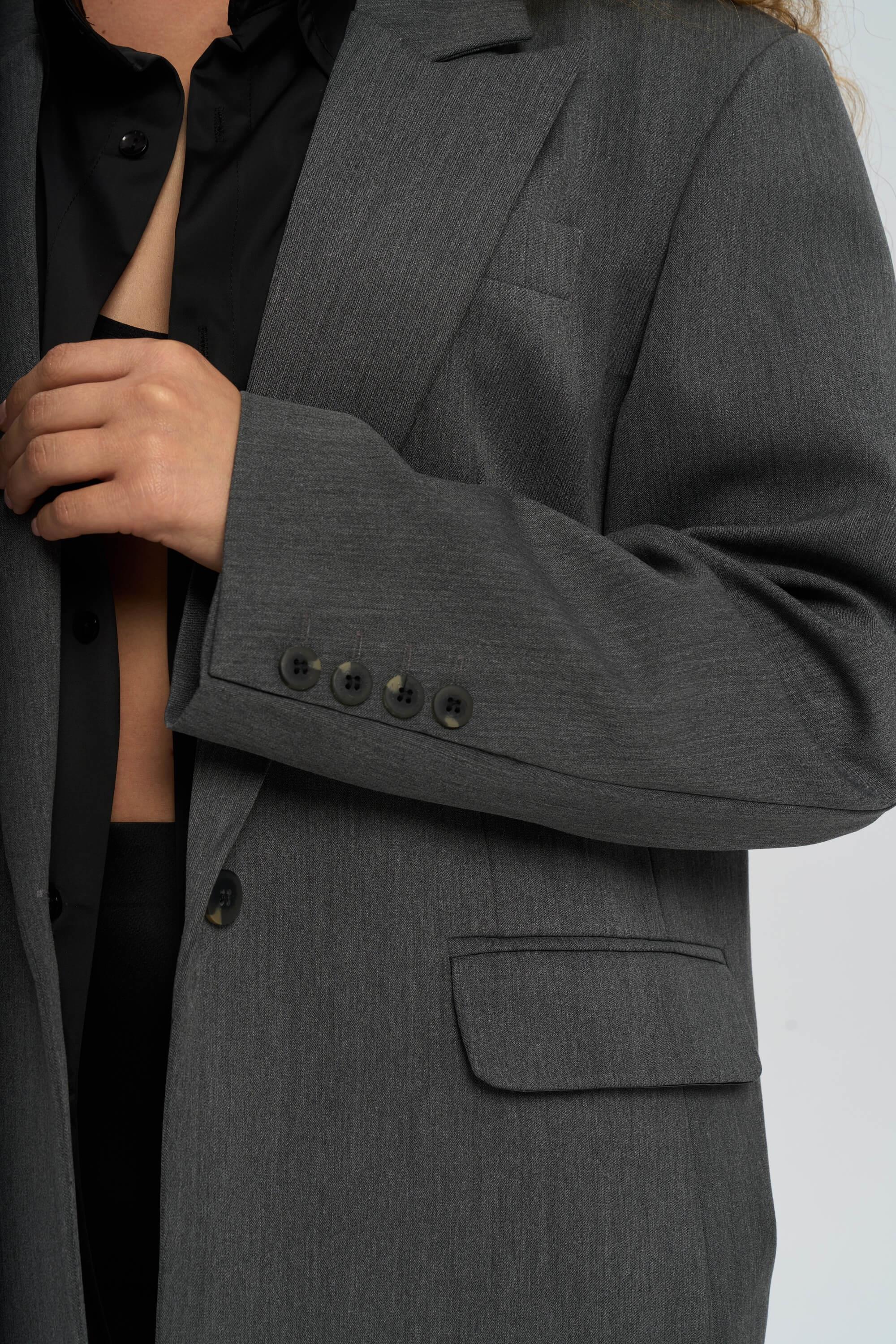 Rahat formda, içte fonksiyonel çıkarılabilir gömlek detaylı, cepli blazer ceket.