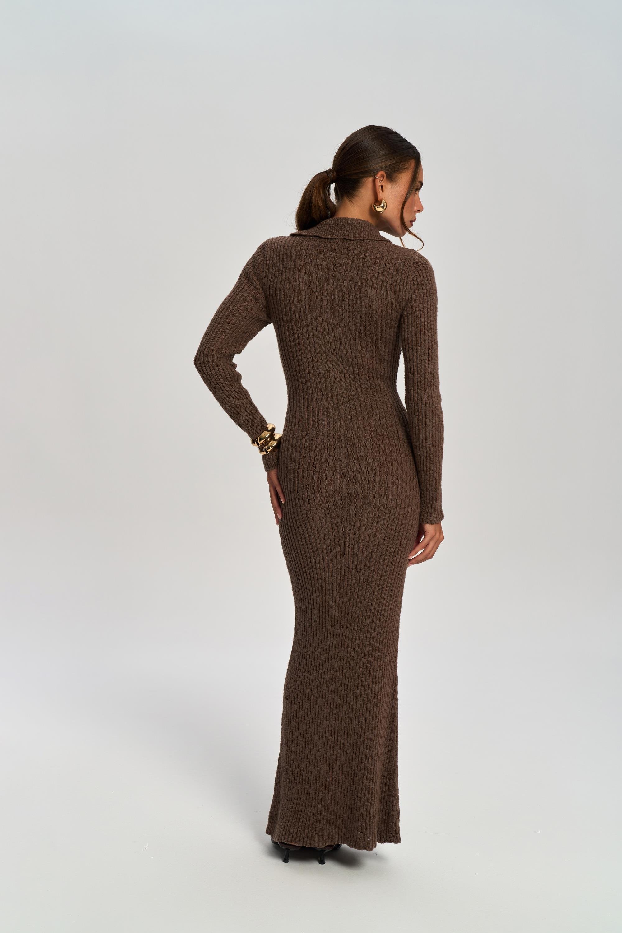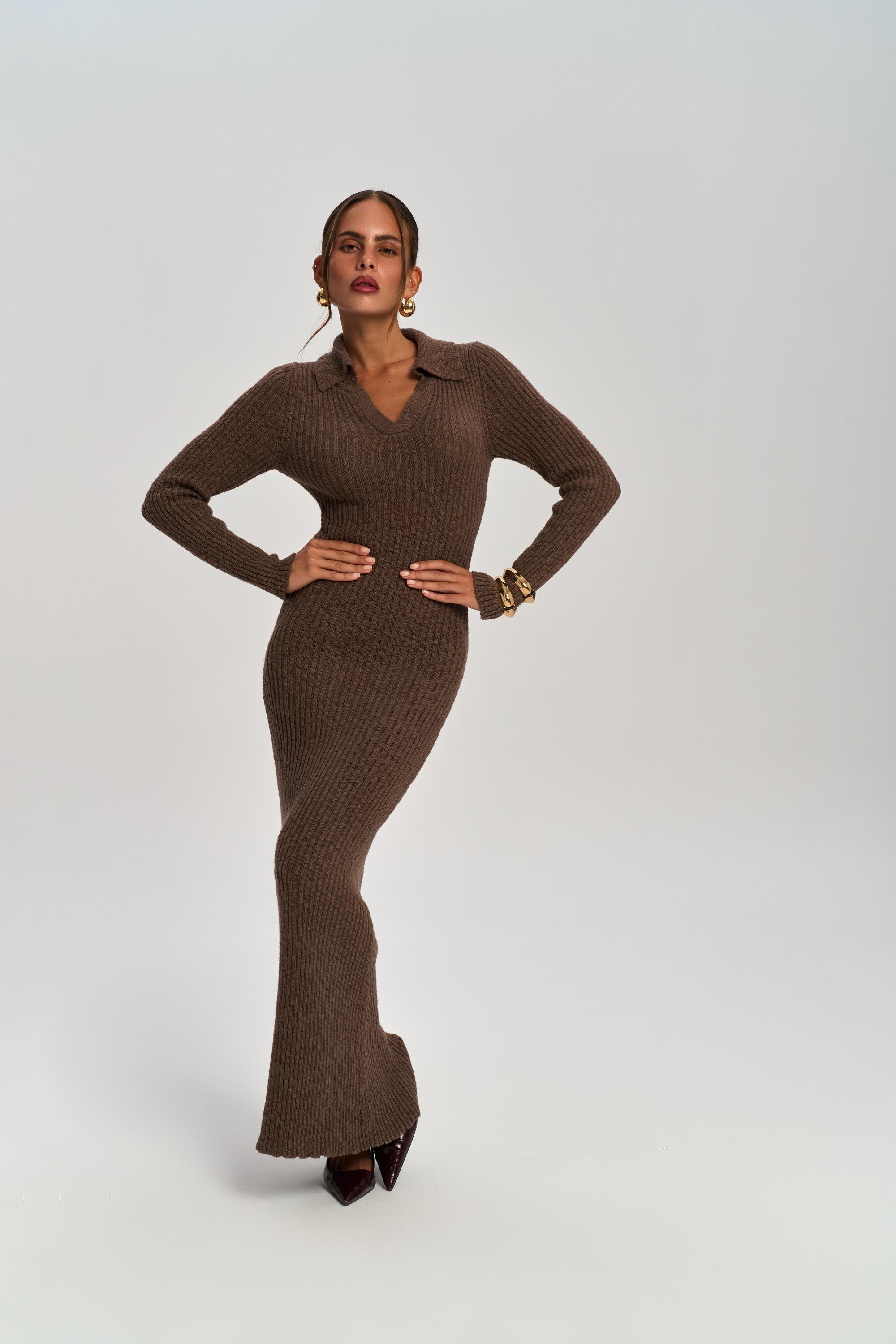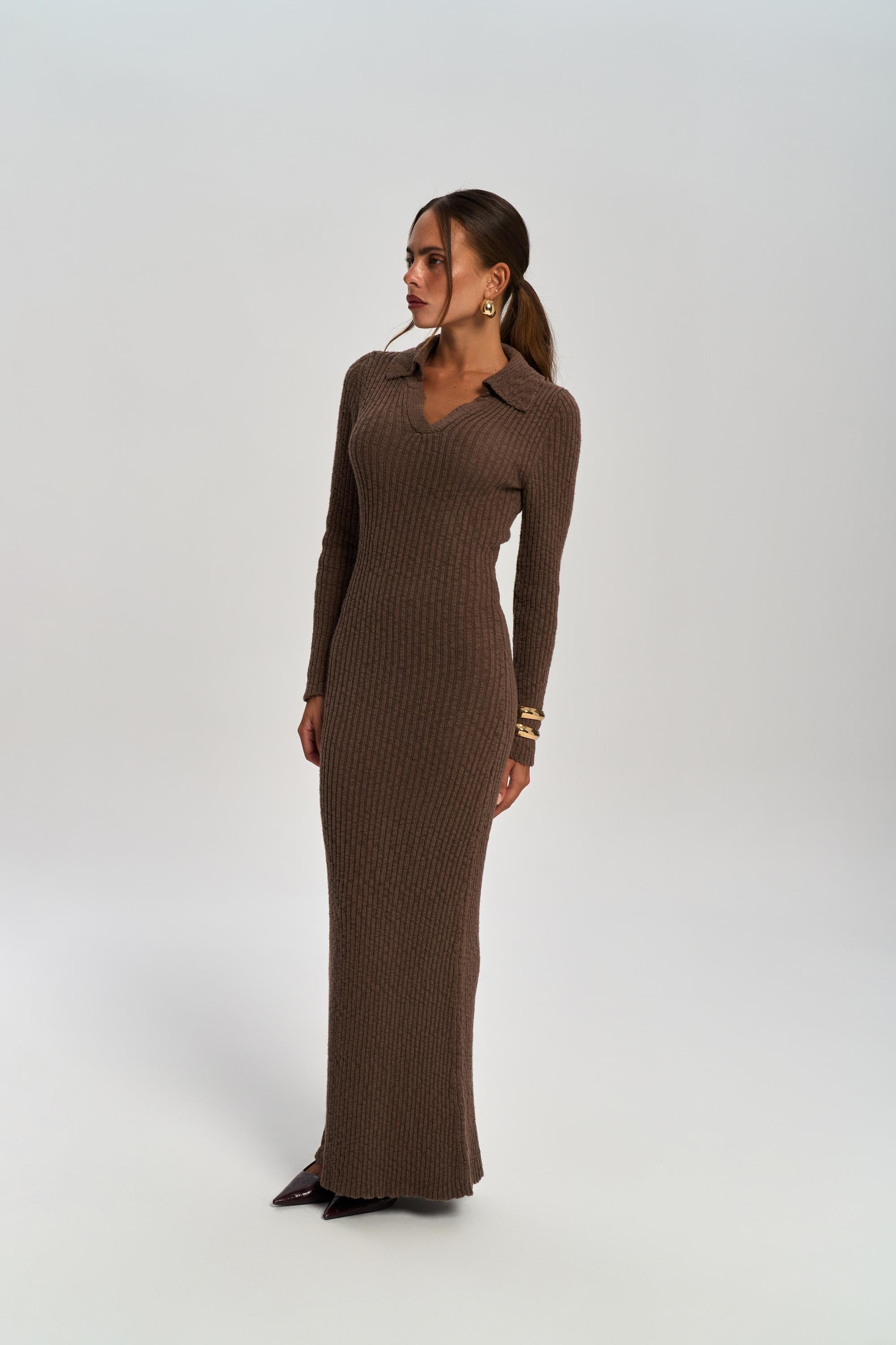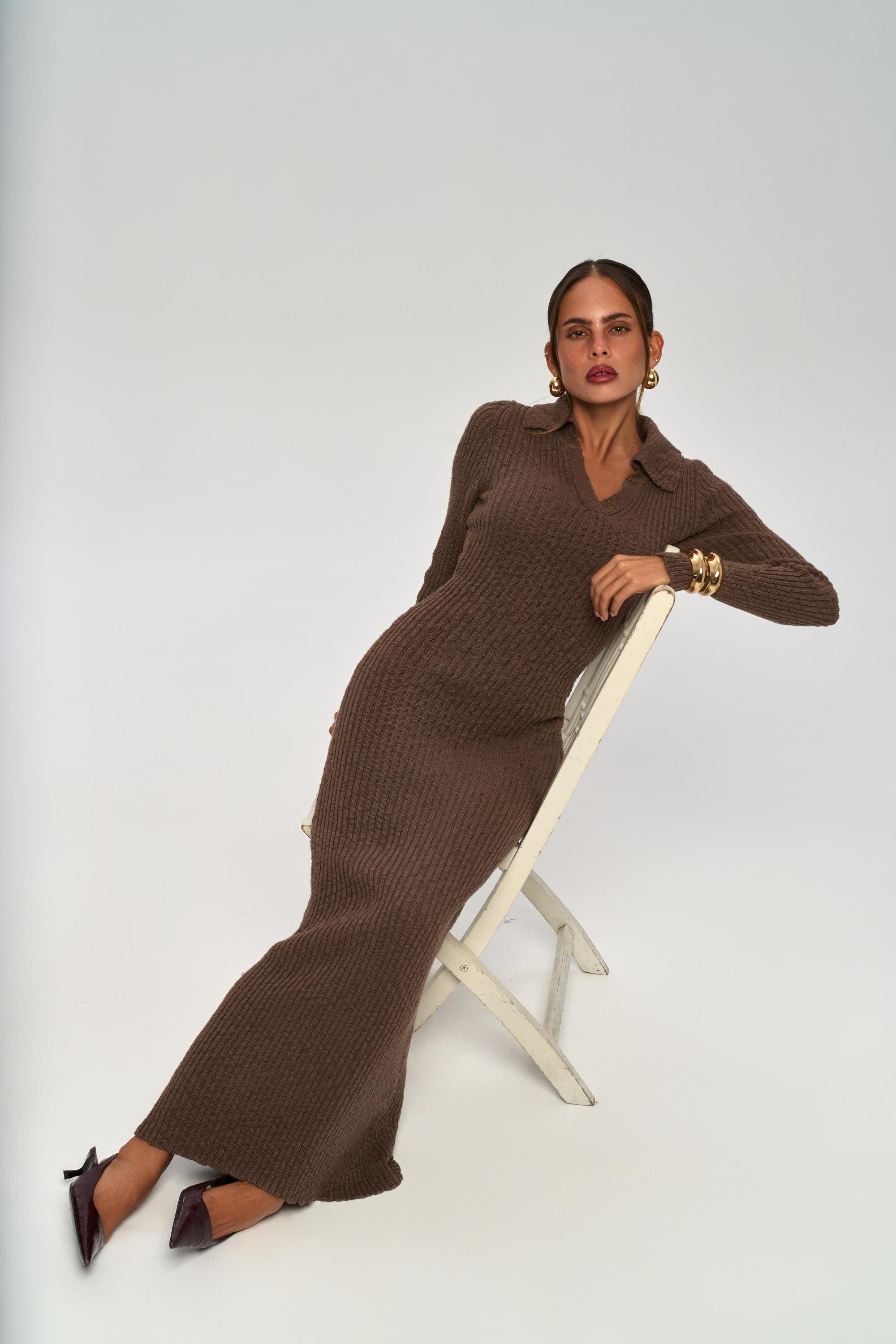Eloria Polo Yaka Kahve Triko Elbise (8684923035268)
