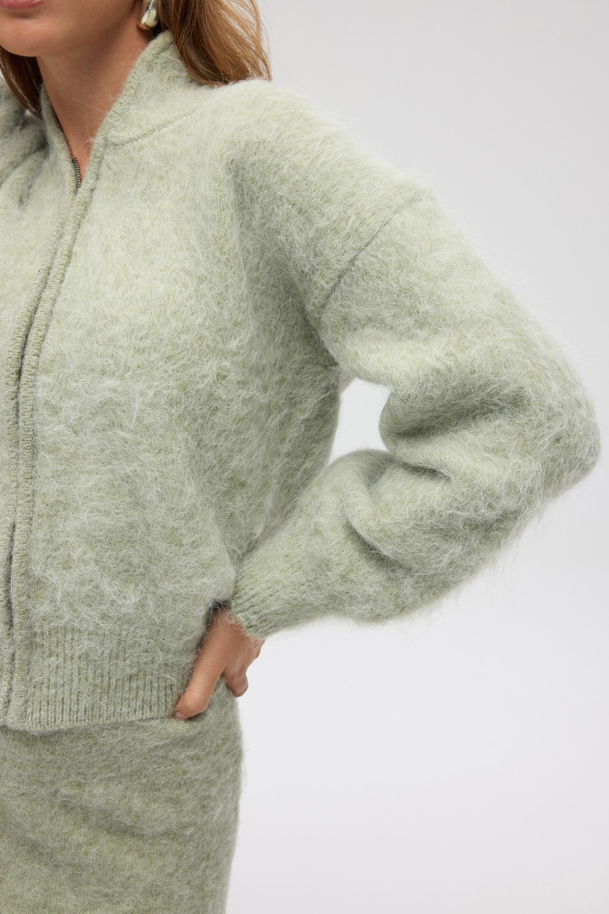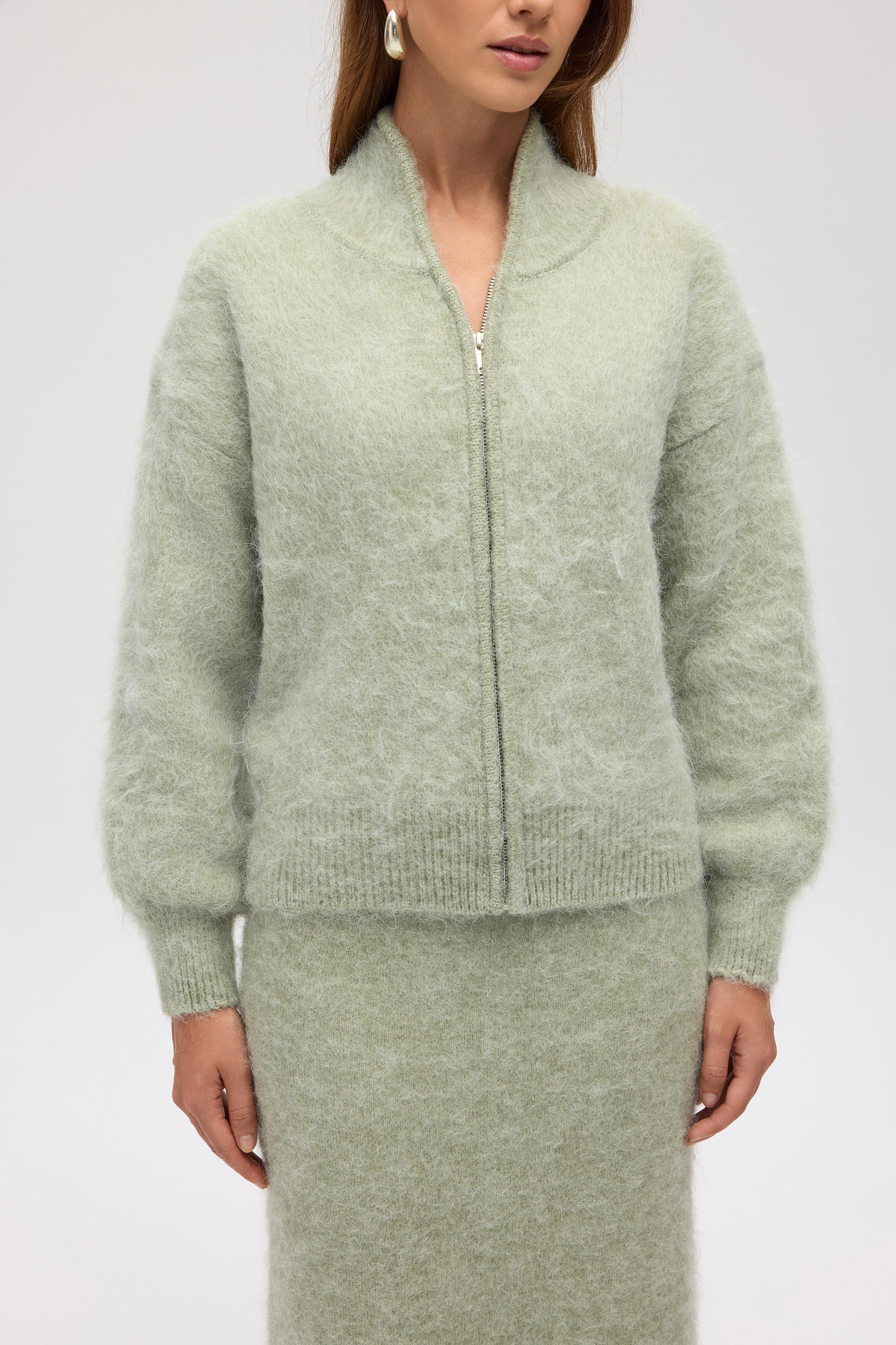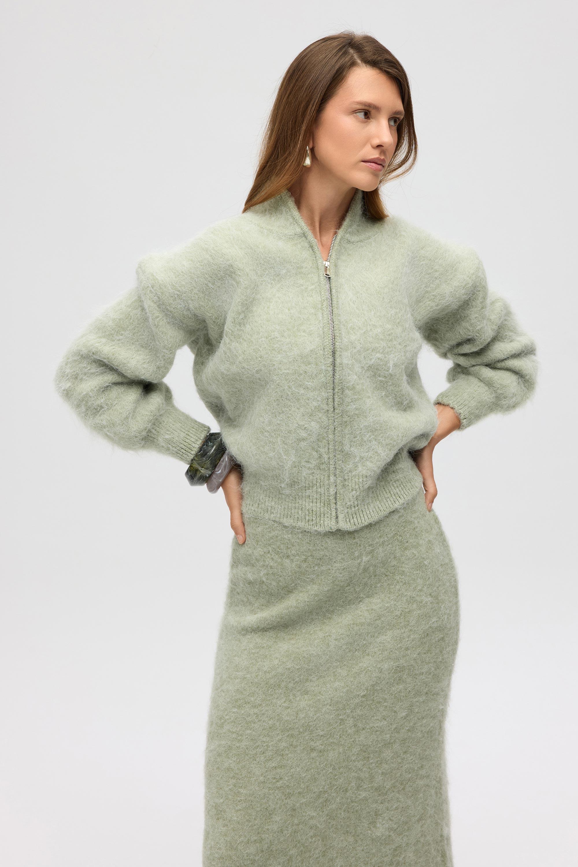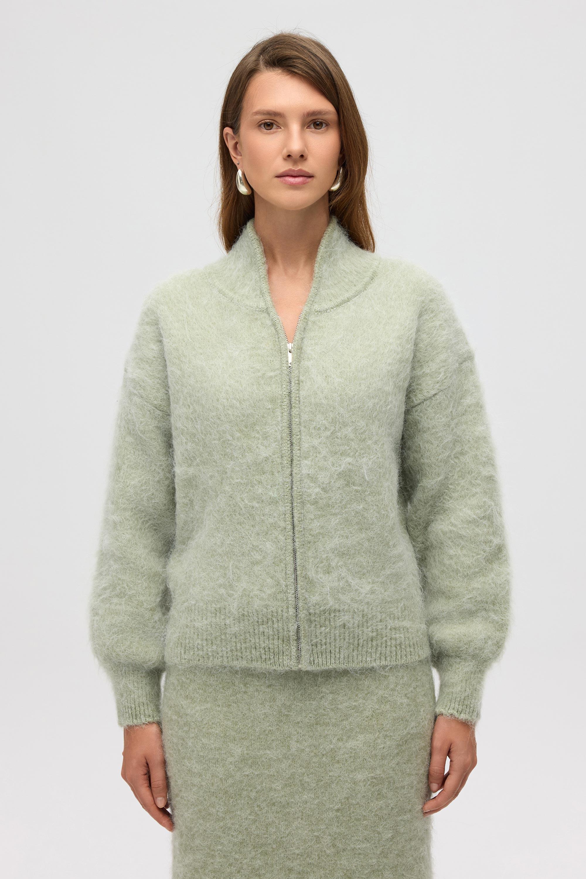 Eskara Fermuarlı Yeşil Triko Hırka