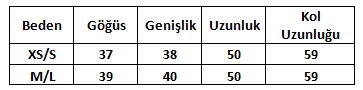 Ürün Beden Tablosu: