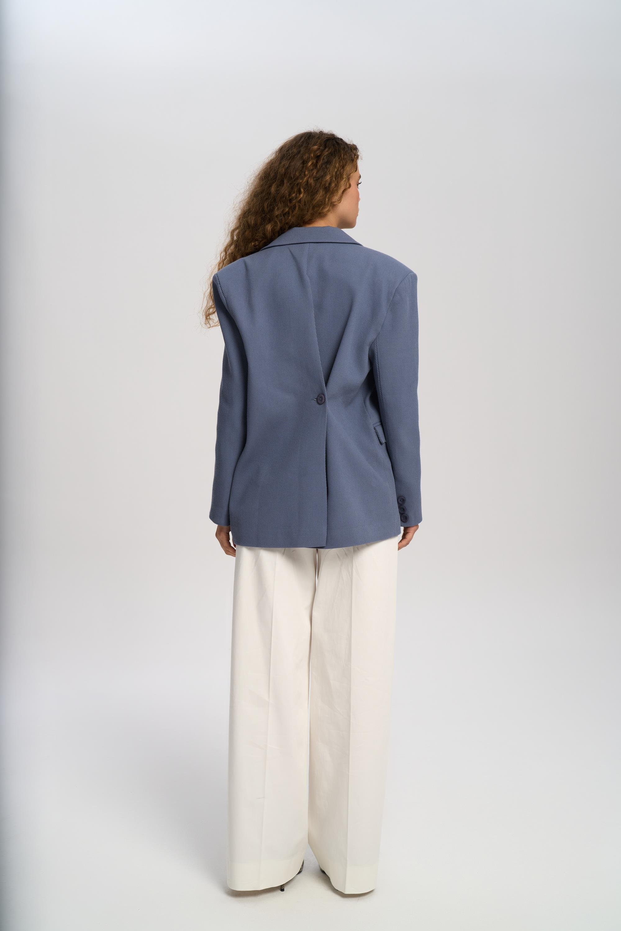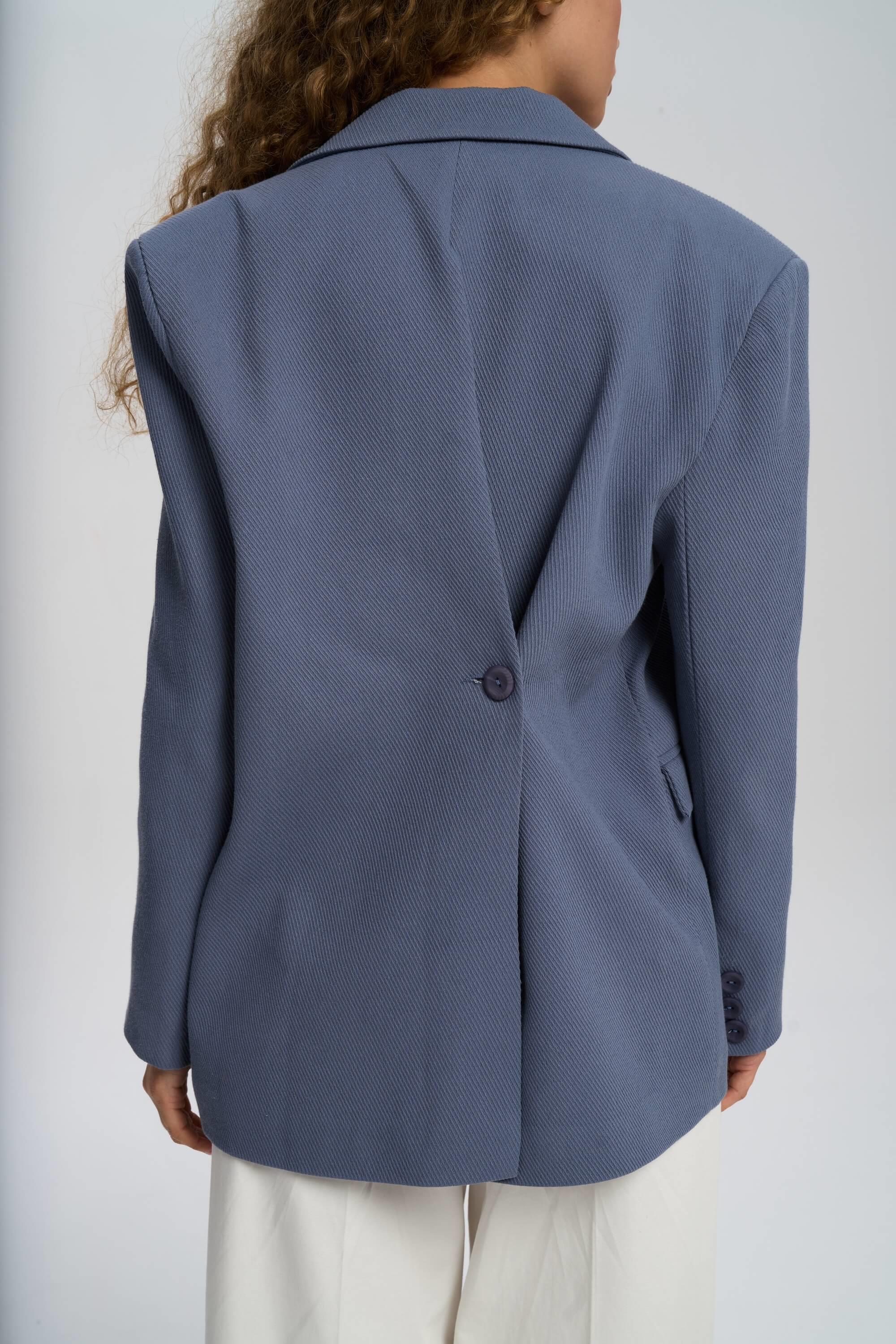 cepli ve kruvaze düğmeli. Arka asimetrik kesim, düğmeli özel tasarım. Astarlı.