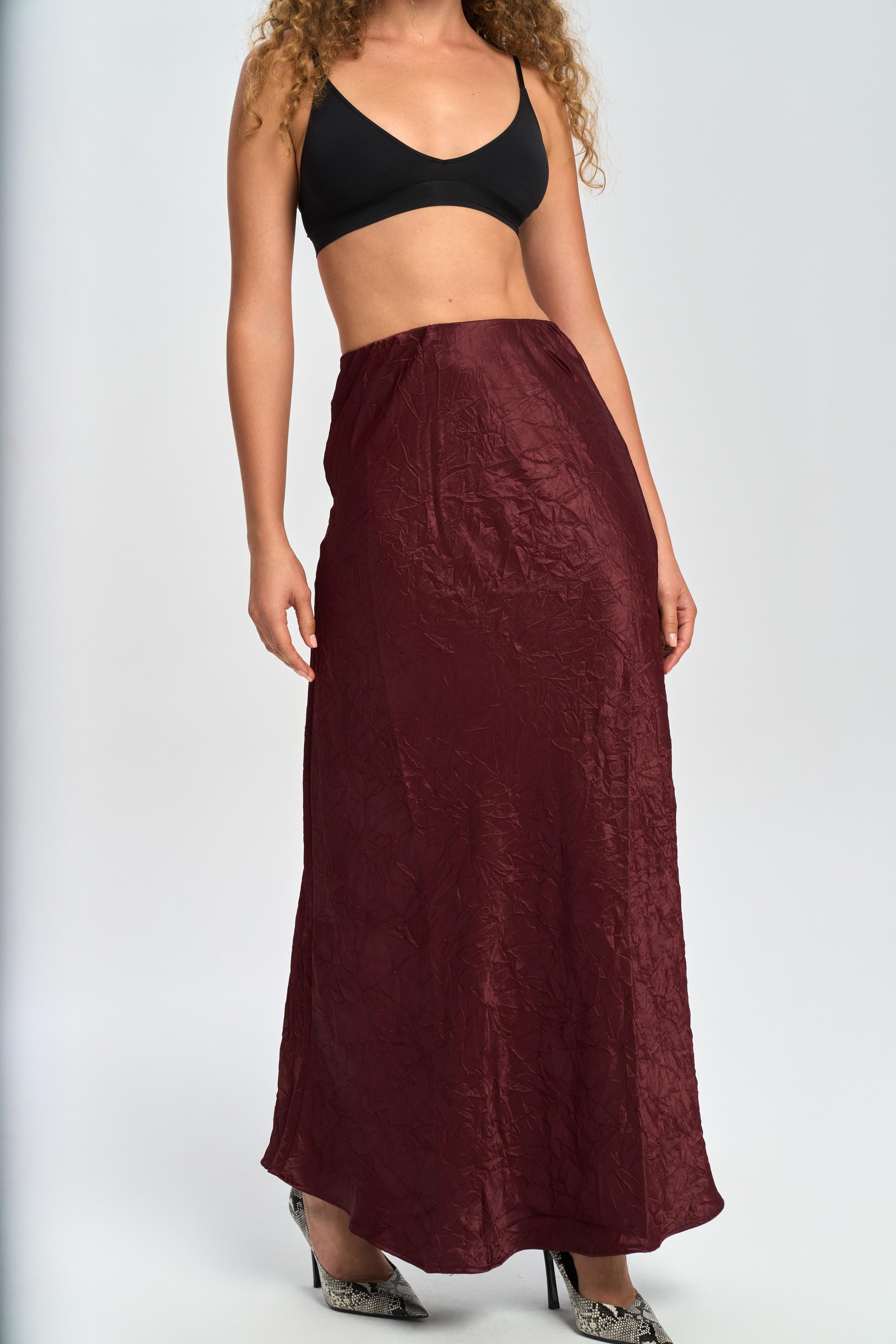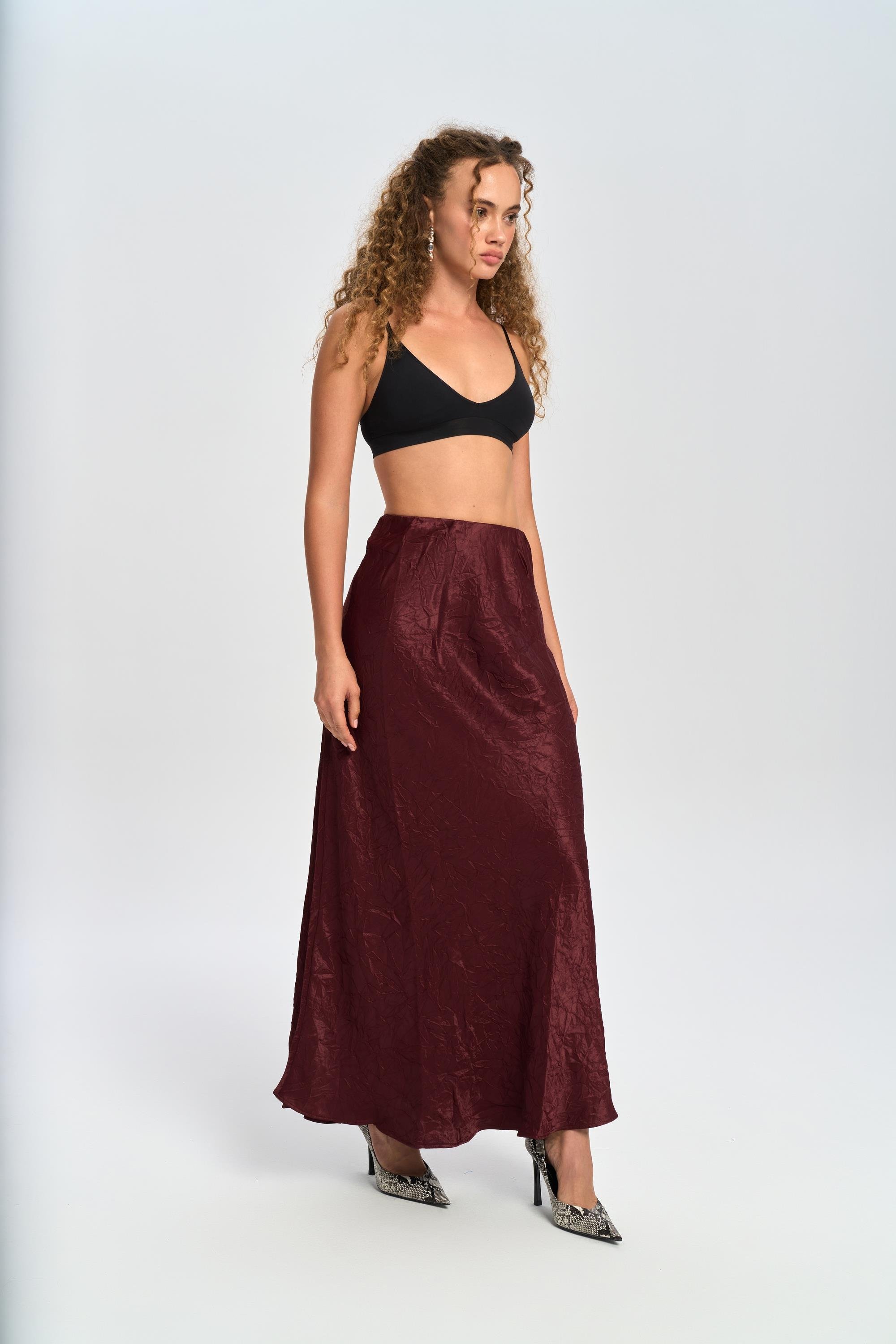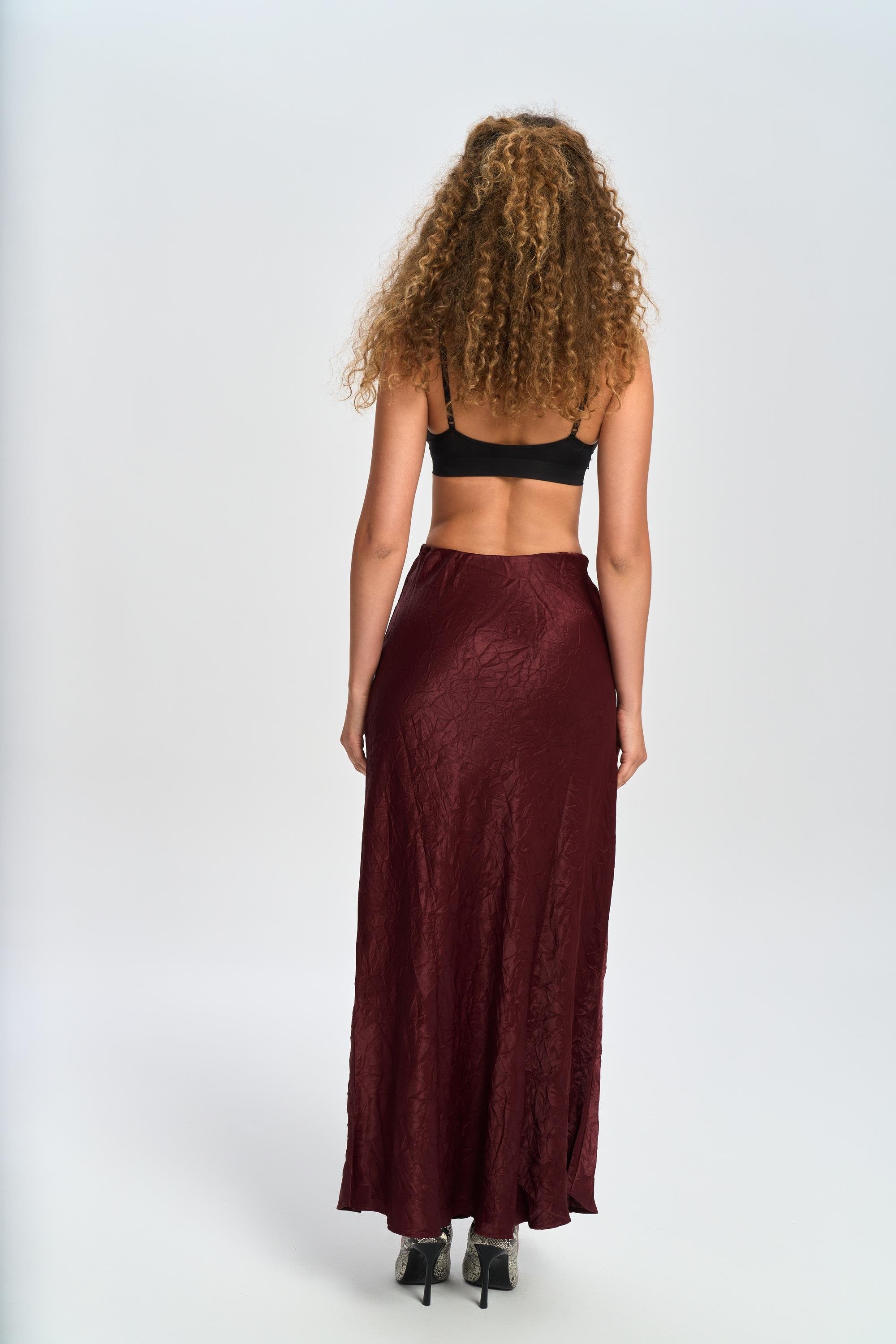 Eubah Kırışık Uzun Bordo Saten Etek (8684923028994)