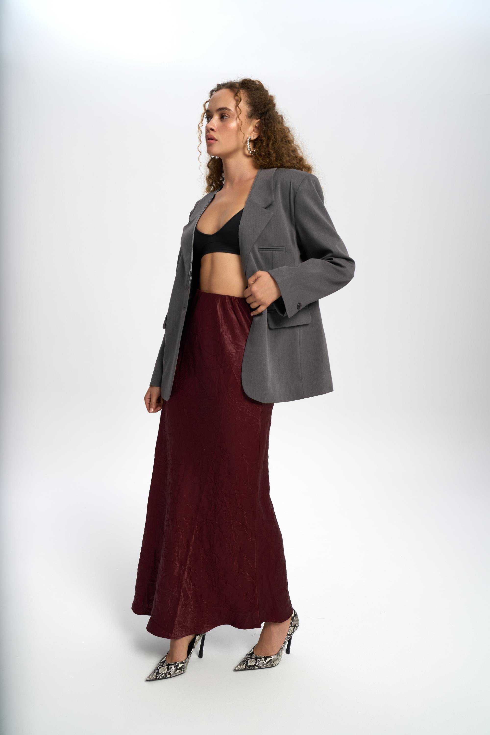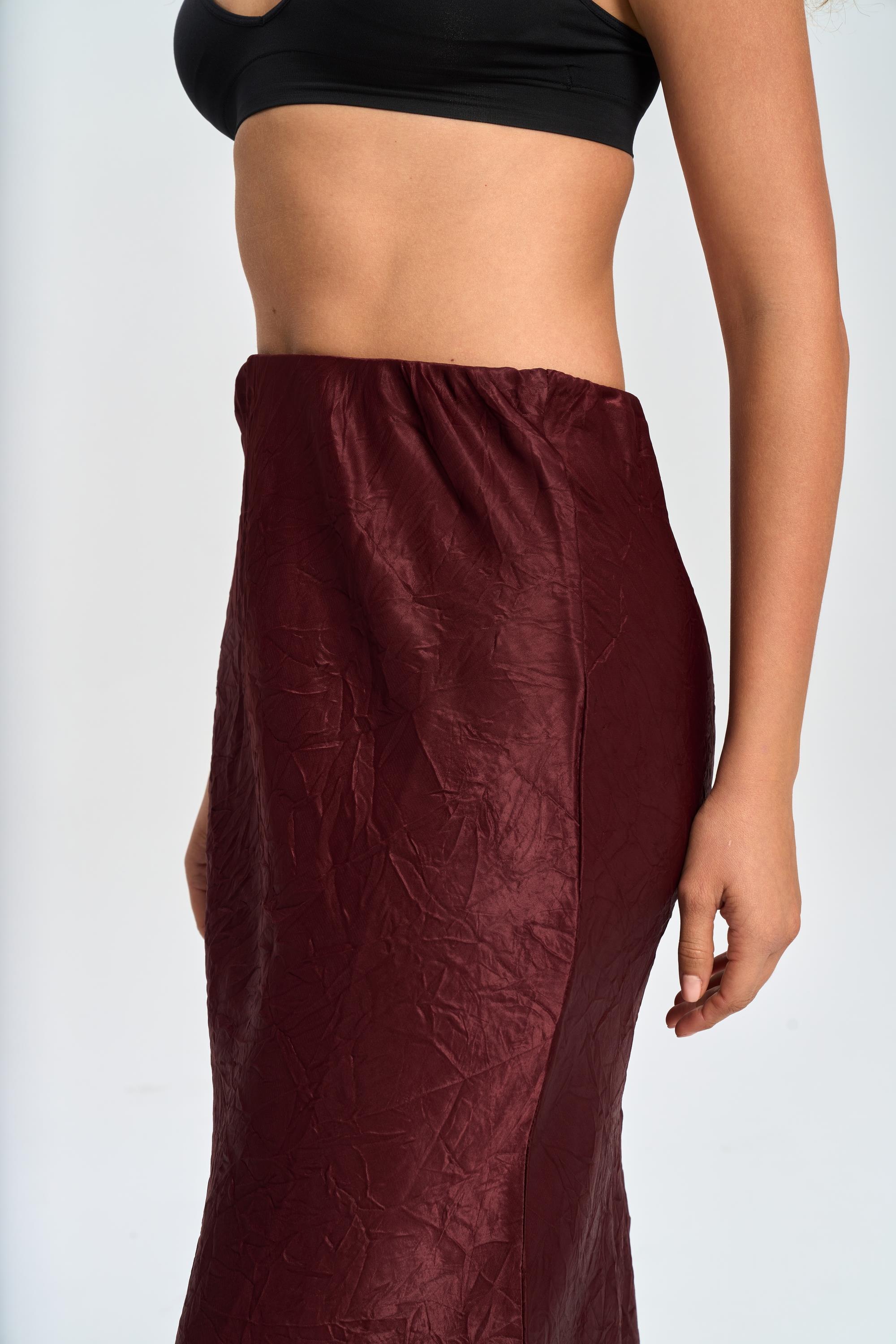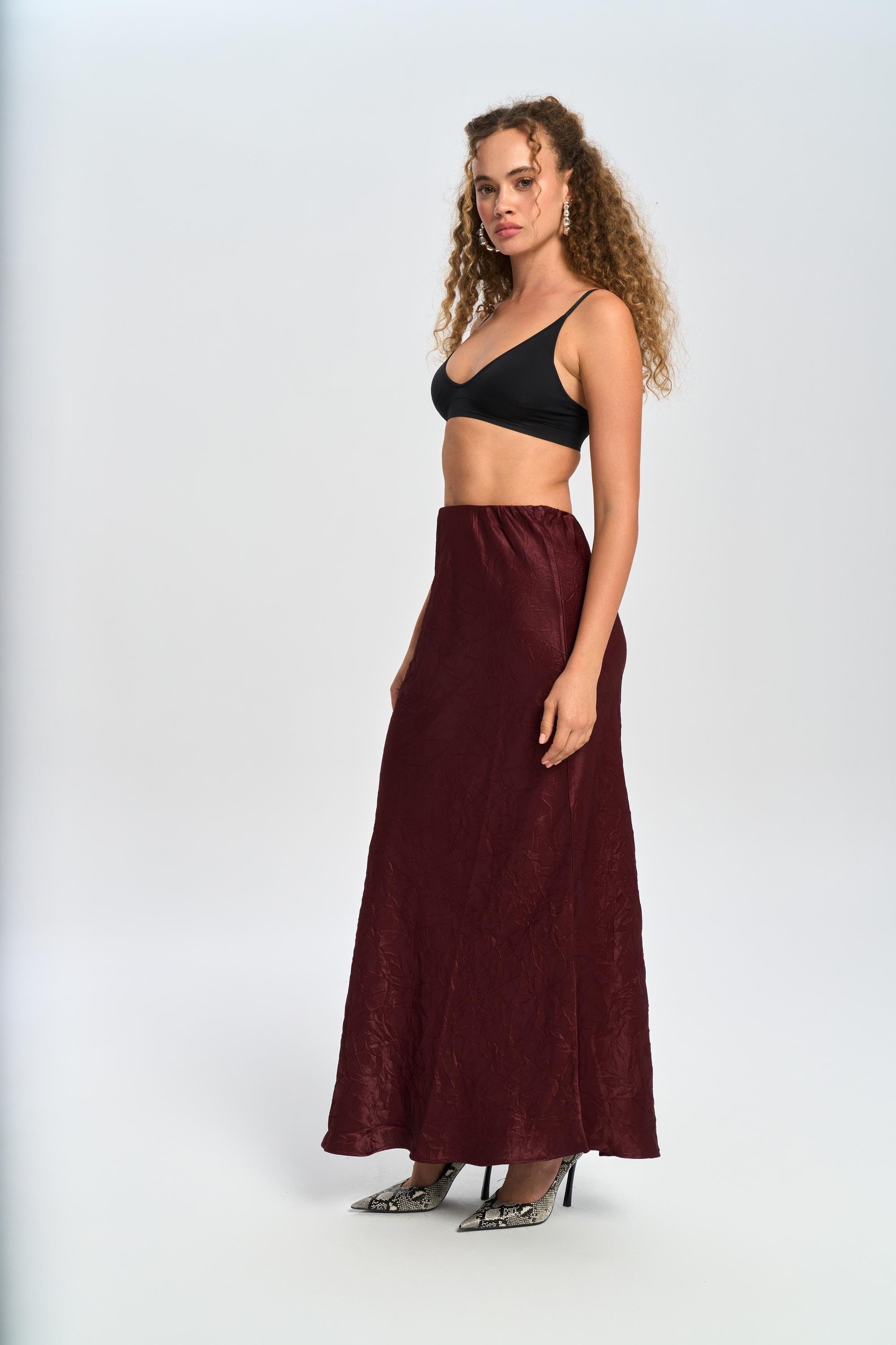 Eubah Kırışık Uzun Bordo Saten Etek (8684923028994)
