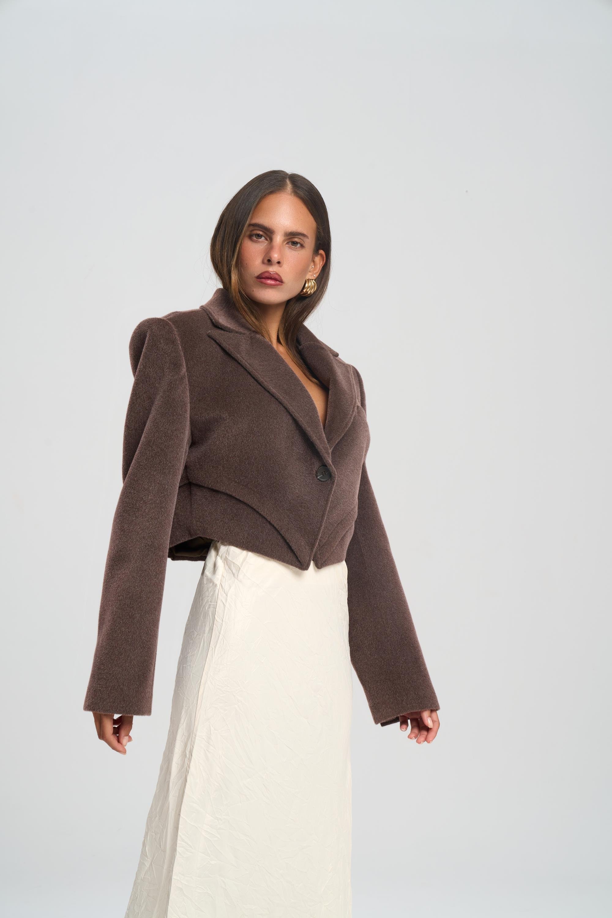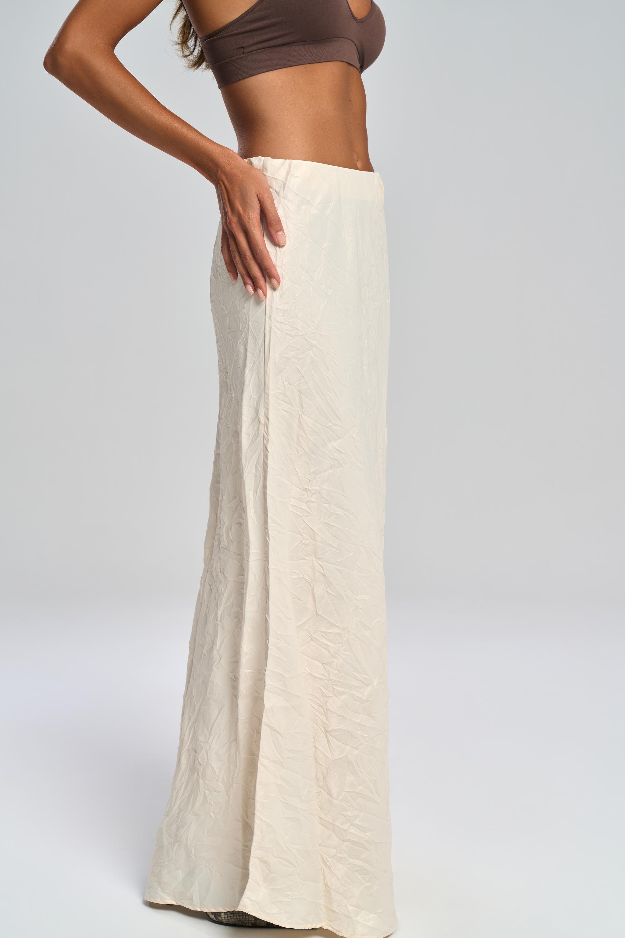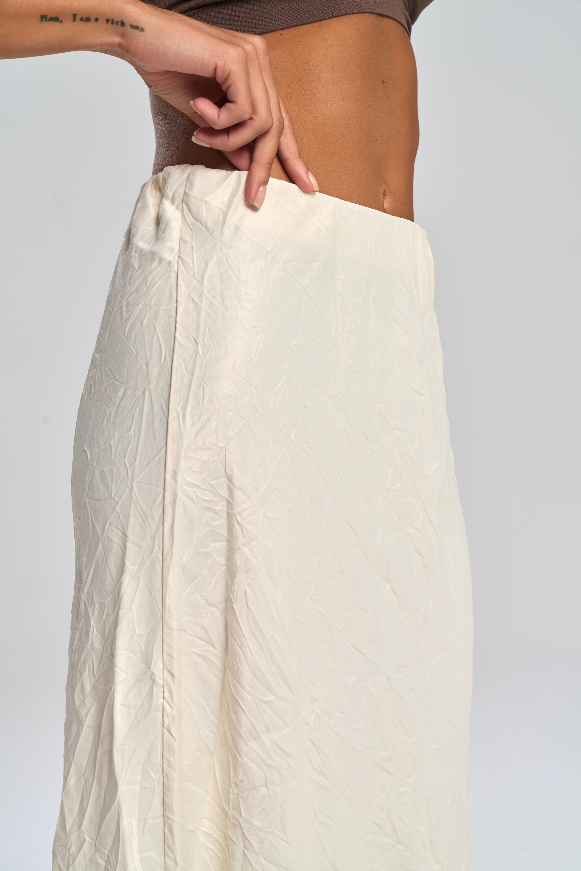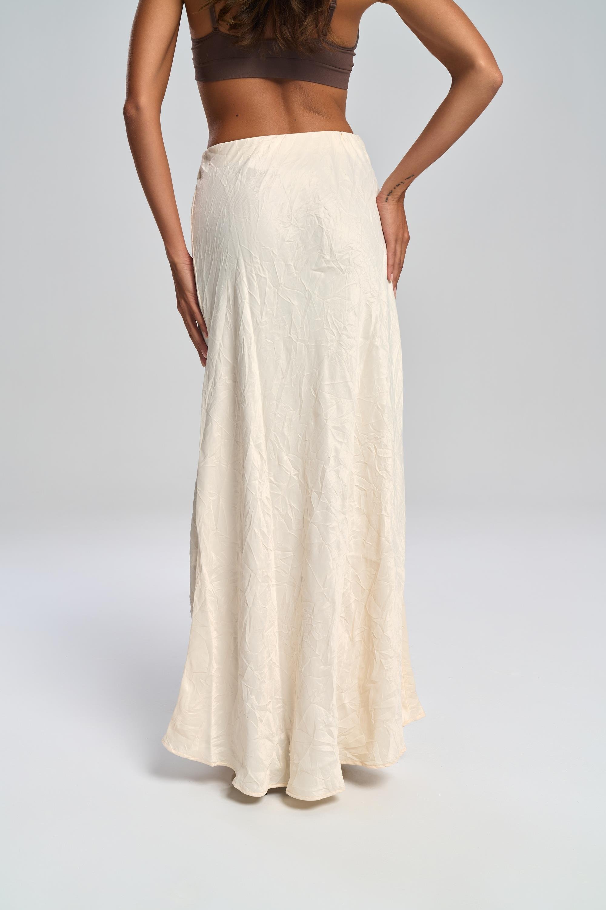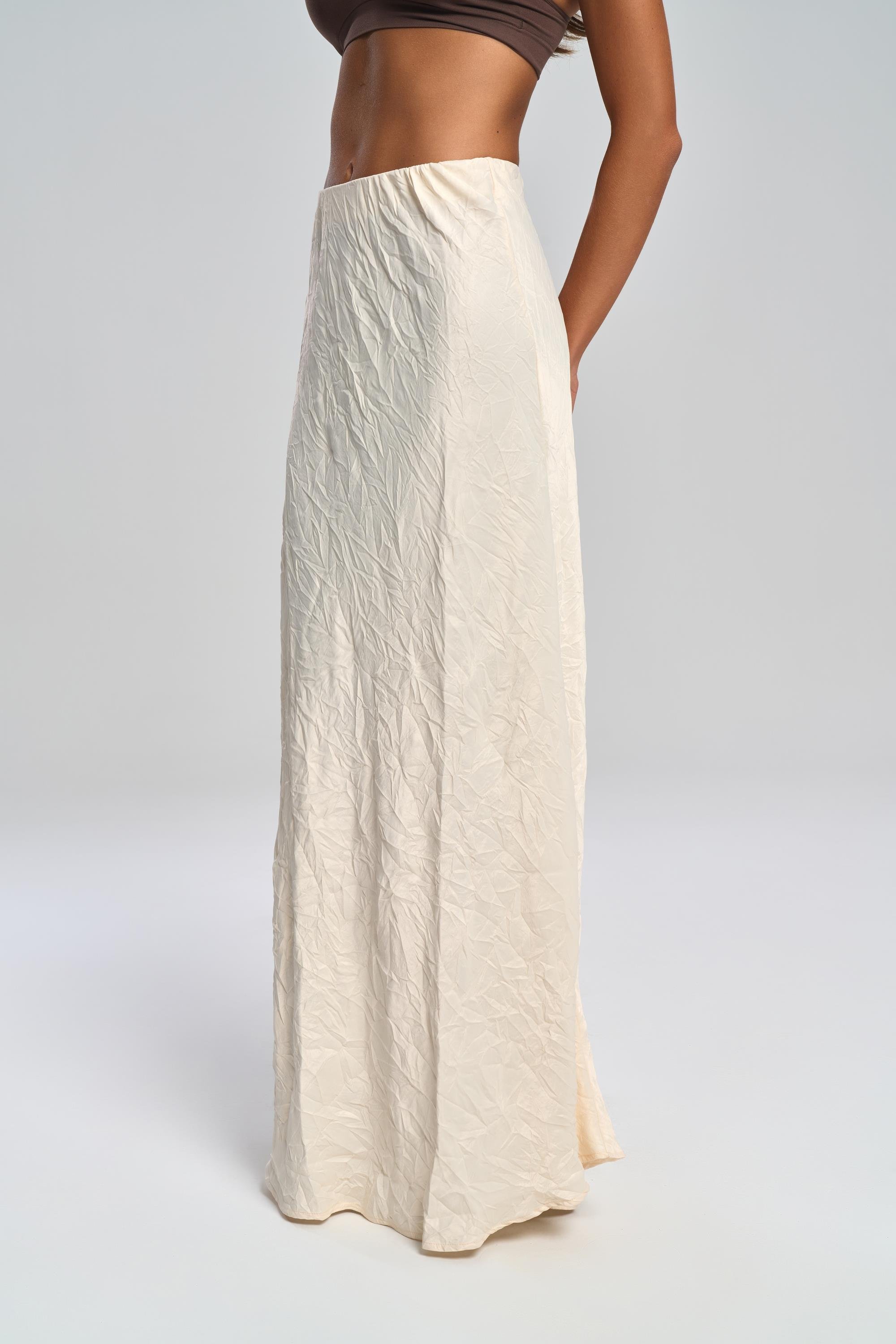 Eubah Kırışık Uzun Ekru Saten Etek (8684923028925)