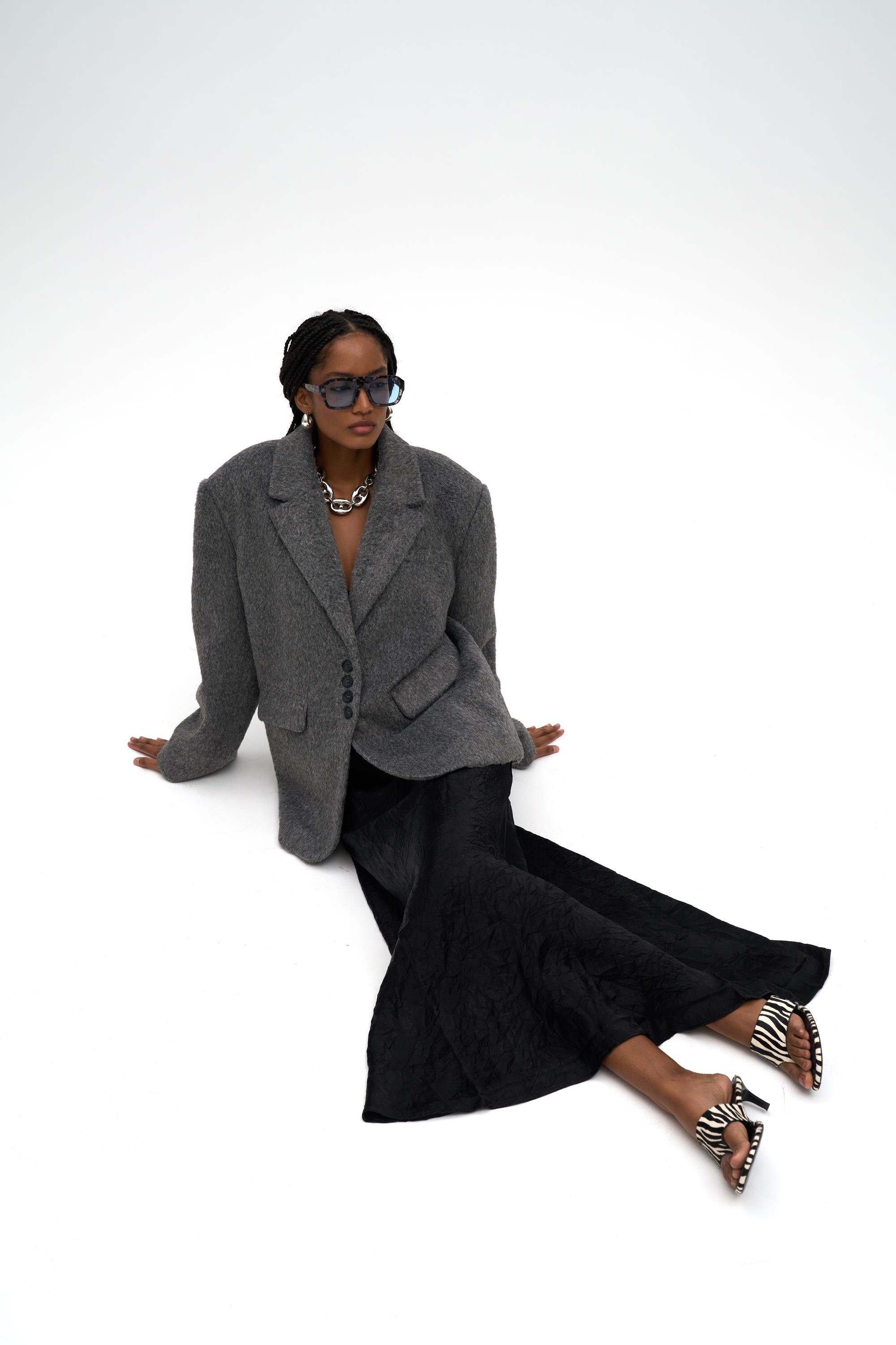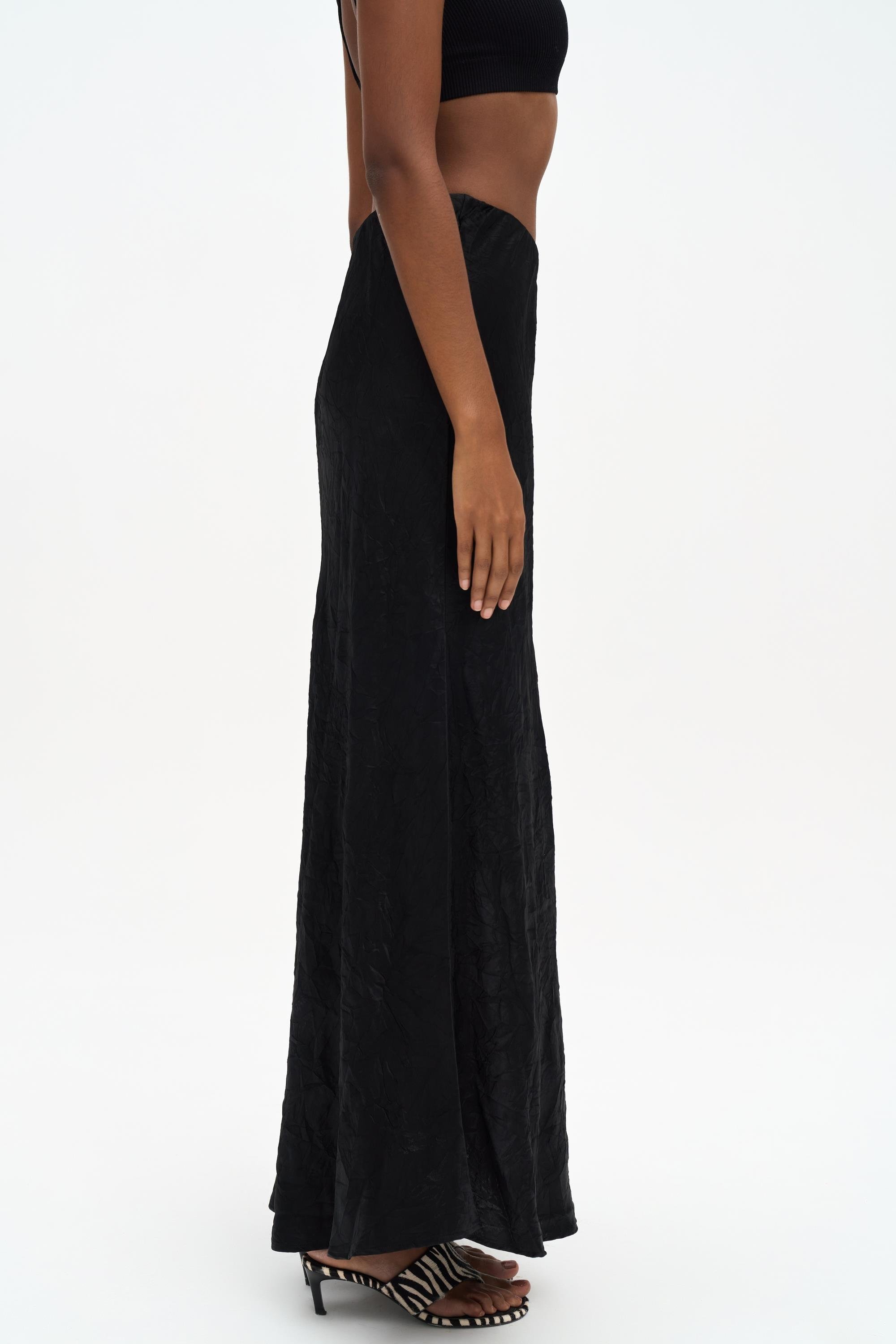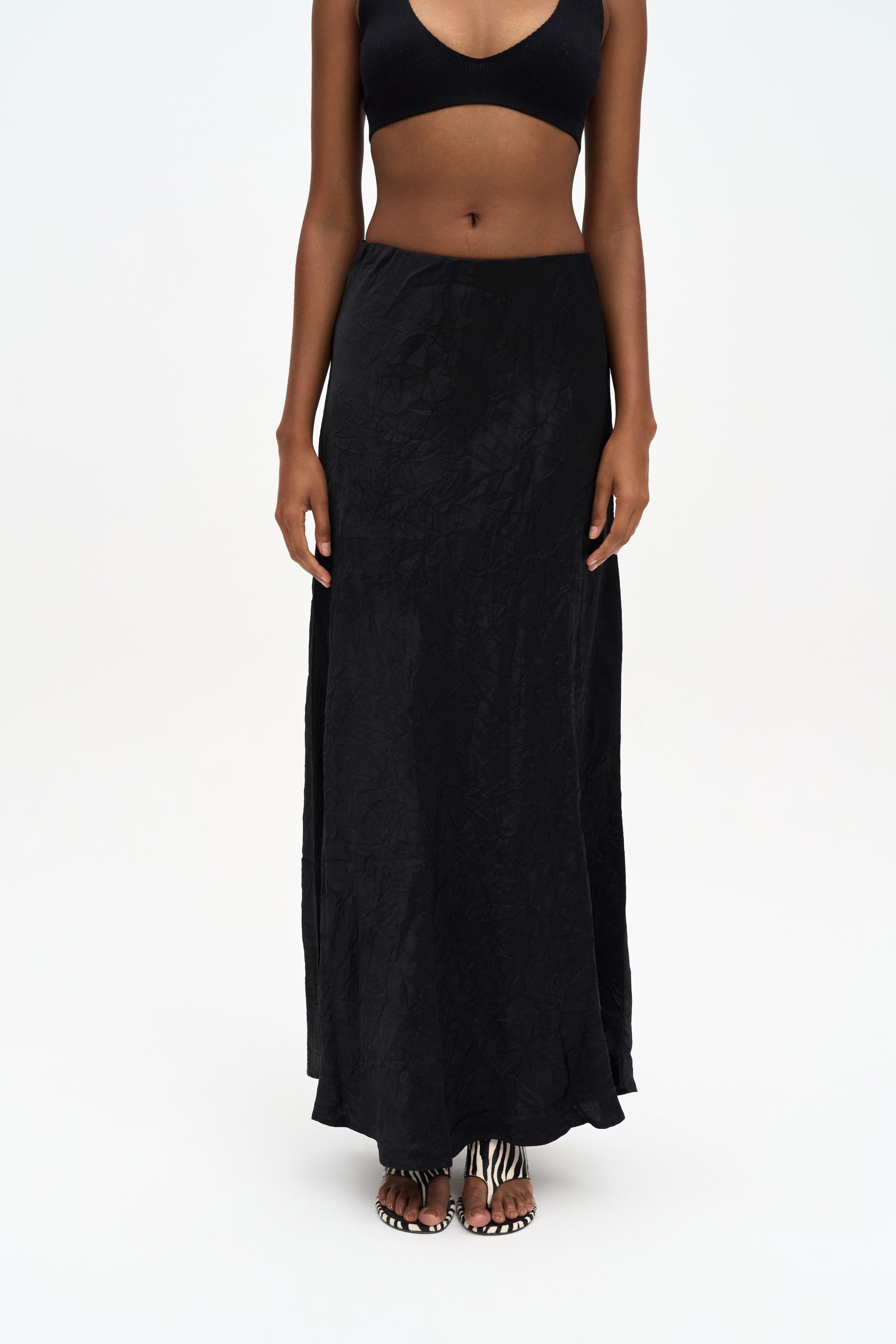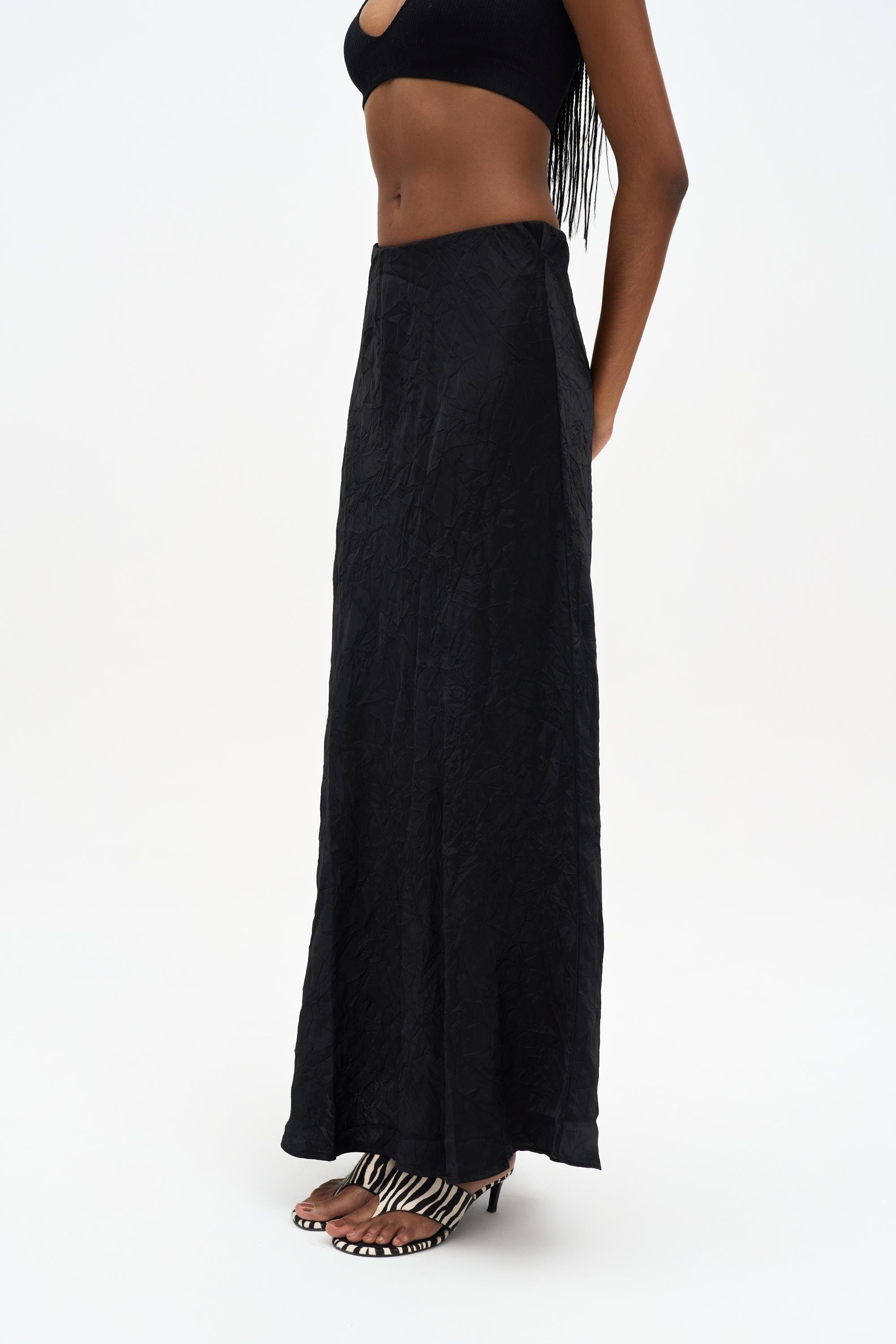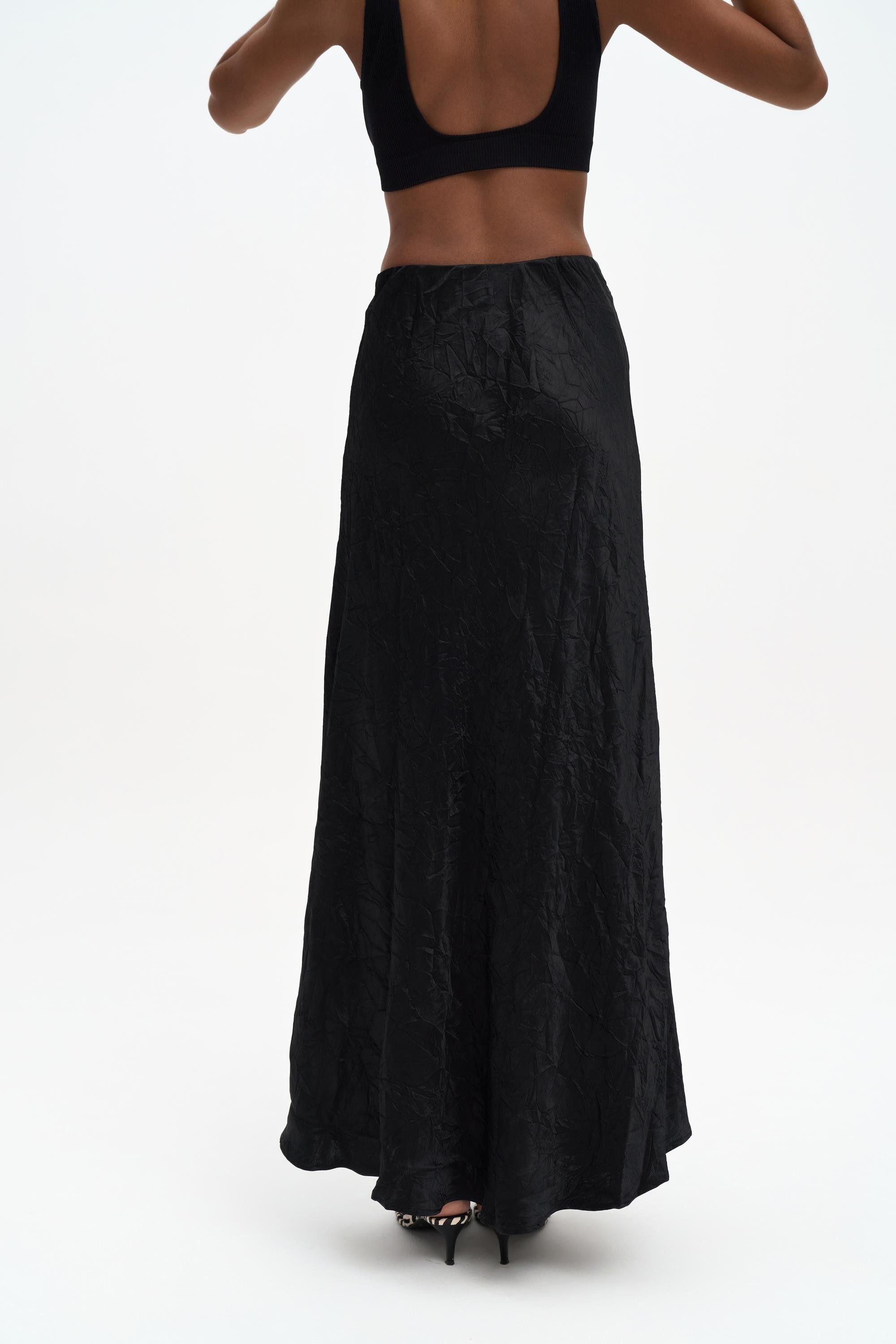 Eubah Kırışık Uzun Siyah Saten Etek (8684923028871)
