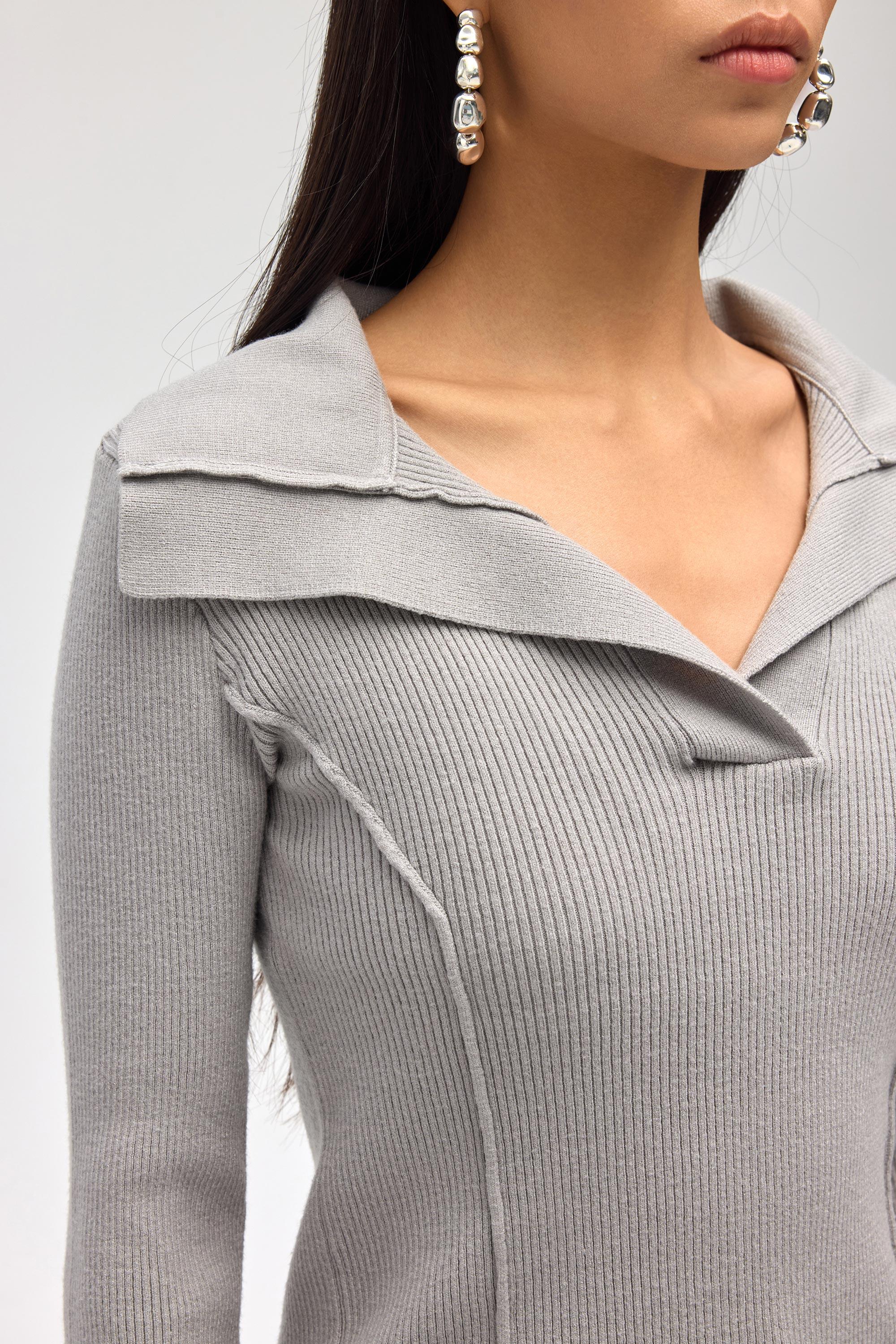 İnari Polo Yaka Gri Triko Kazak