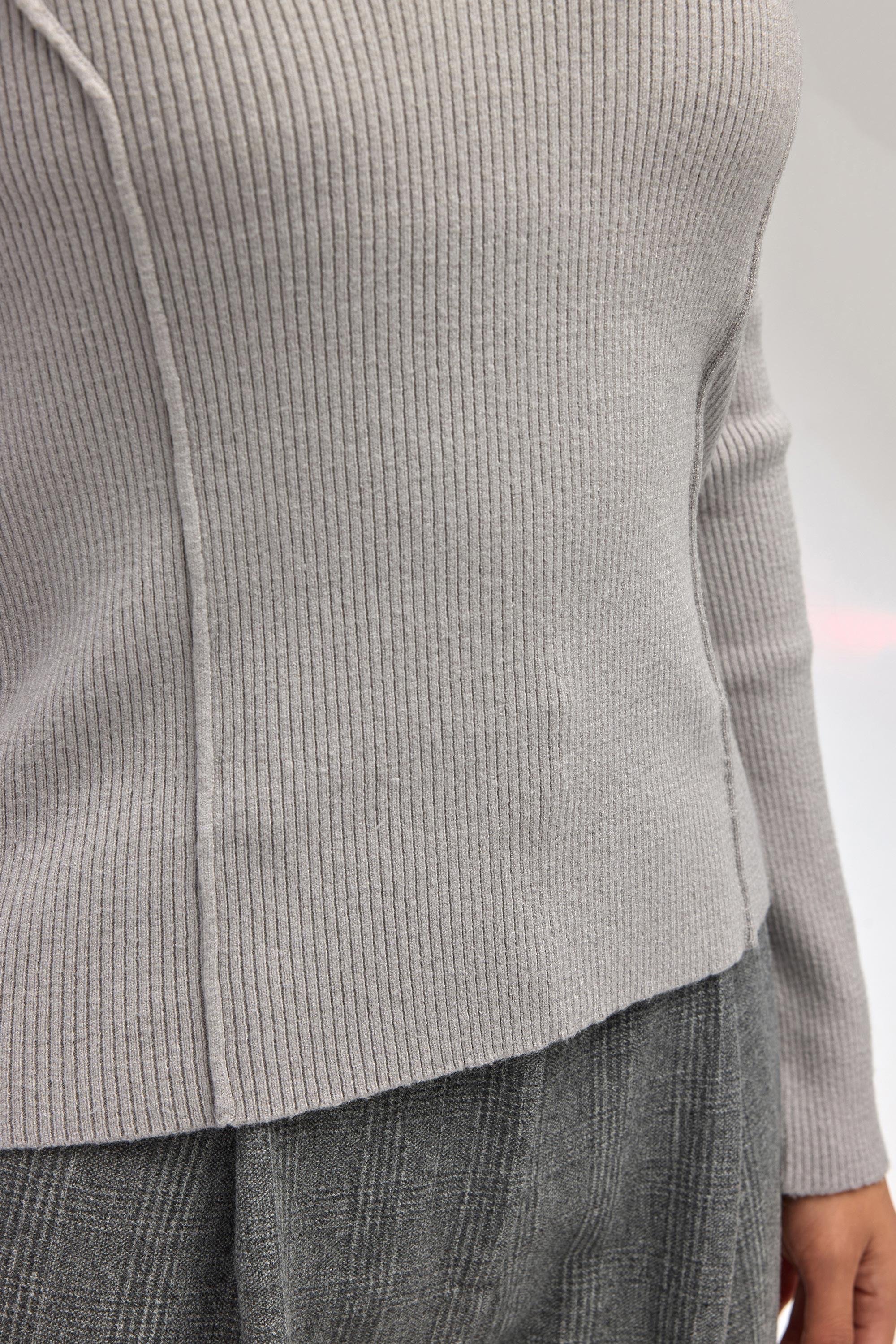 Bedene oturan formda, polo yakalı, kup detaylı, uzun kollu triko kazak.
