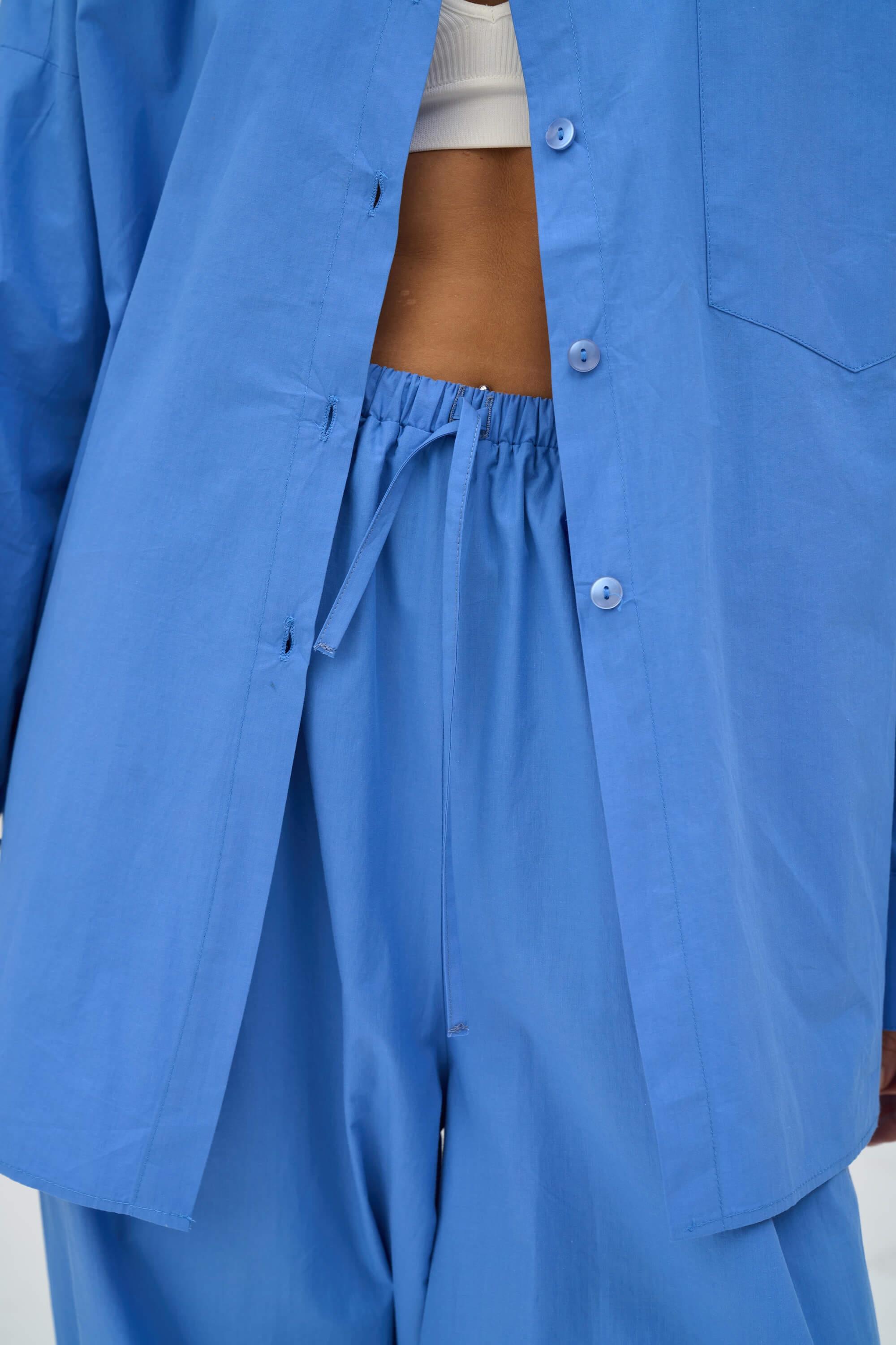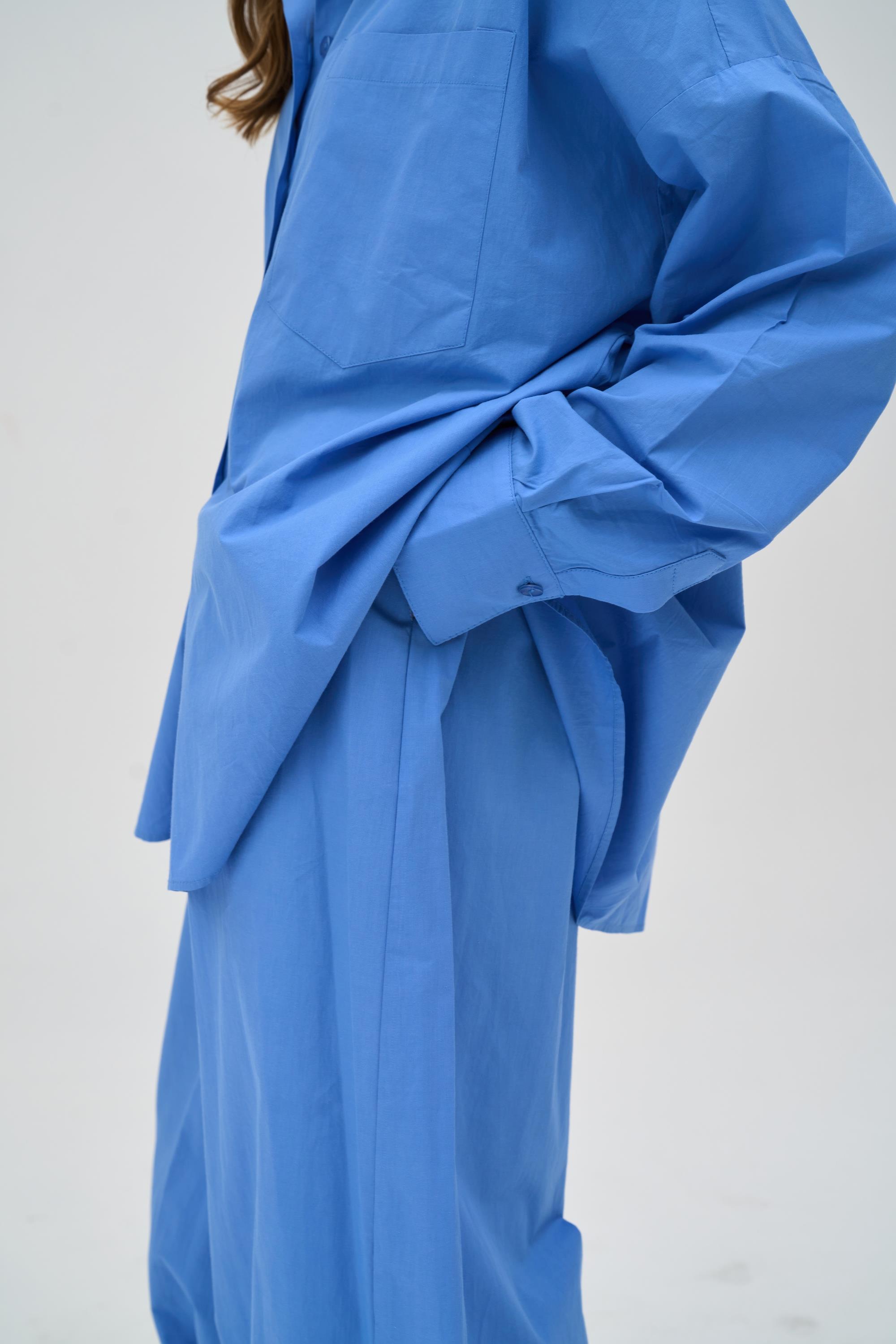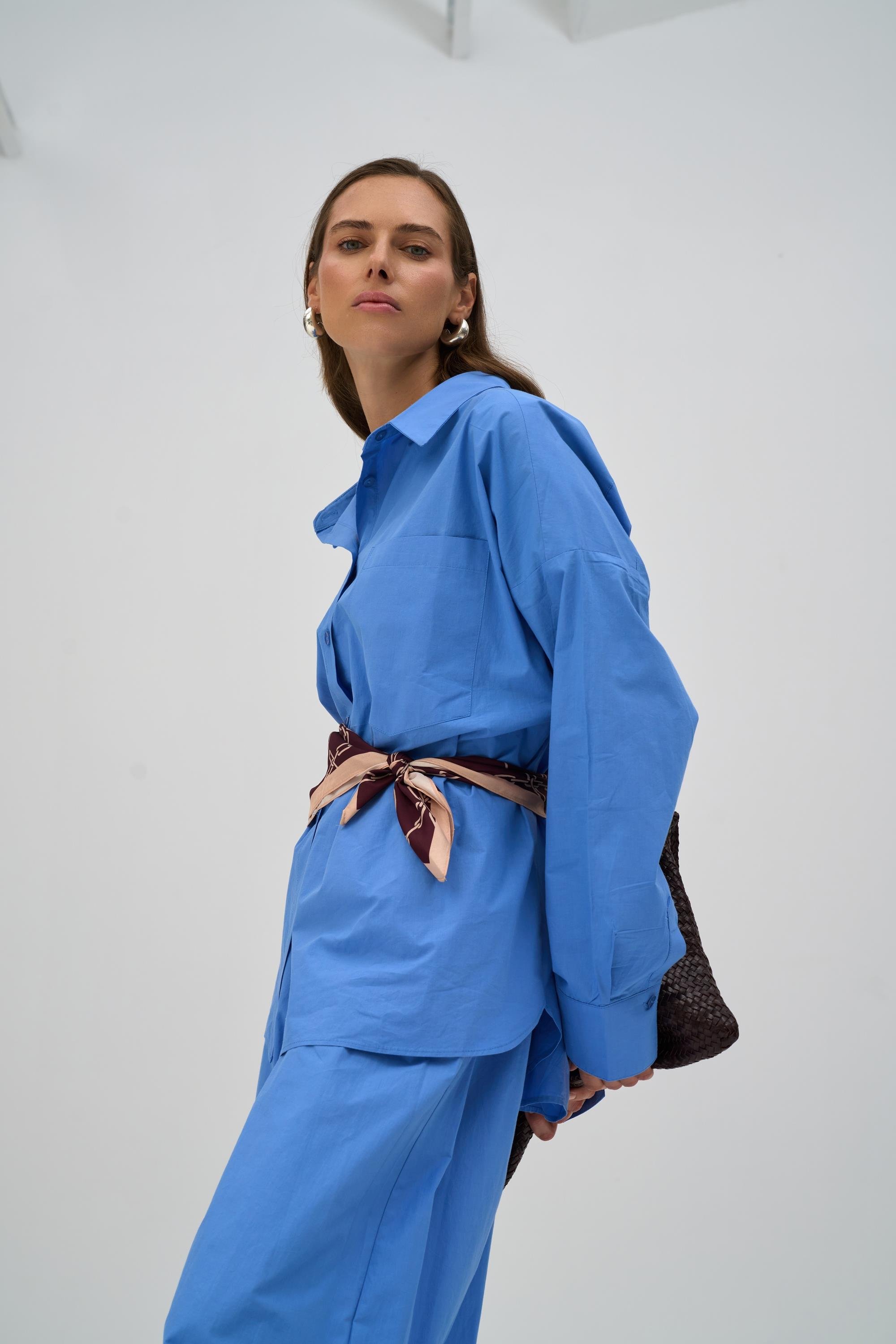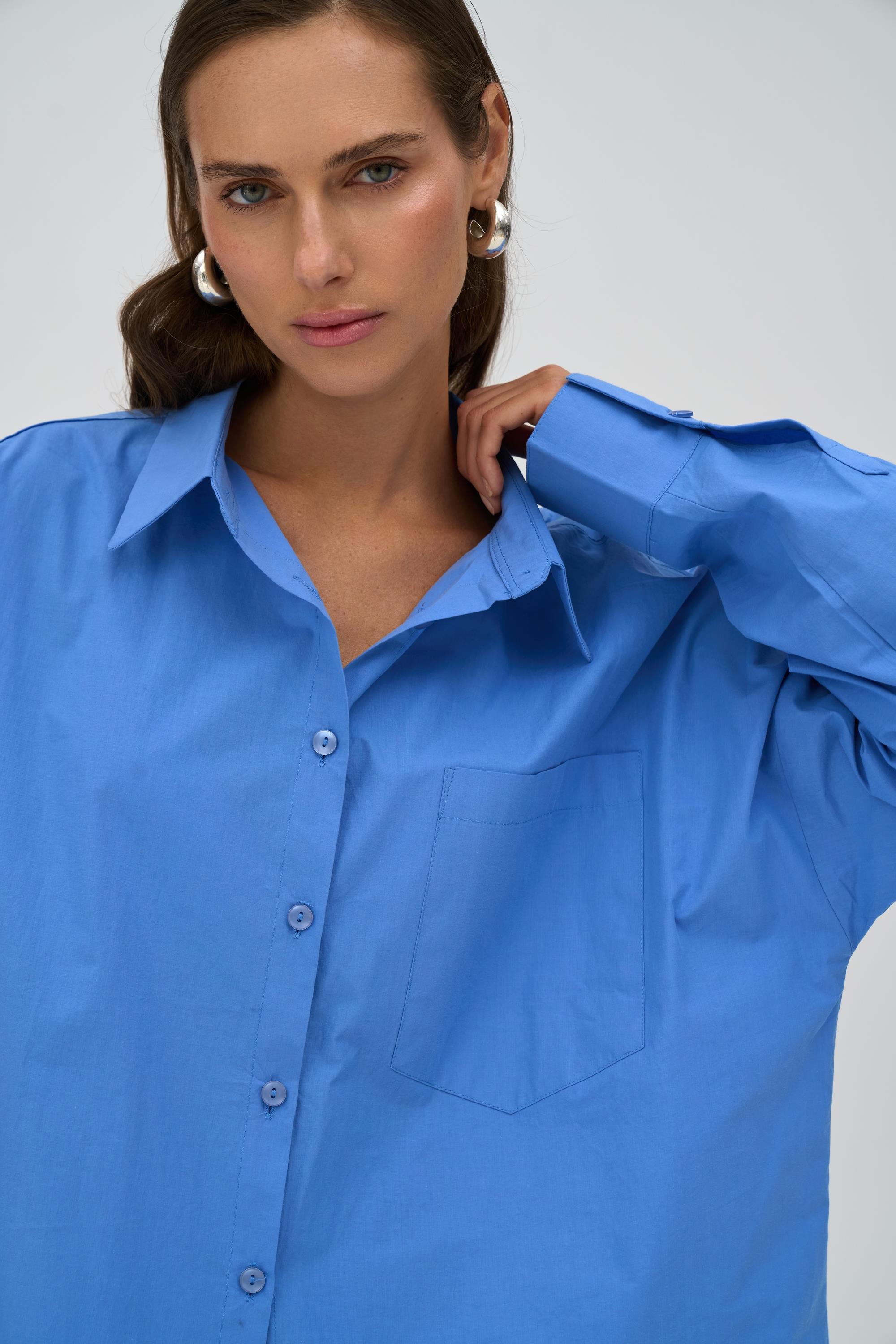 Pamuklu iplikten üretilmiş oversize gömlek. Yaka detaylı ve manşetli uzun kollu. Göğüs kısmında yama cep detaylı. Yuvarlak asimetrik etek ucu. Önden düğme kapamalı.Kumaş İçeriği :