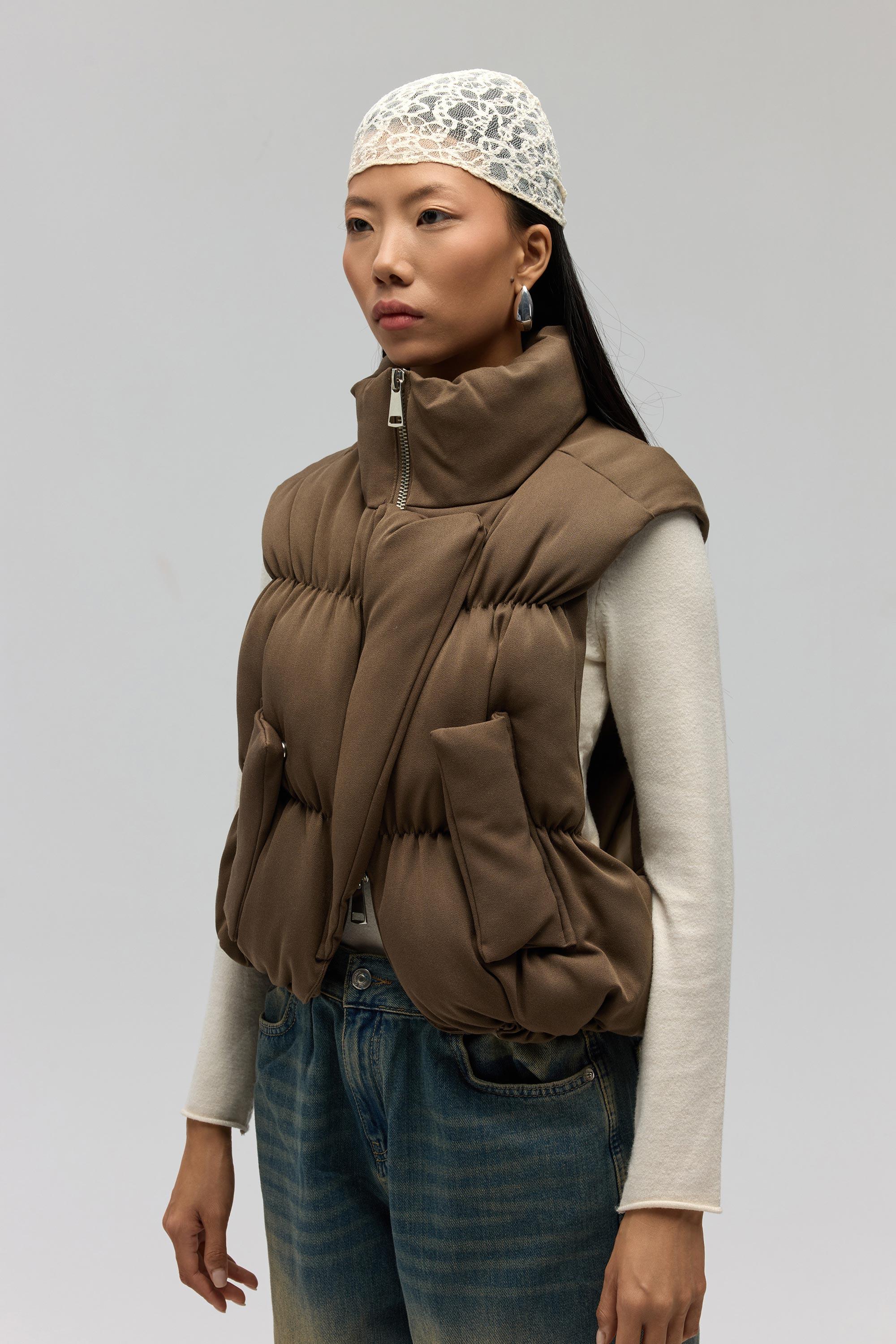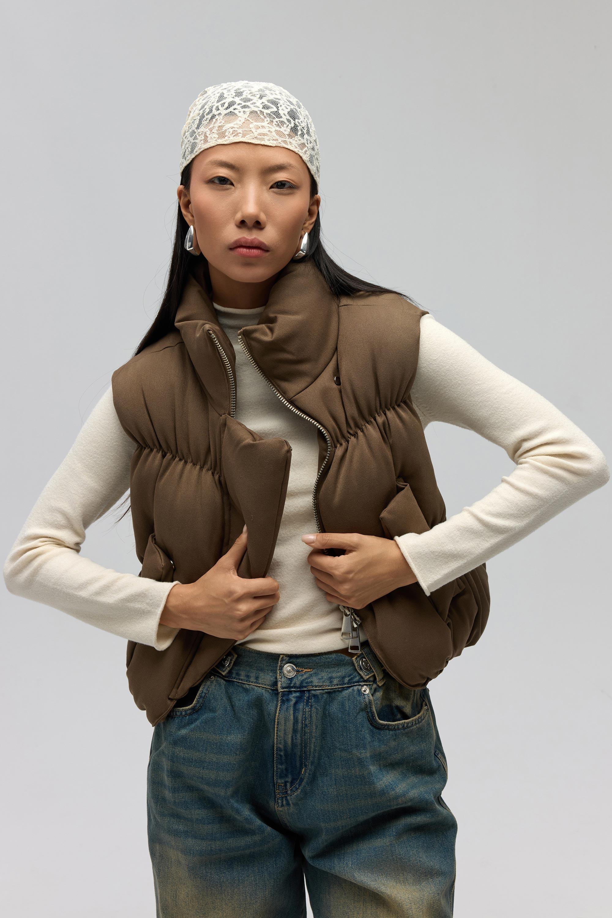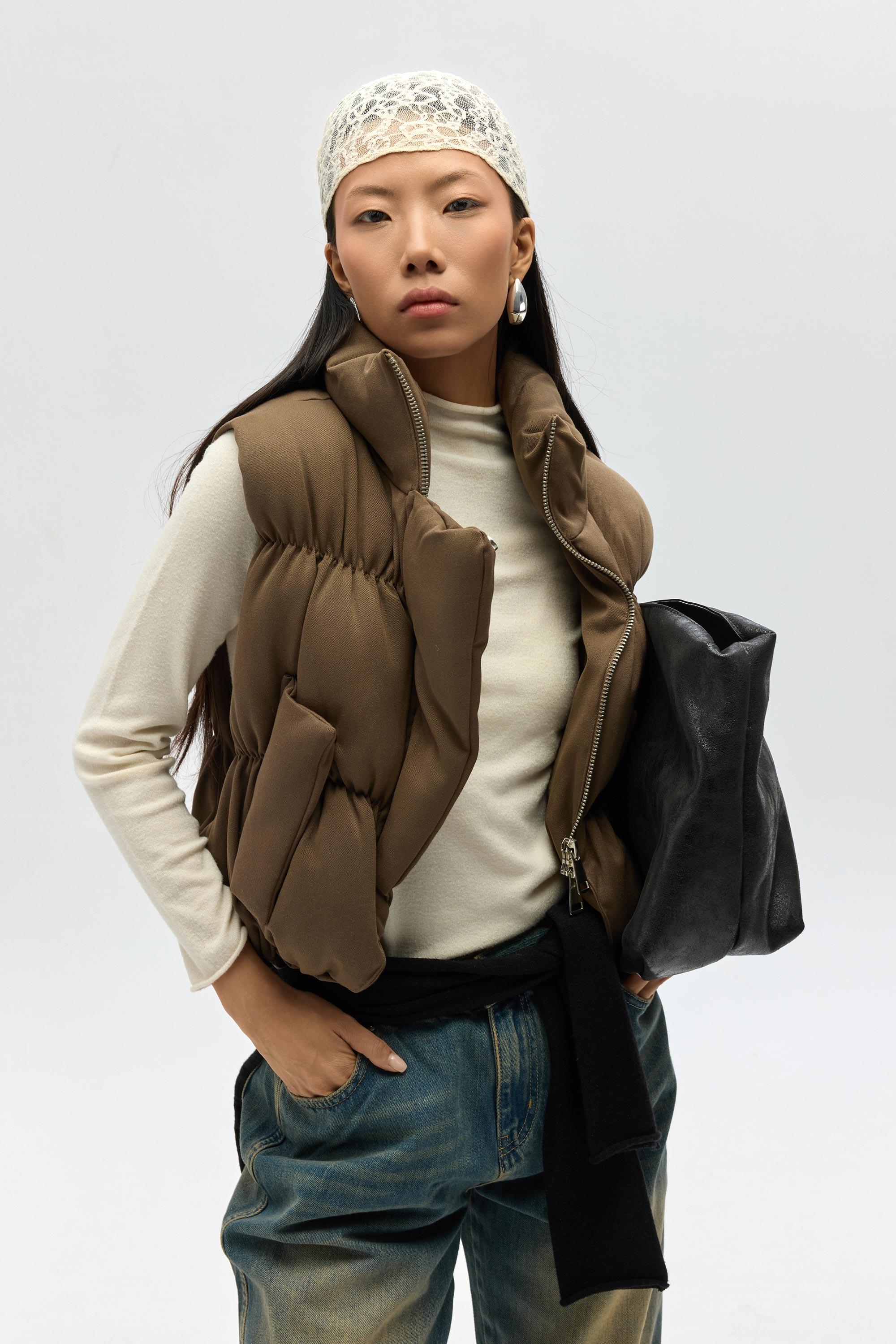 Kısa ve rahat formda, fermuarlı ve cep detaylı, içi elyaflı, şişme yelek.