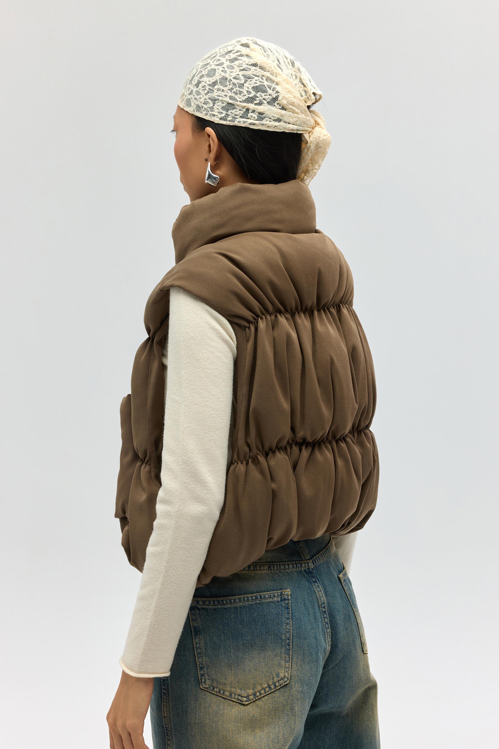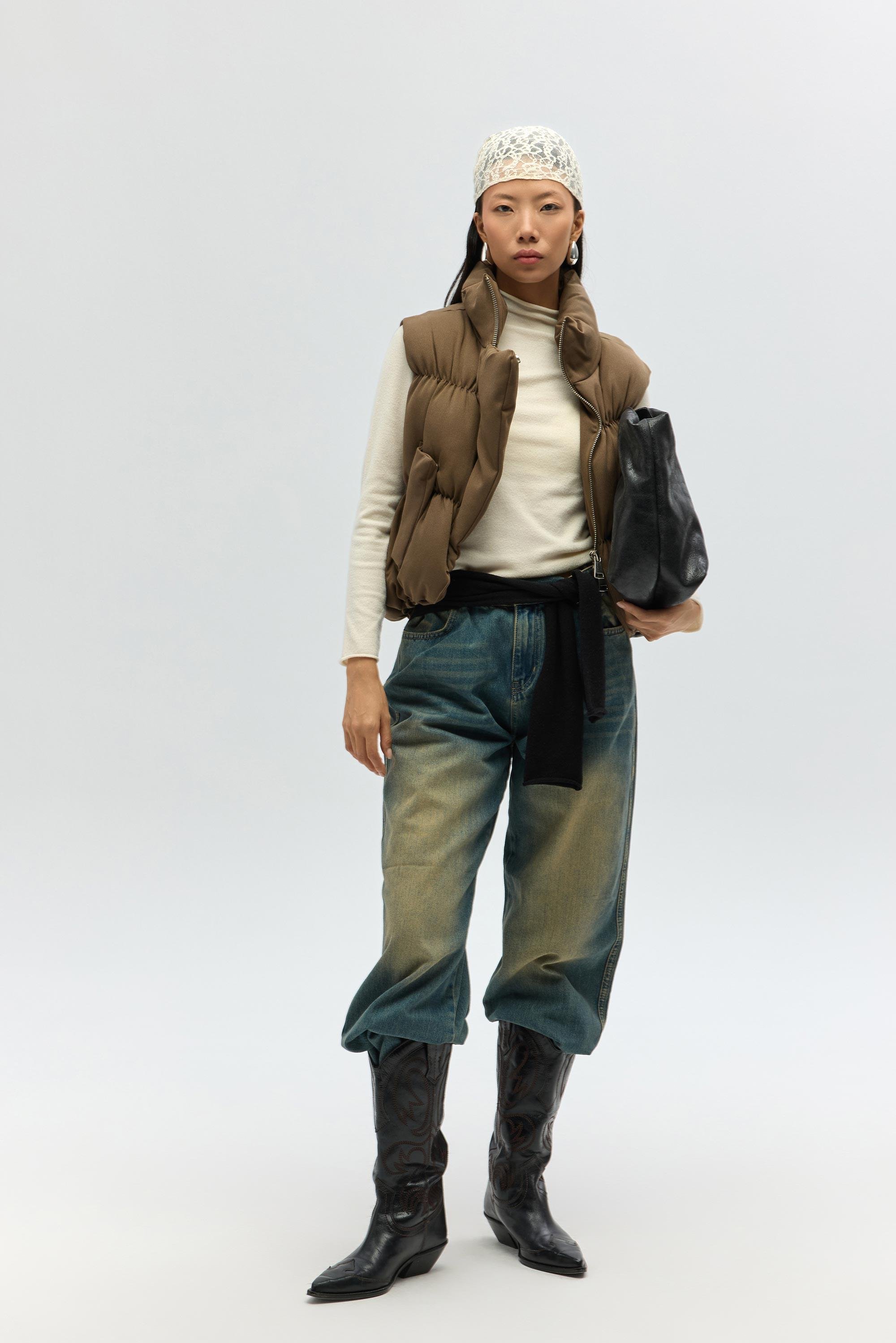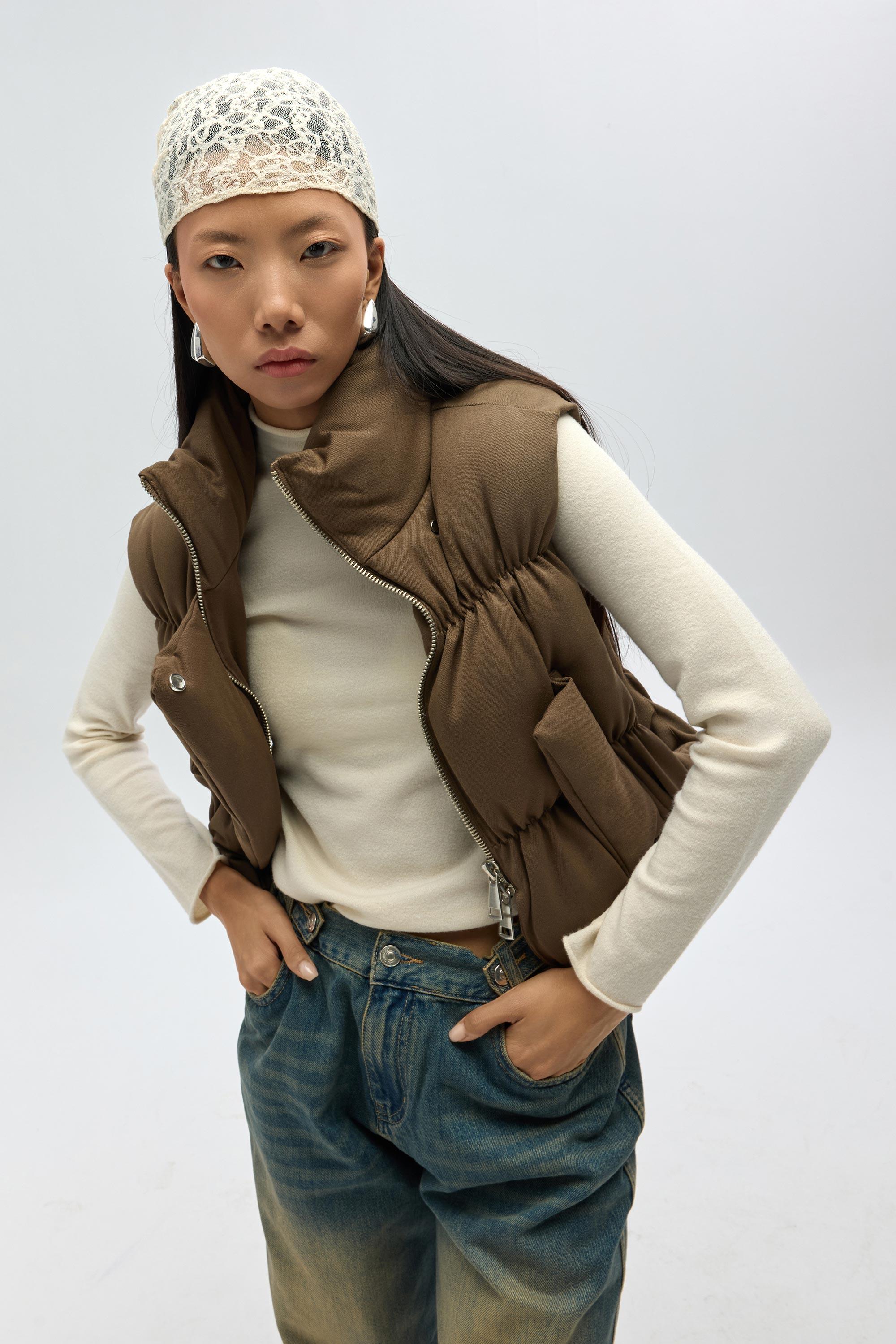 Kısa ve rahat formda, fermuarlı ve cep detaylı, içi elyaflı, şişme yelek.