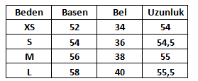 Boy: 1.74 cm Kilo: 52 kg ( Model XS Beden )