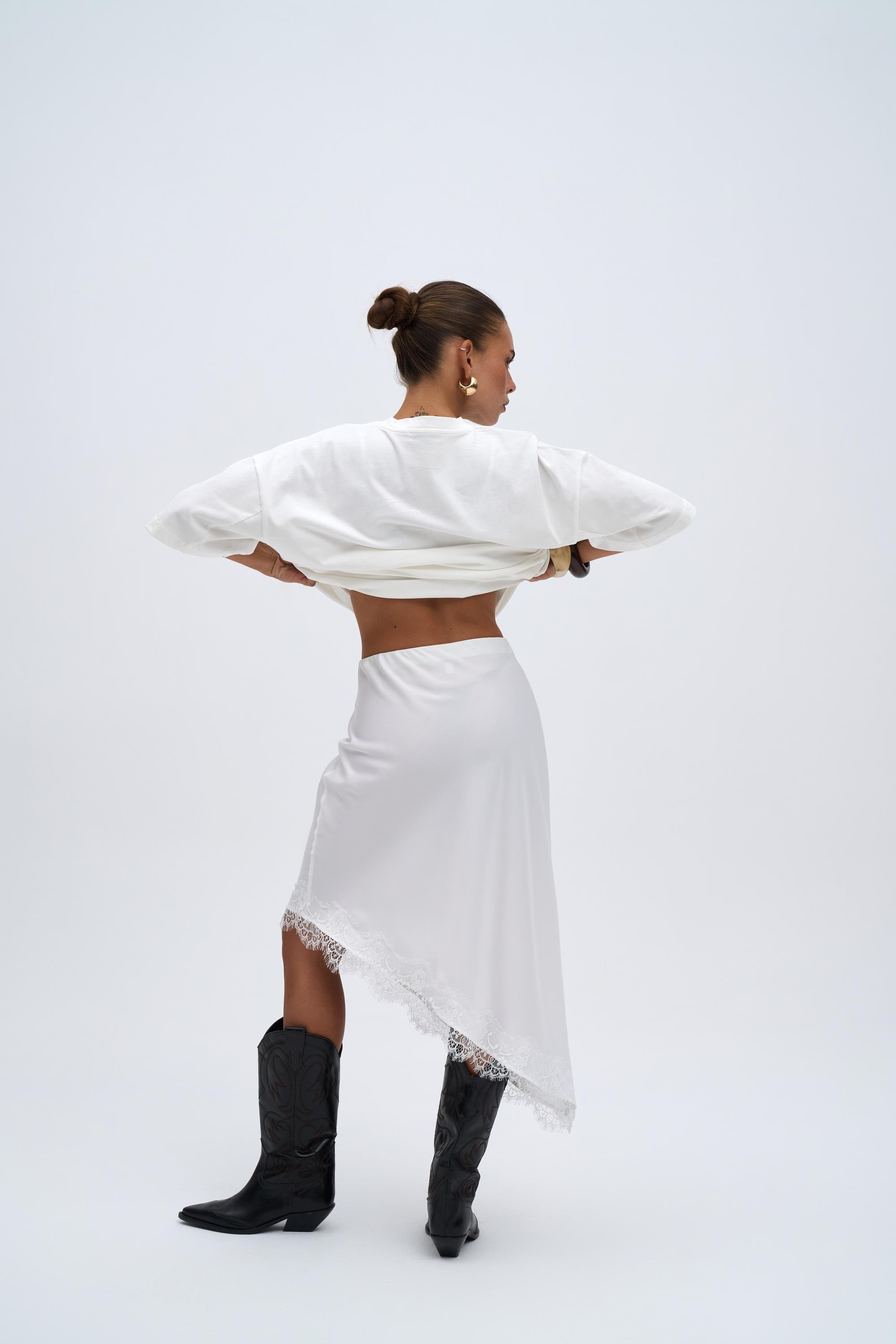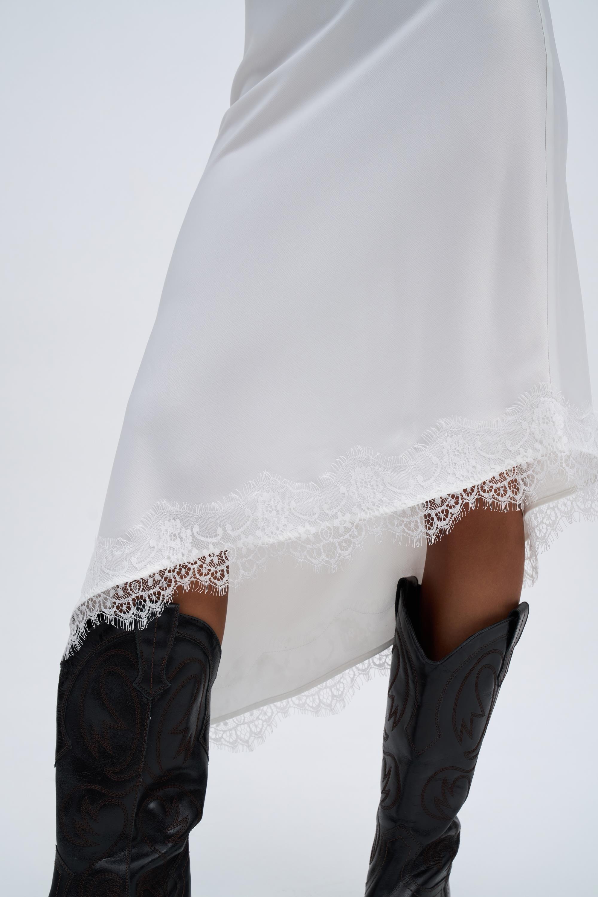 Lina Dantel Detay Beyaz Saten Etek (8684923035107)