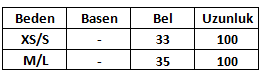 Ürün Beden Tablosu:
