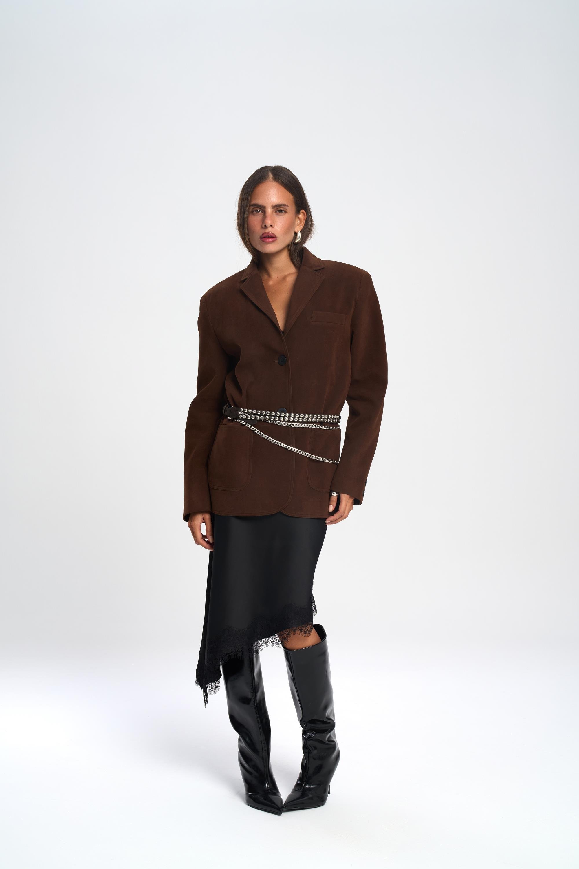 Orsina Yırtmaç Detaylı Kahve Blazer (8684923034636)