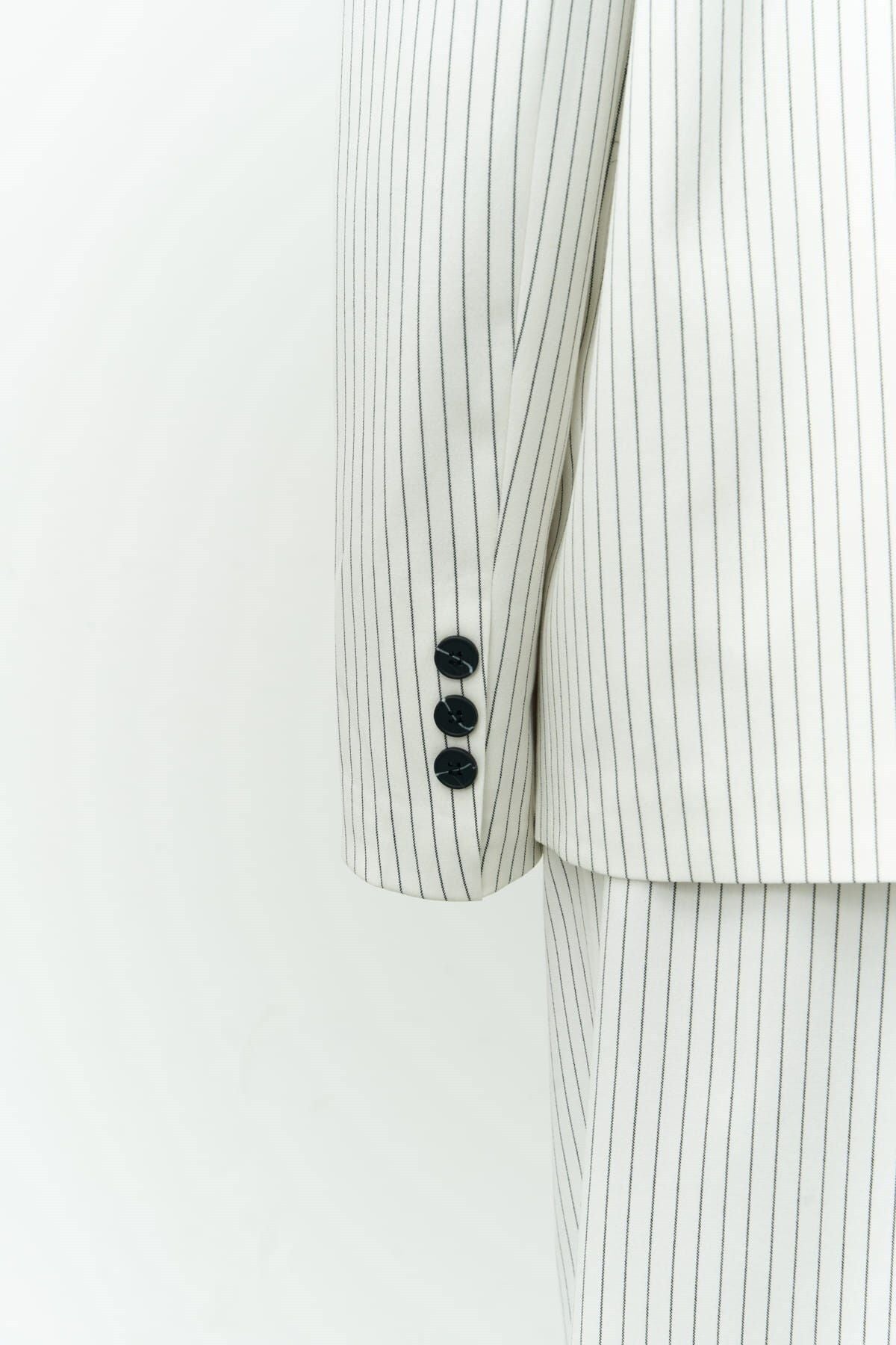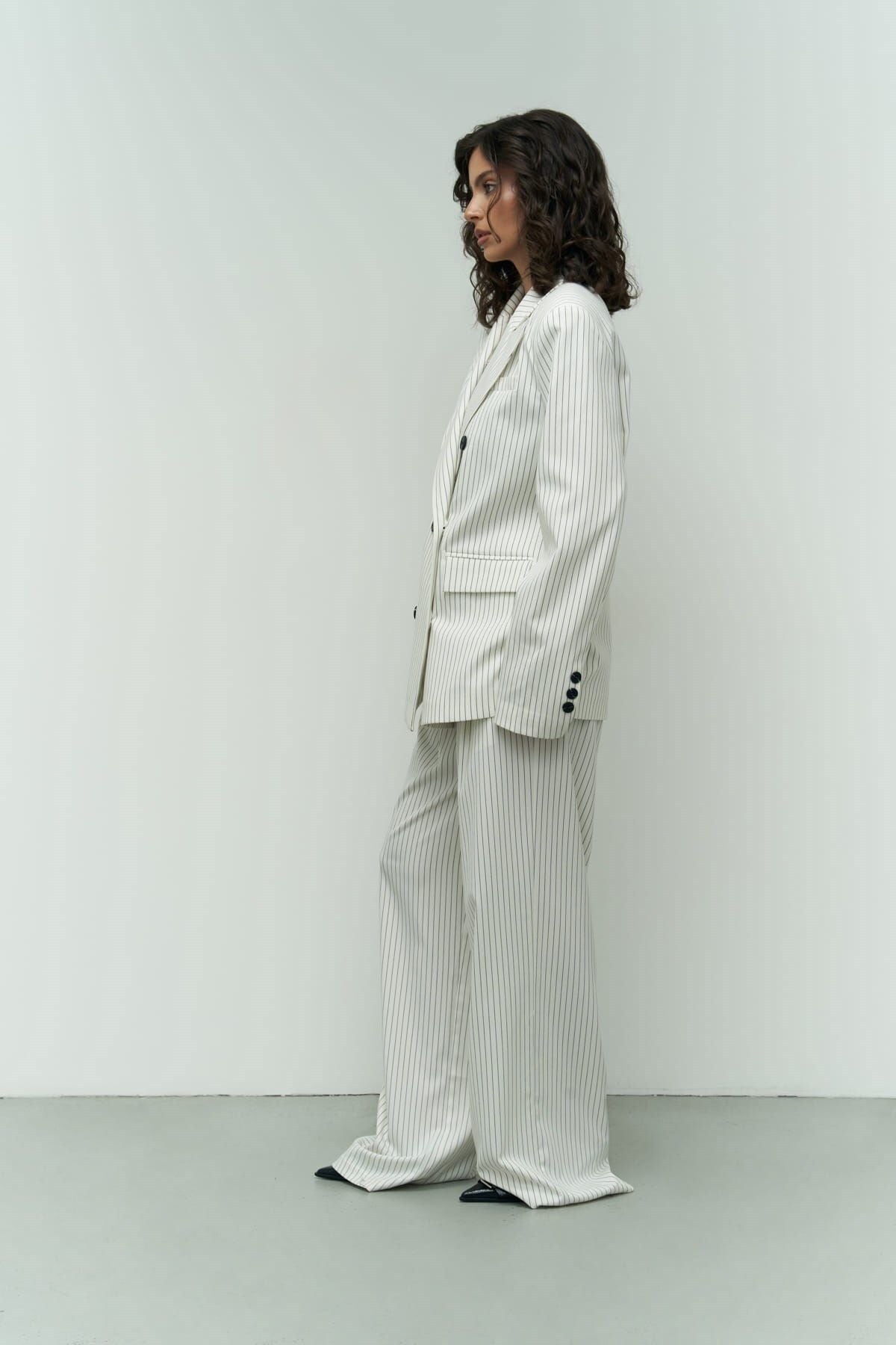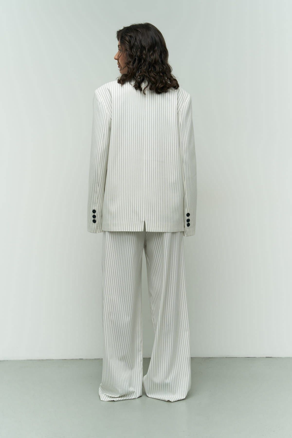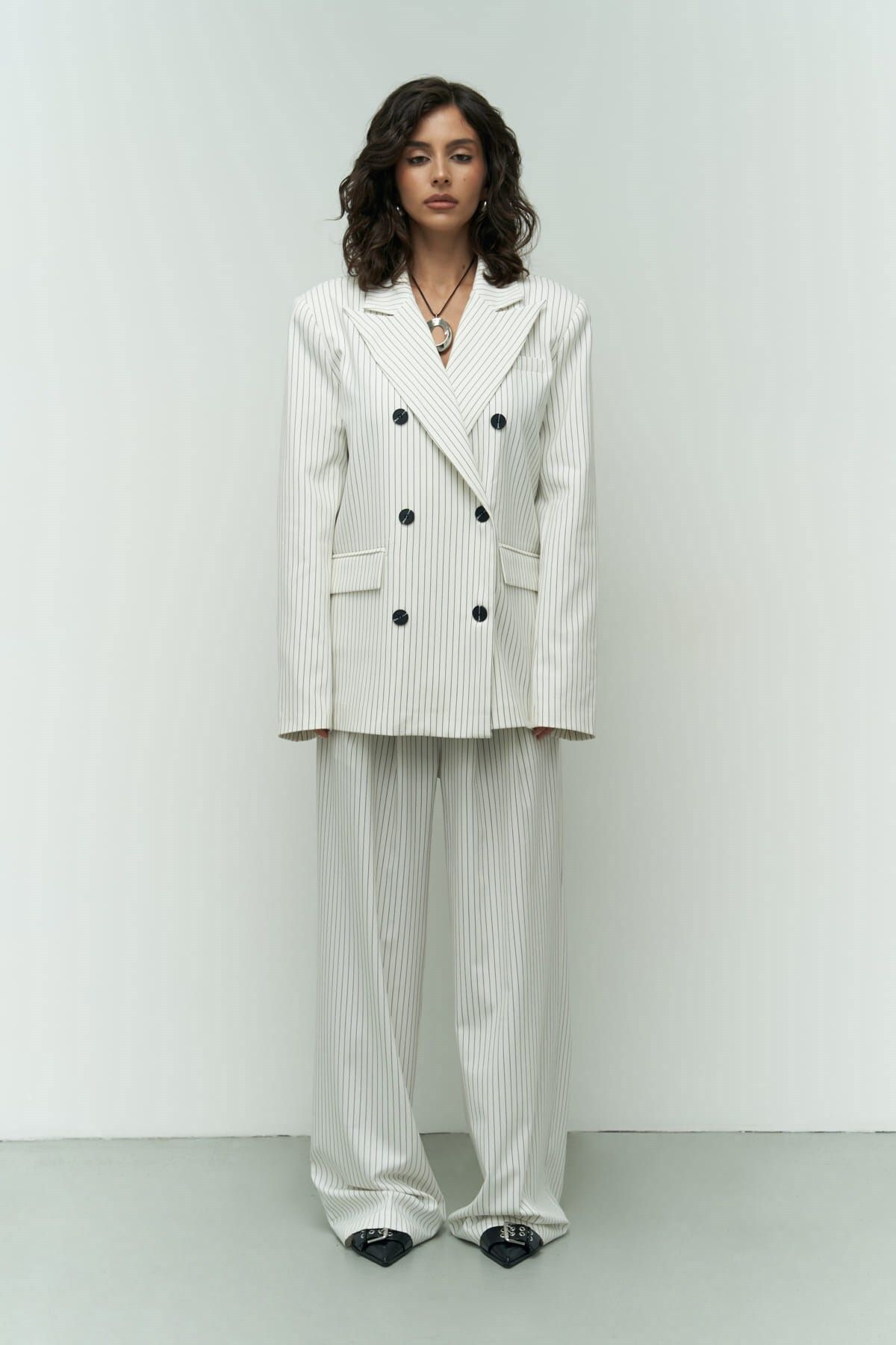 Omzu vatkalı, maskülen düz formda, önde altı düğme ve kruvaze kapamalı. Cepli blazer ceket.
