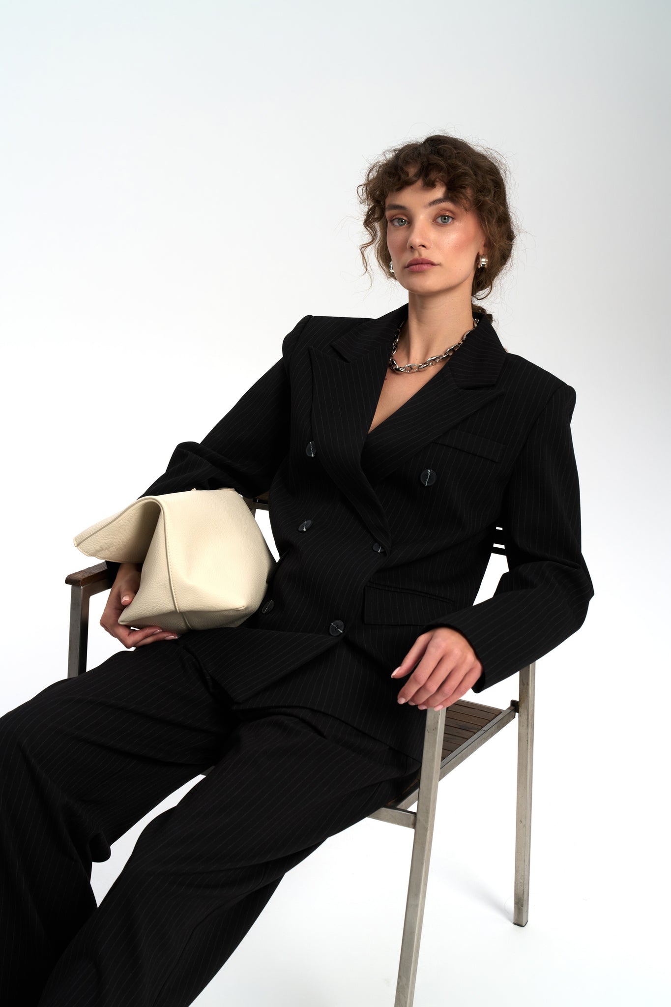 Bianda Çizgili Siyah Blazer