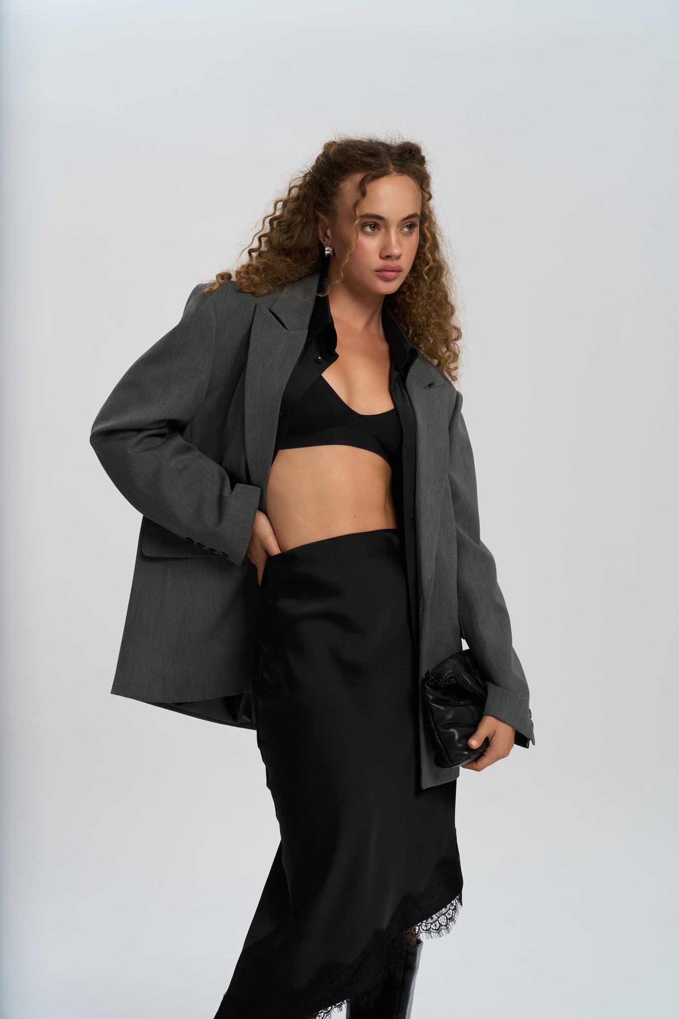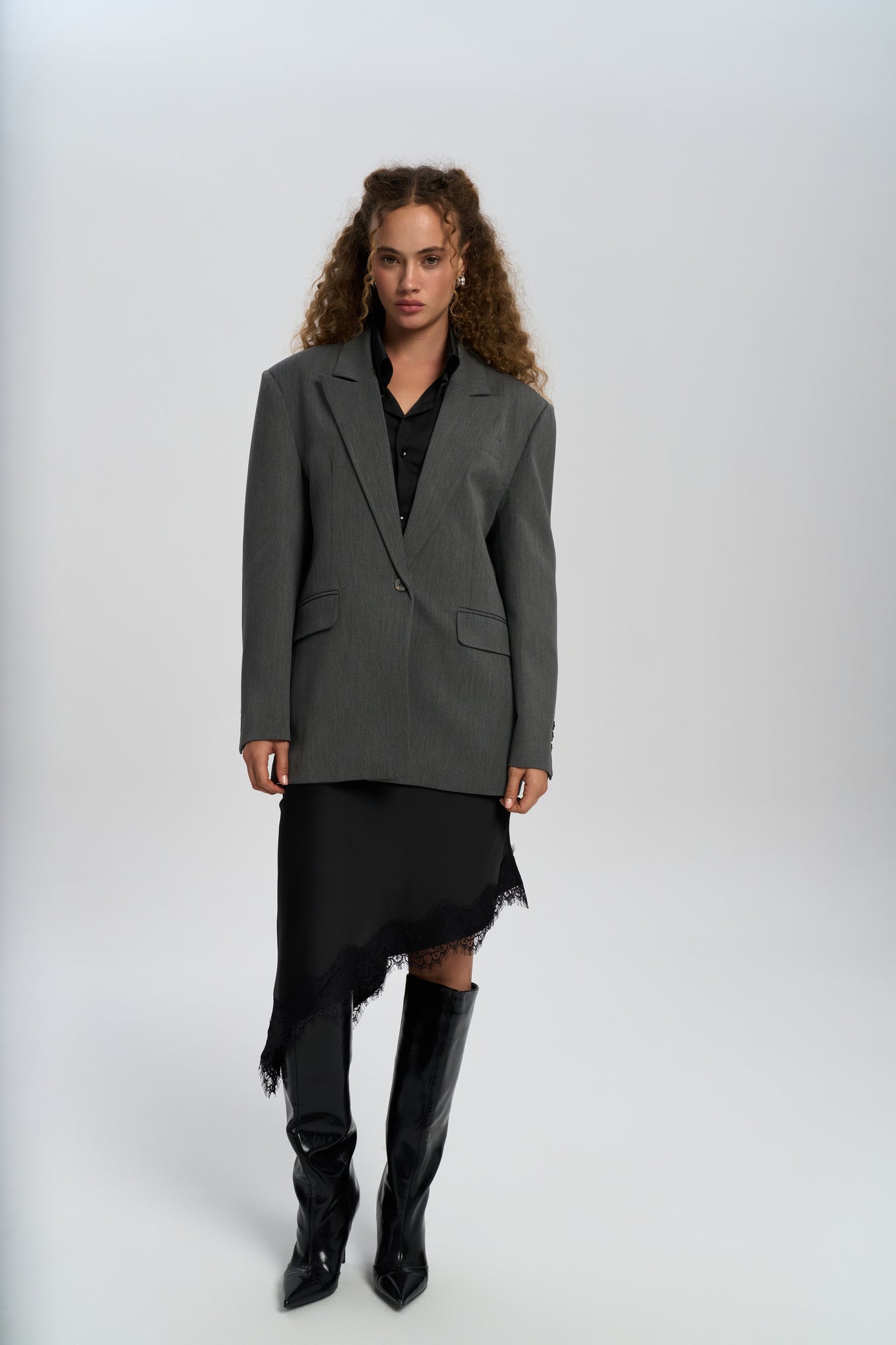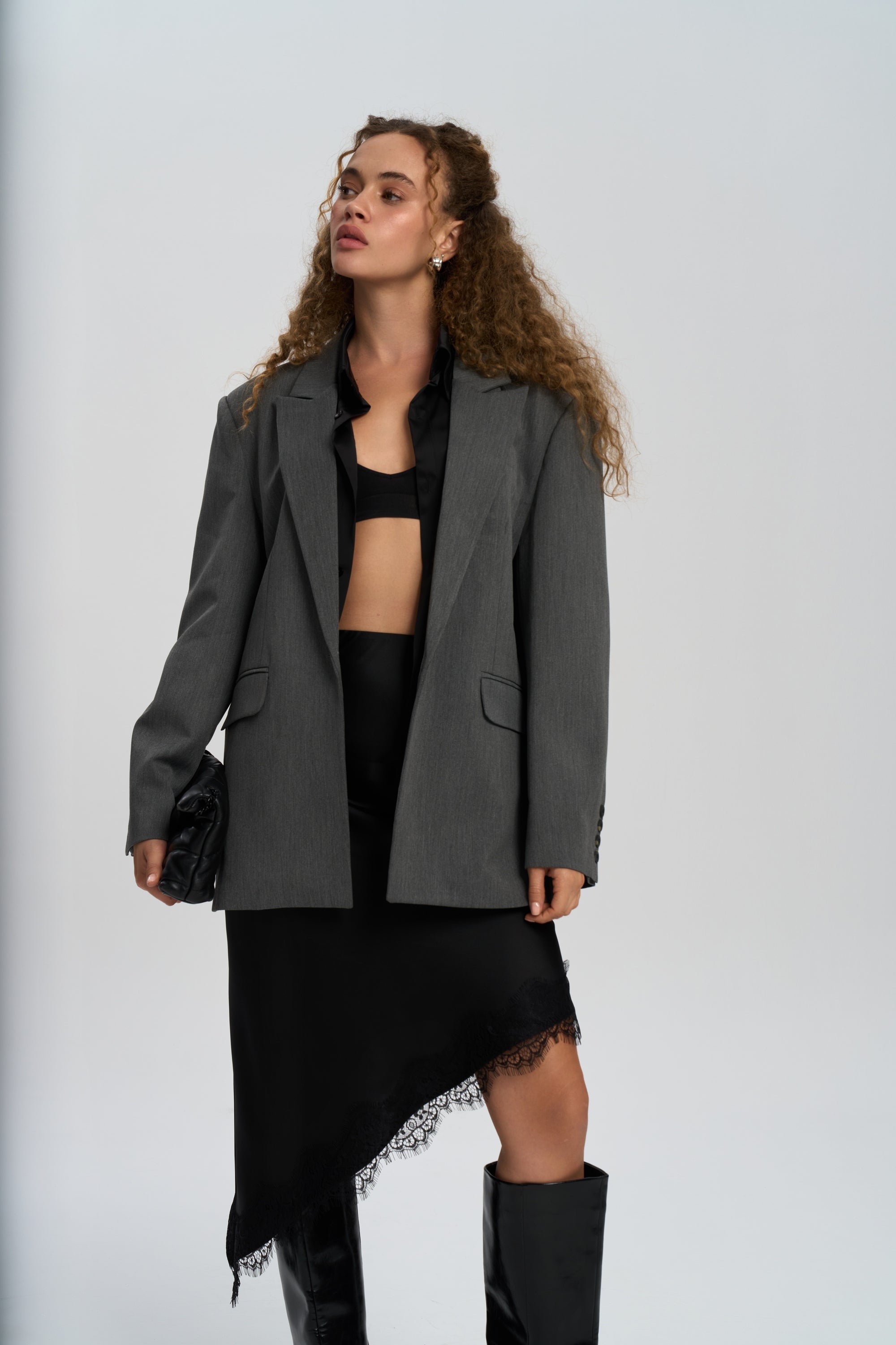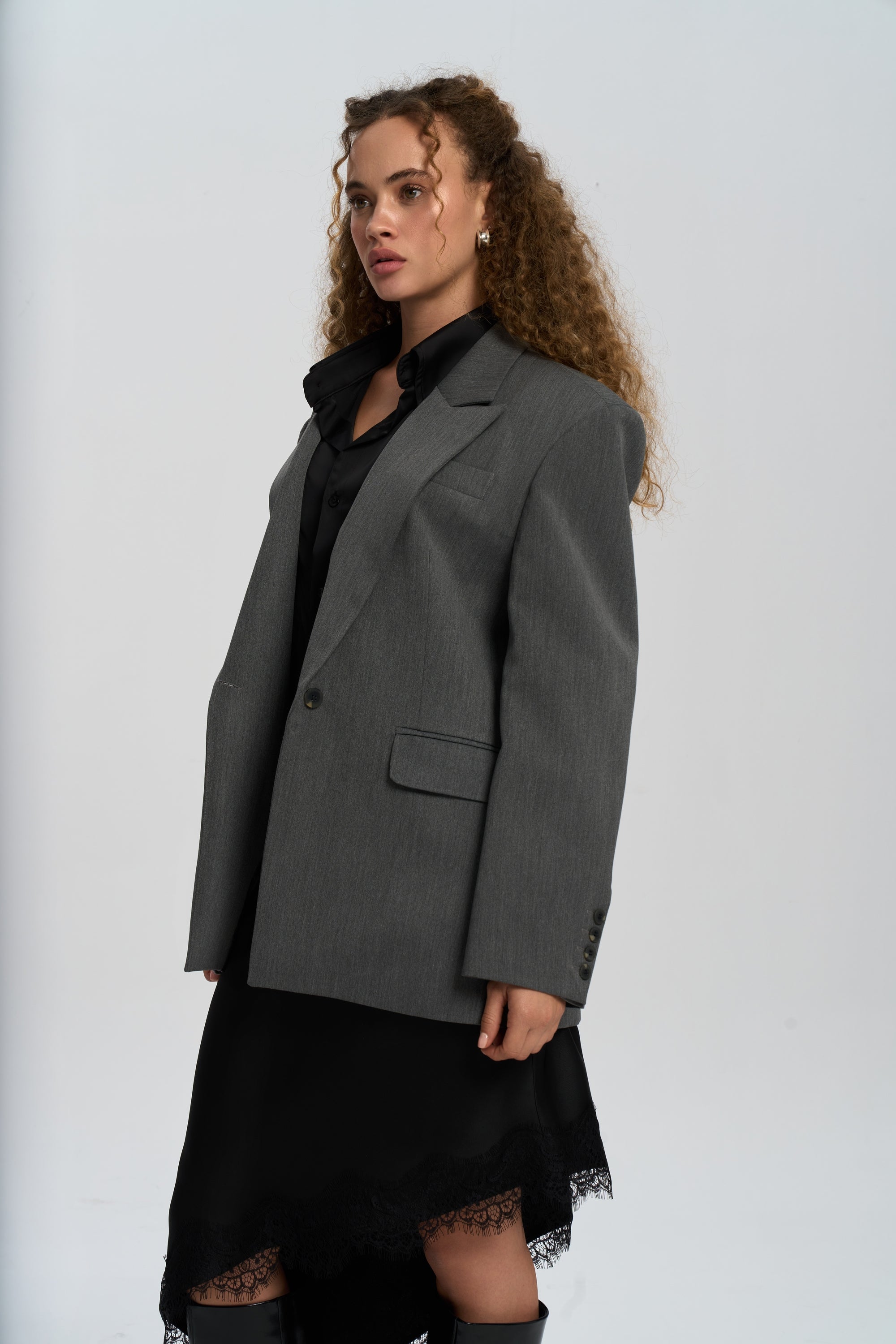 Catroux Gömlek Yaka Detaylı Füme Blazer