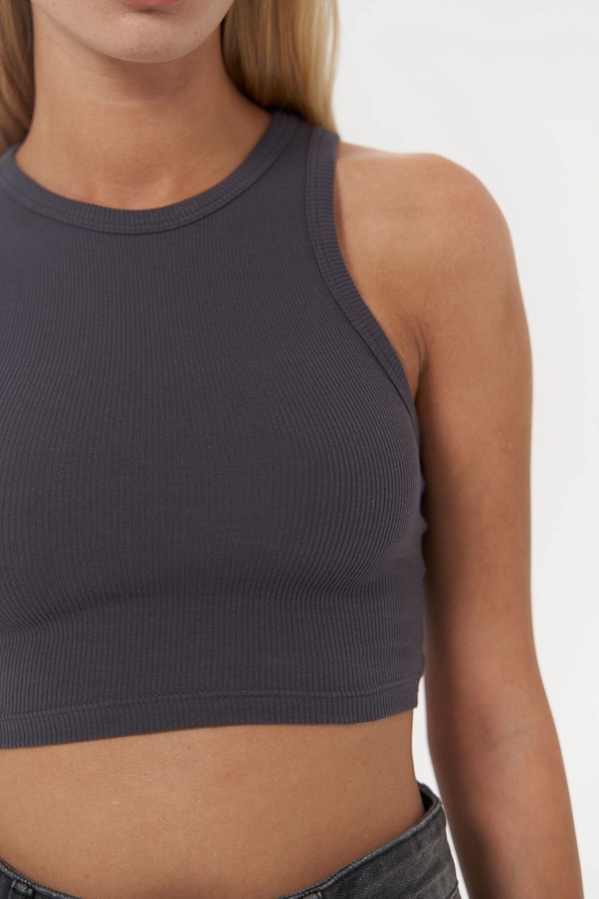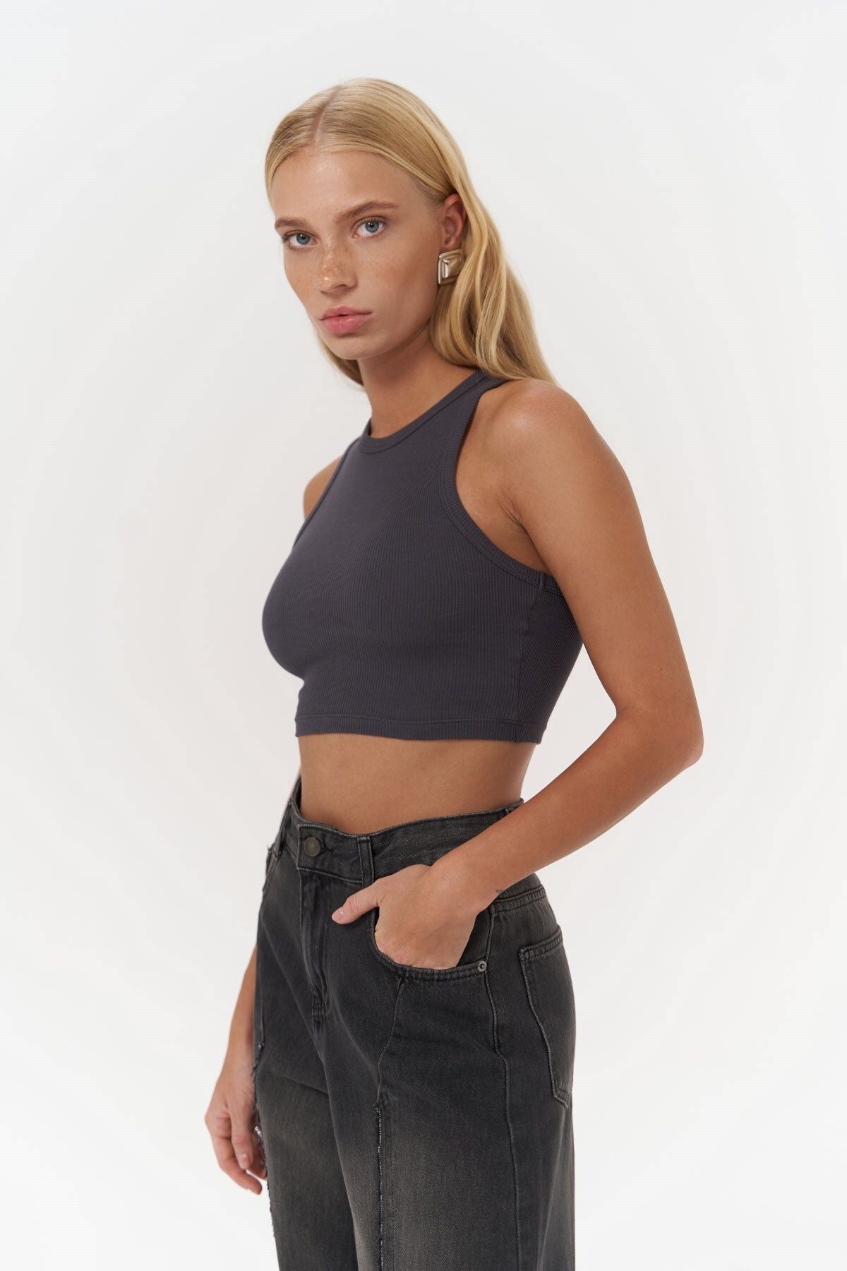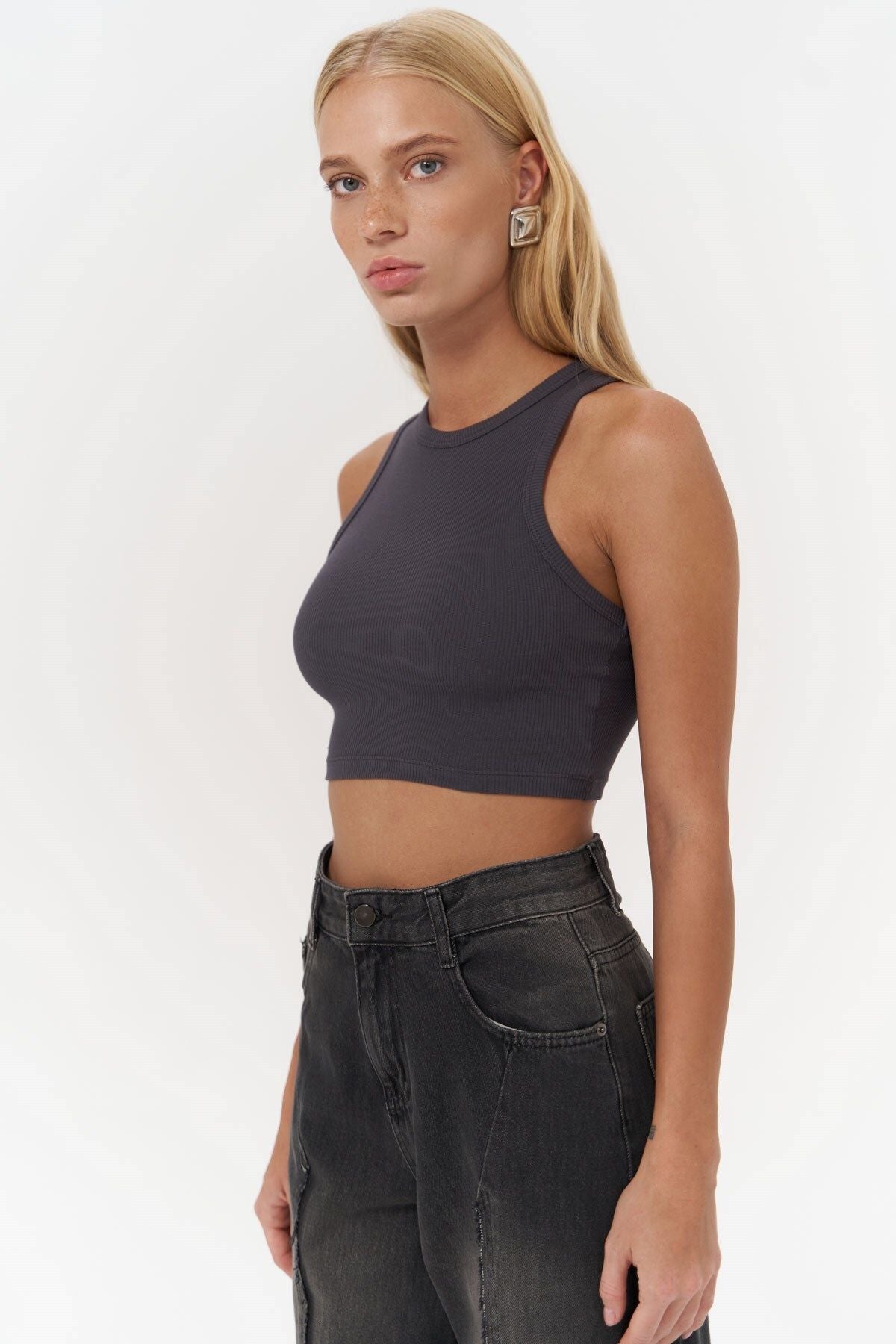 Fleur Fitilli Halter Yaka Antrasit Crop