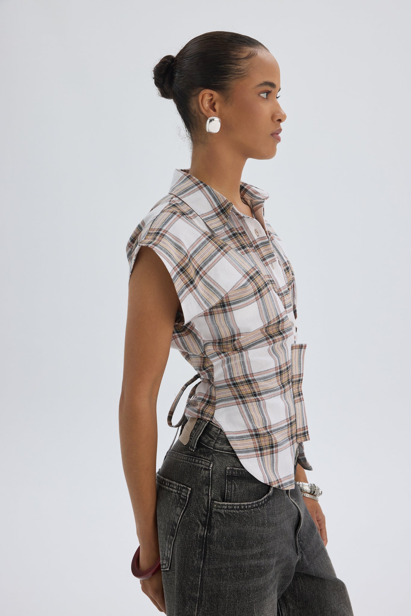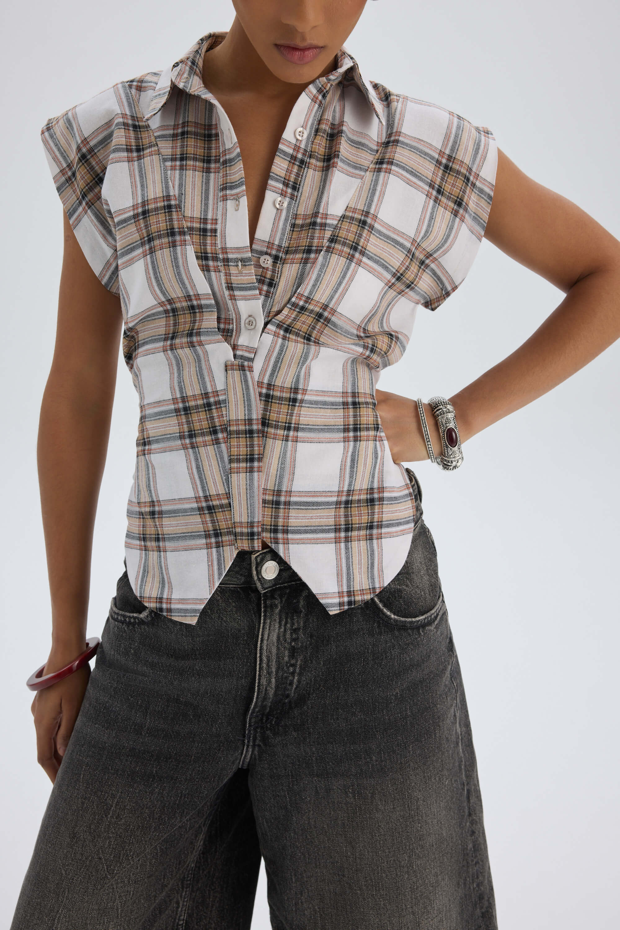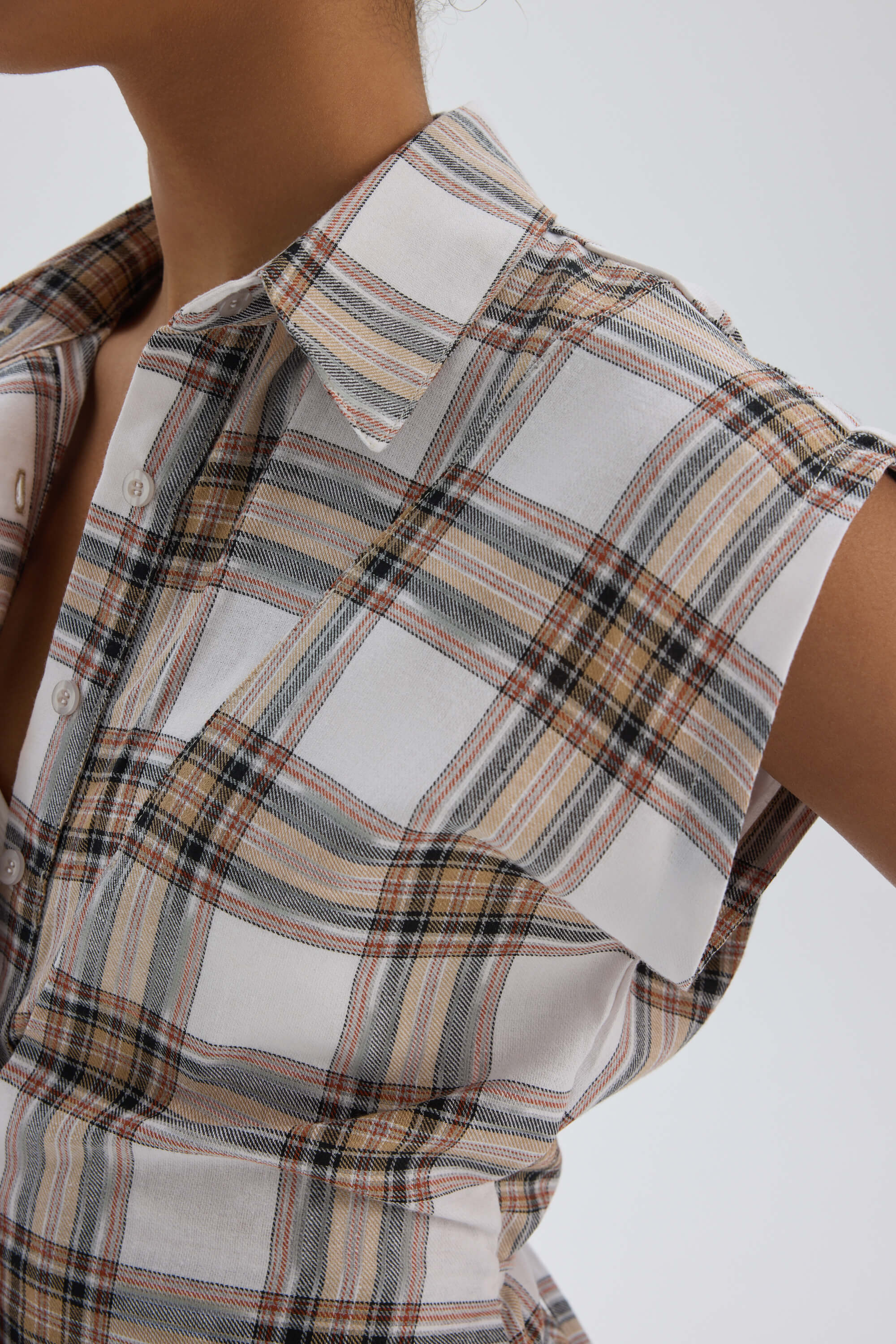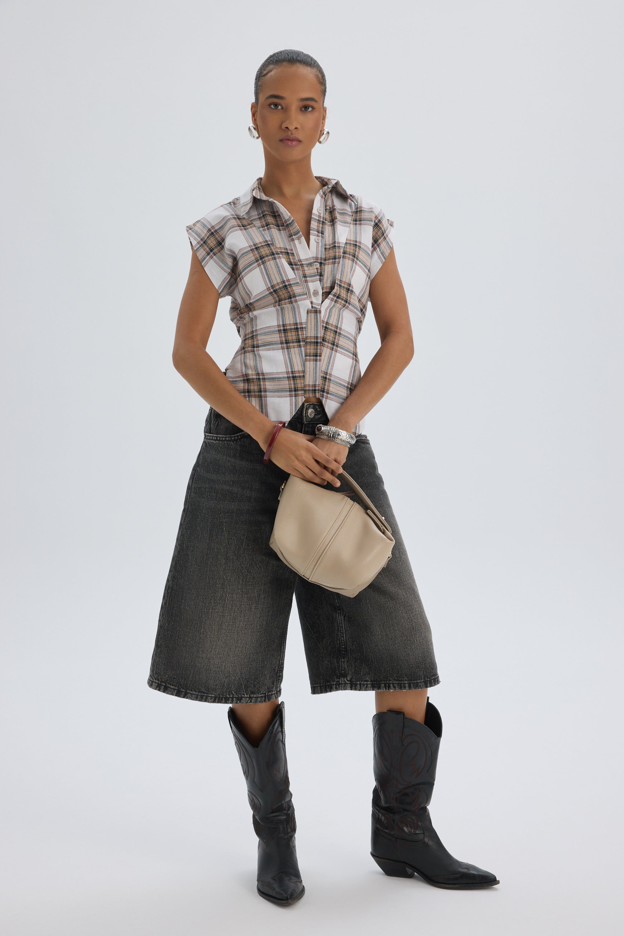 Frenzy Ekoseli Ekru Kısa Gömlek