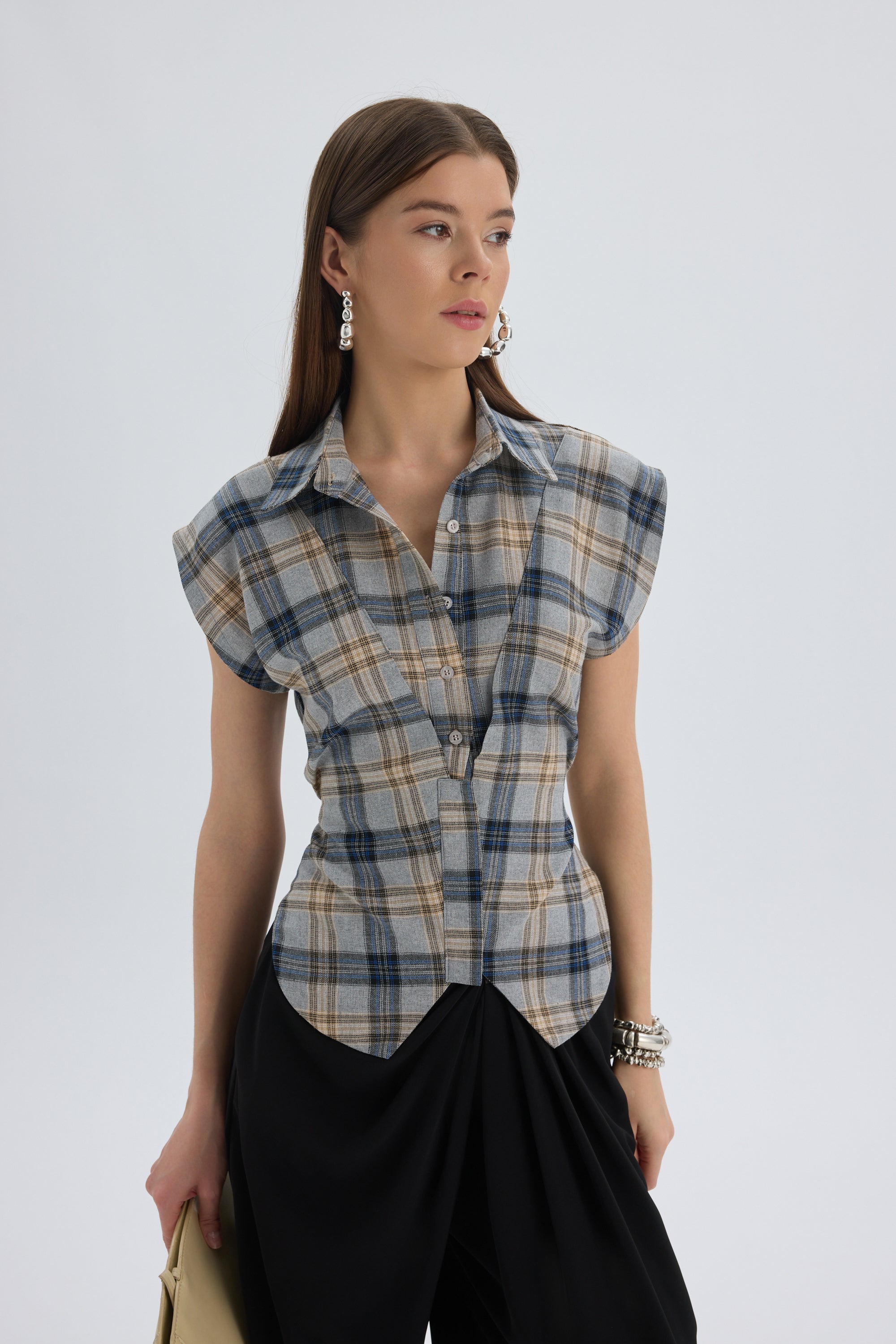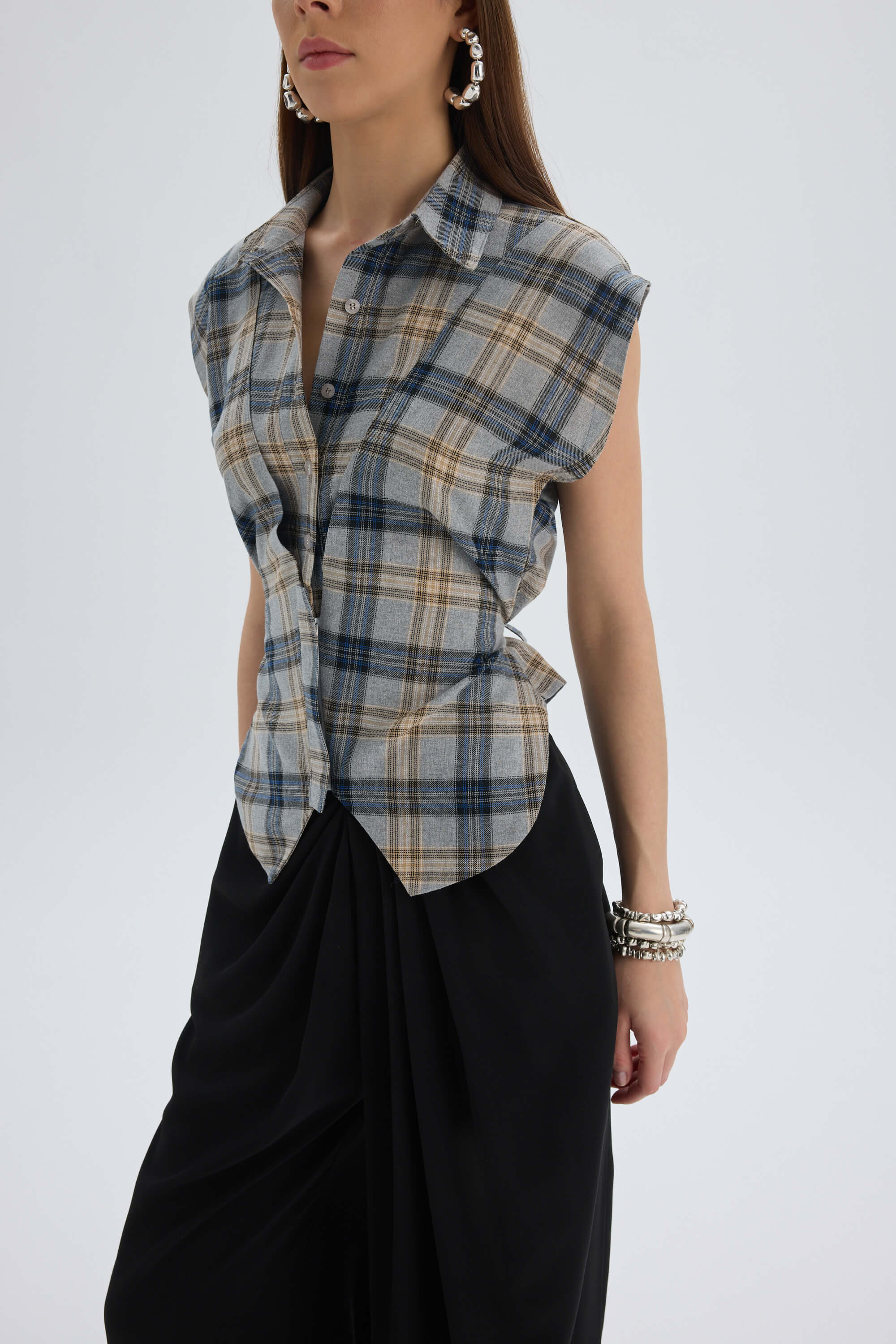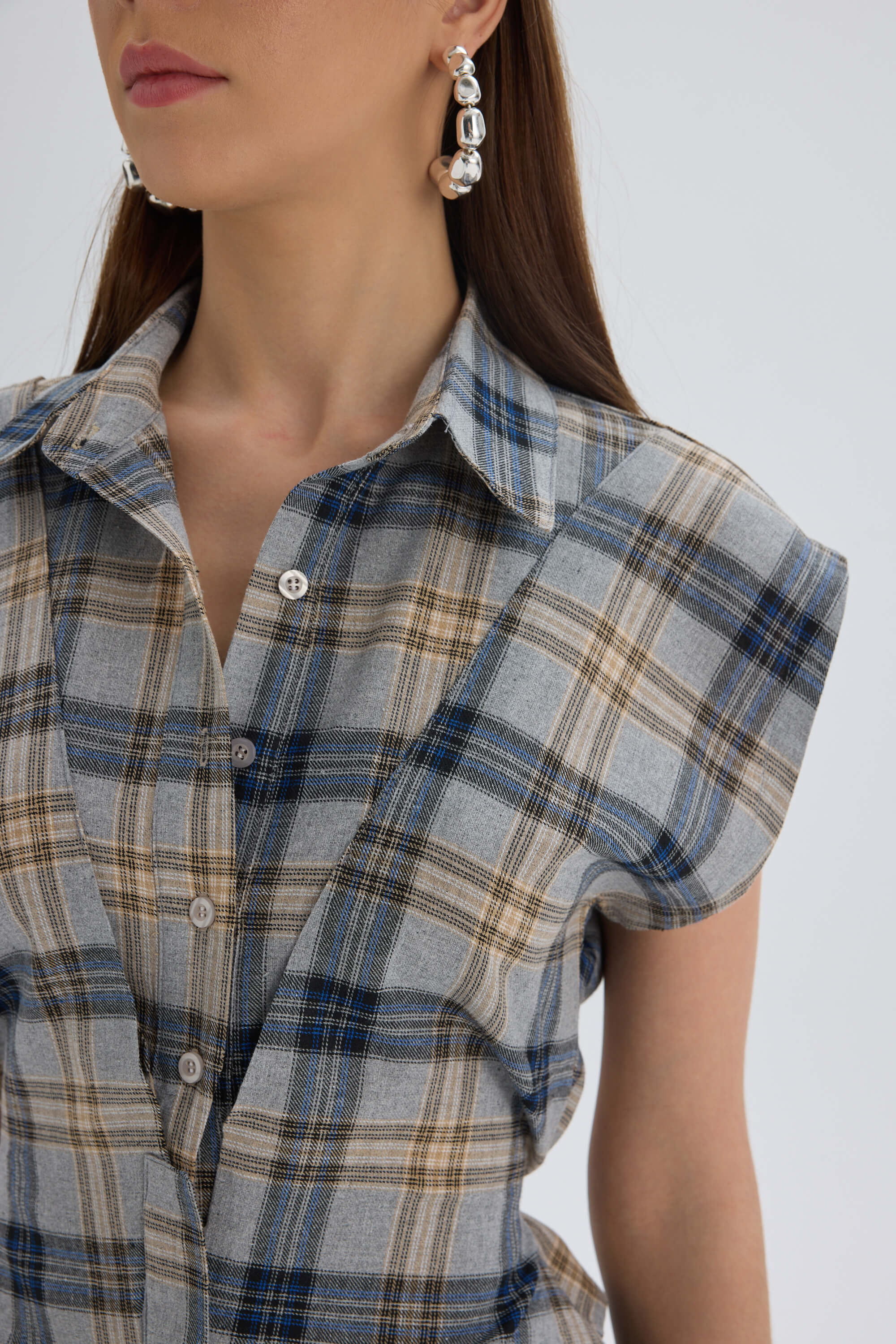 Frenzy Ekoseli Gri Kısa Gömlek