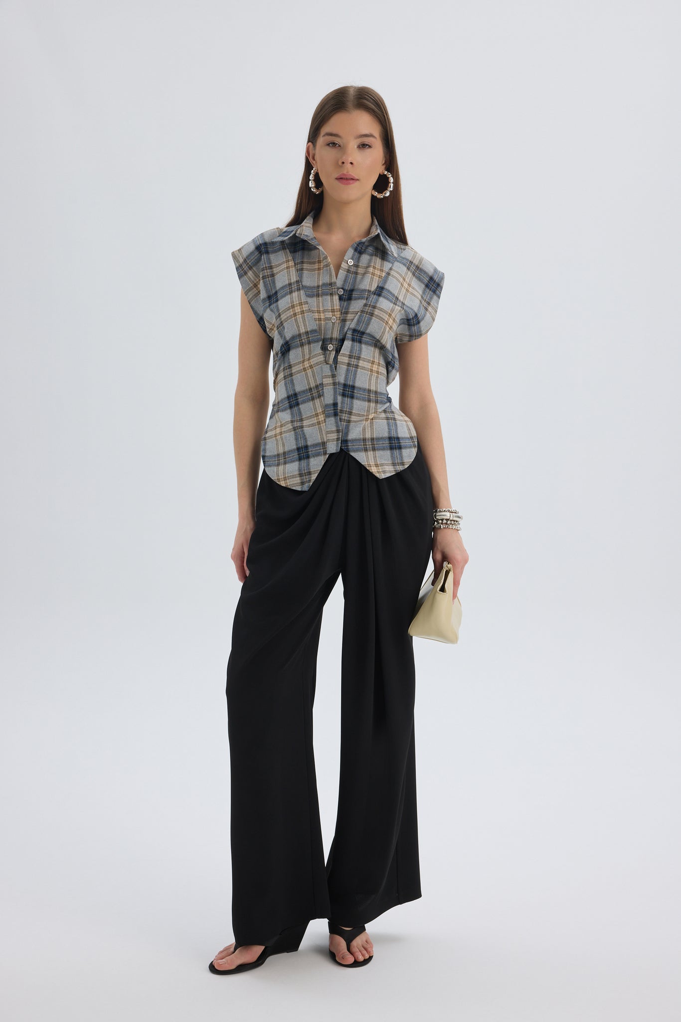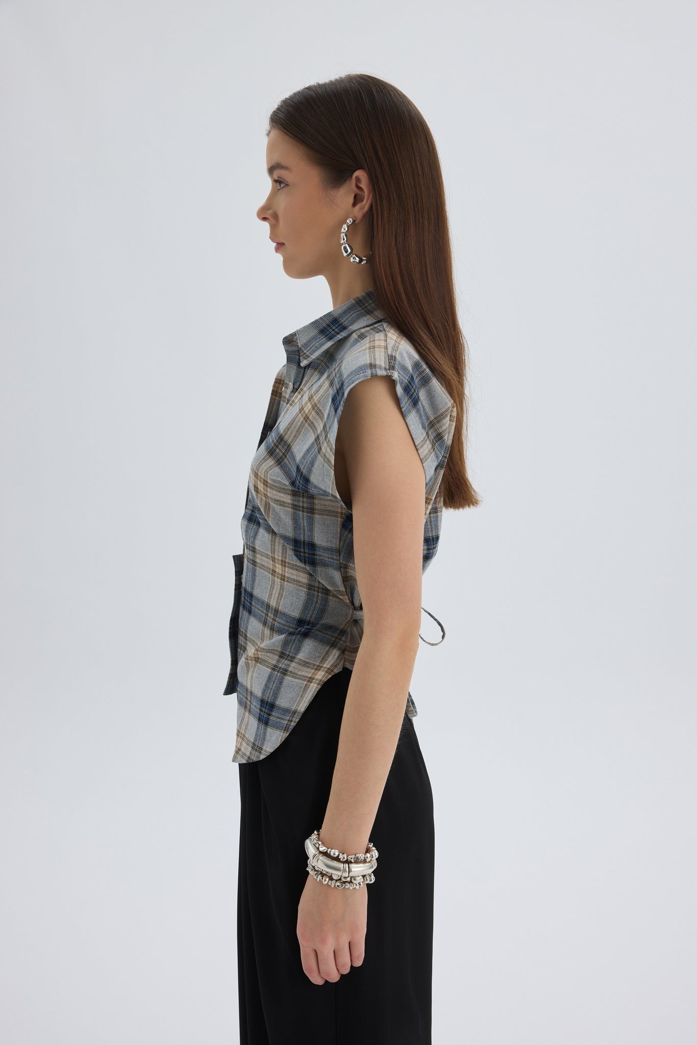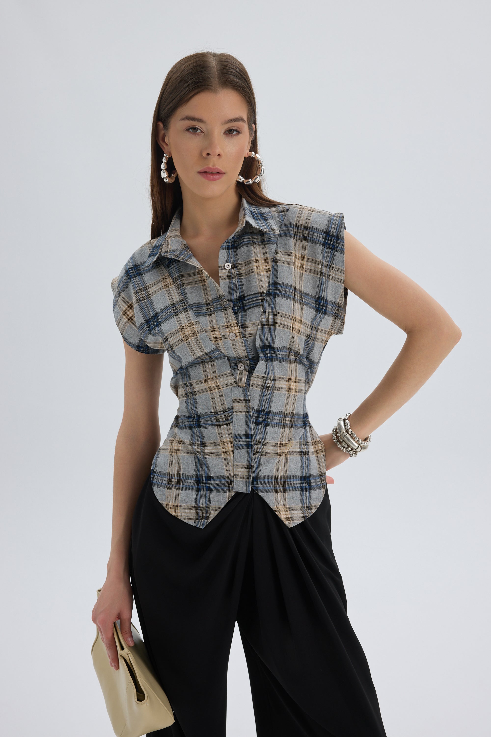 Frenzy Ekoseli Gri Kısa Gömlek