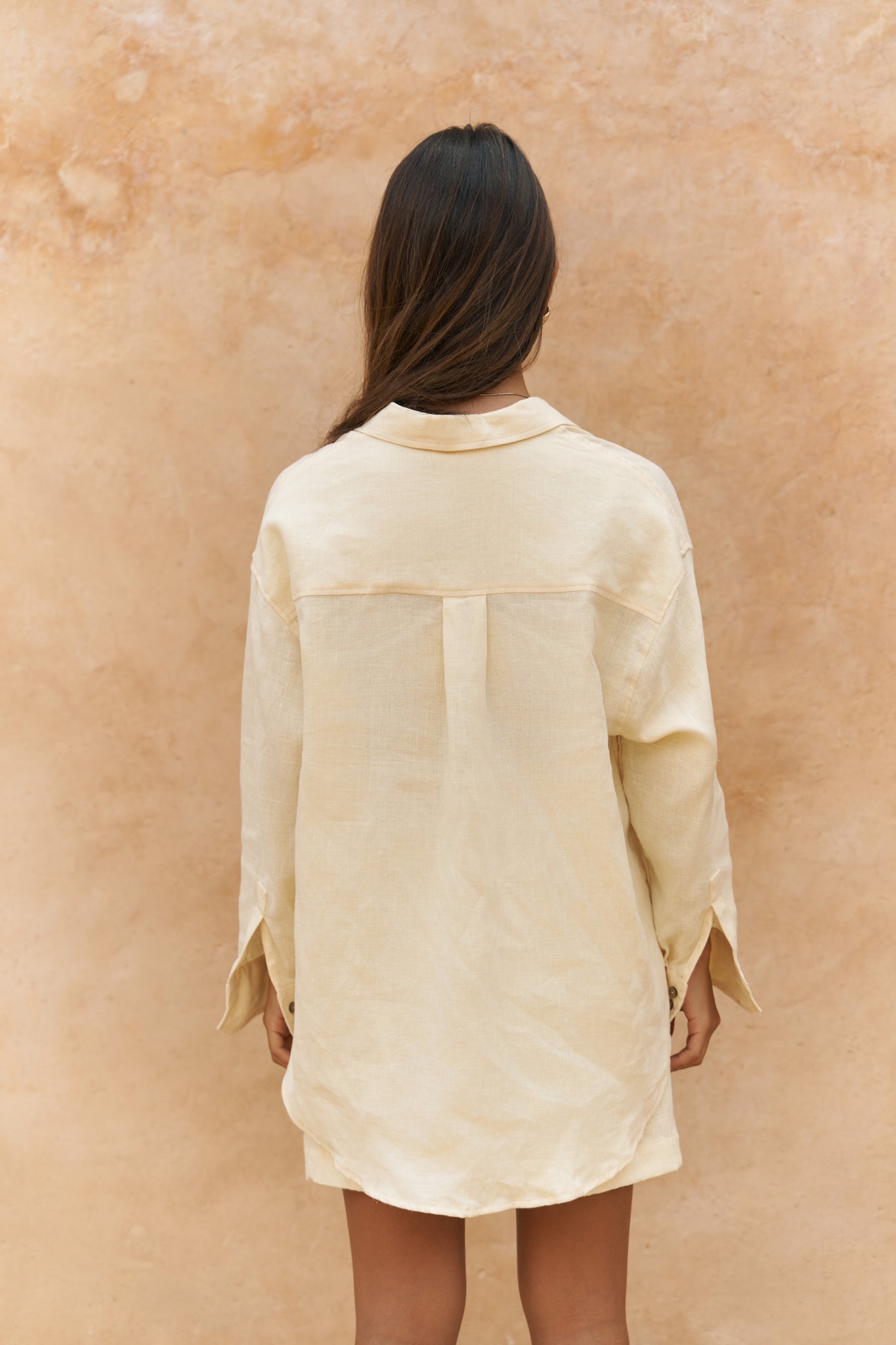 Gaelil Oversize Sarı Keten Gömlek Şort Takım