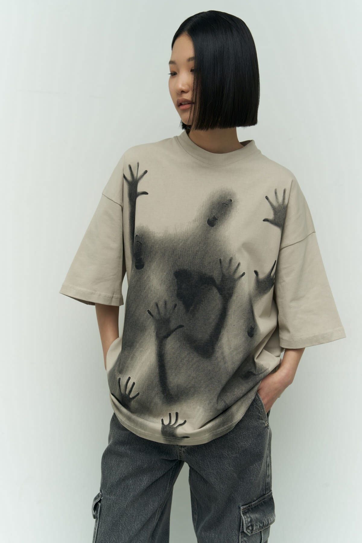 Ghost Bej Oversize T-shirt