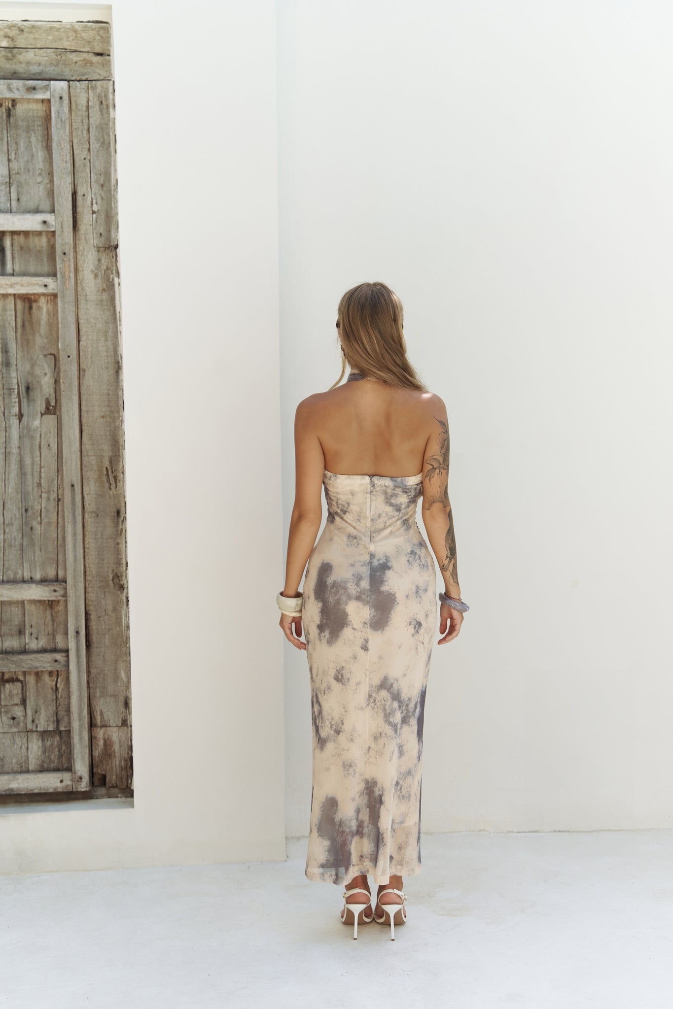 Keefnes Kruvaze Sarı Uzun Elbise