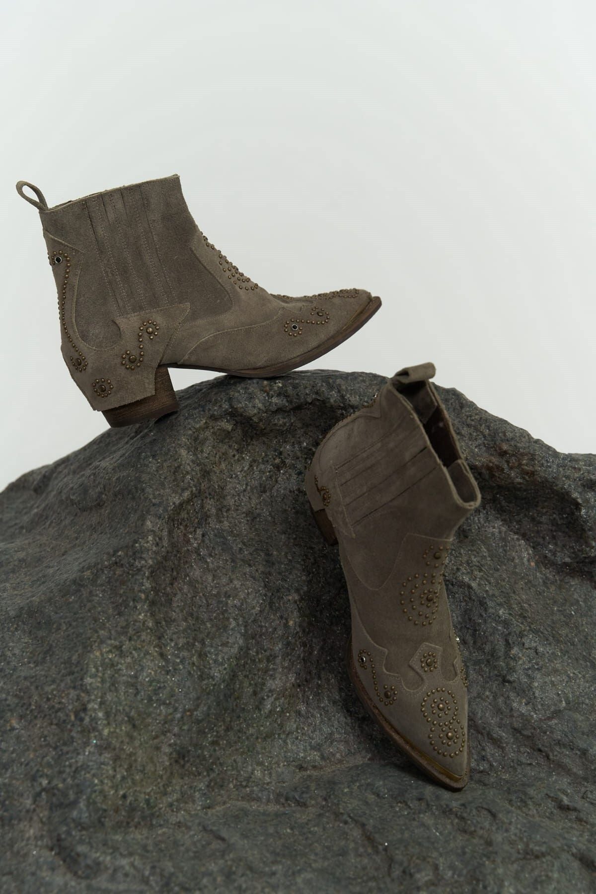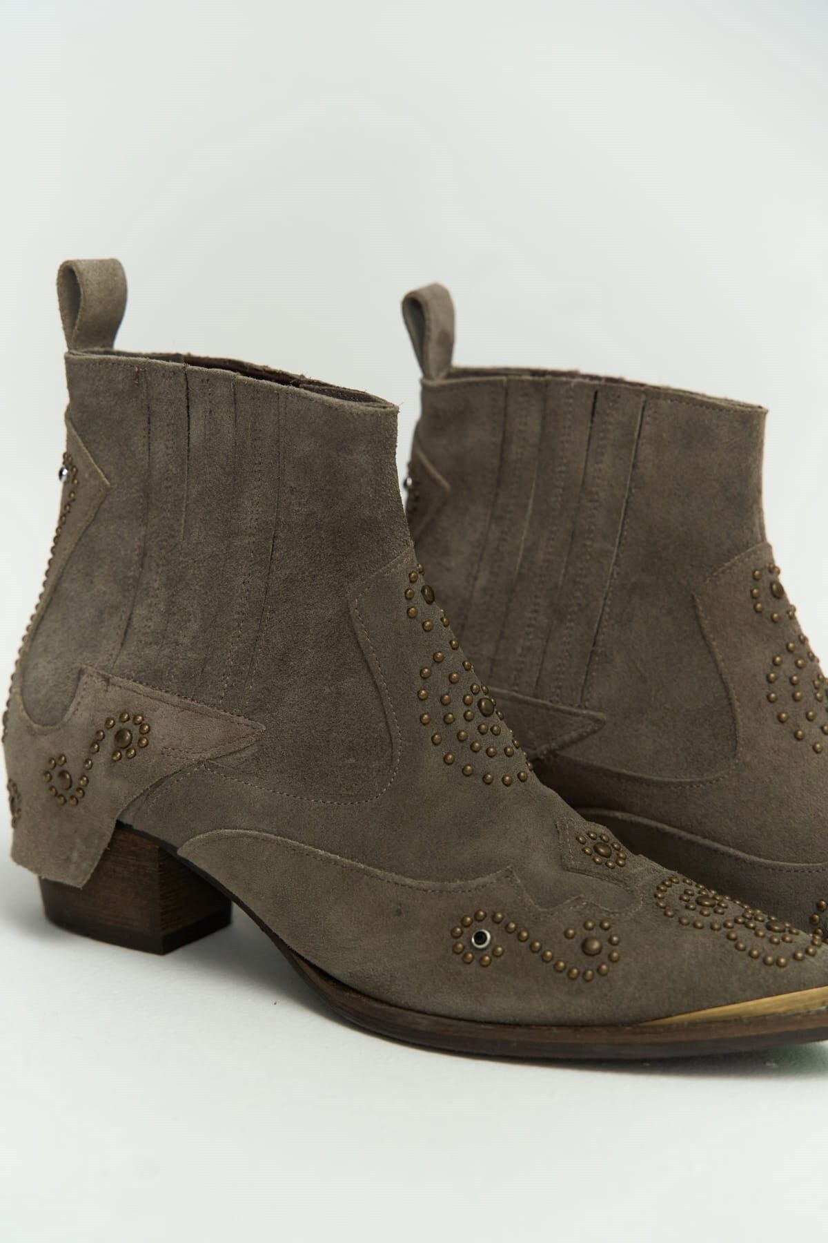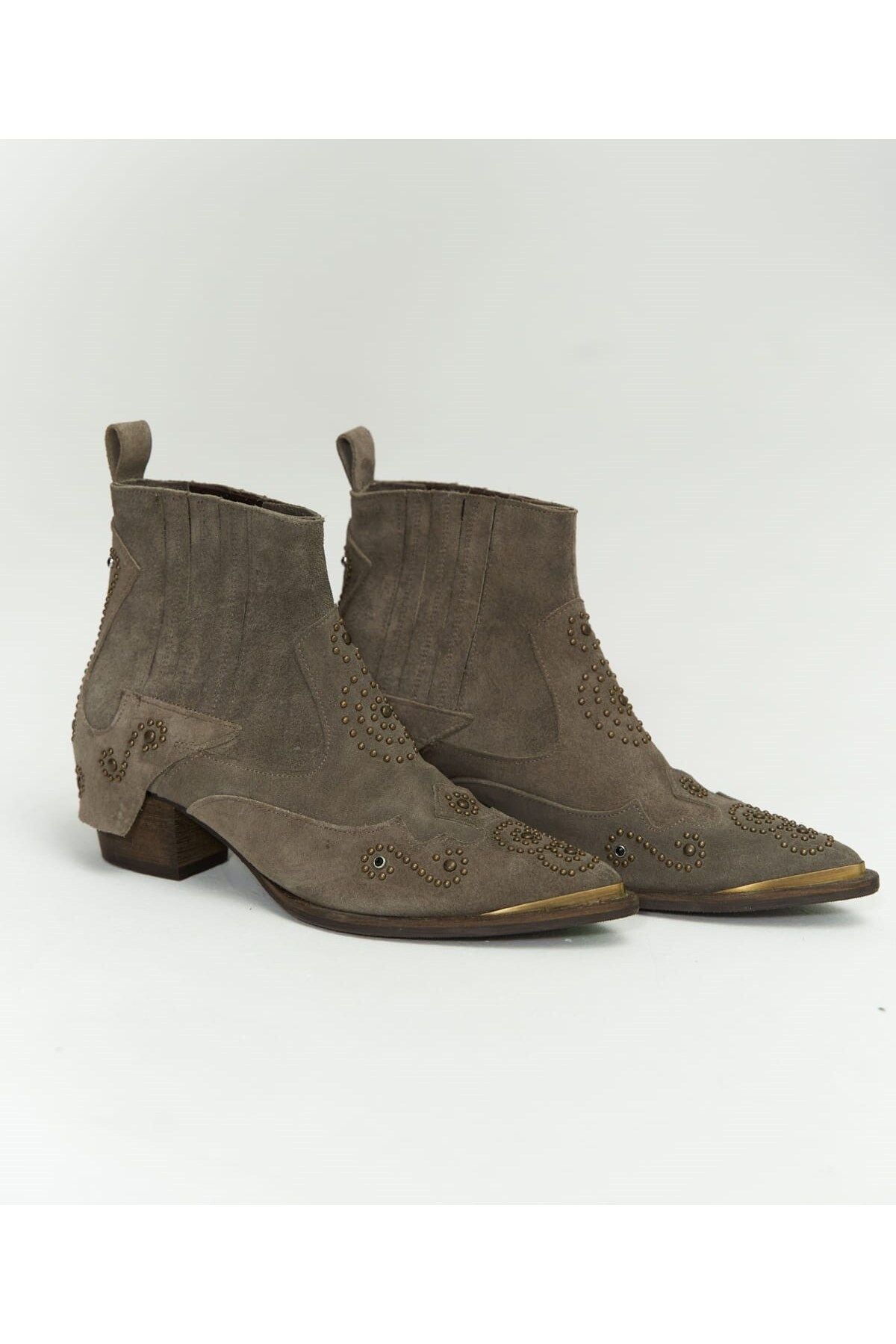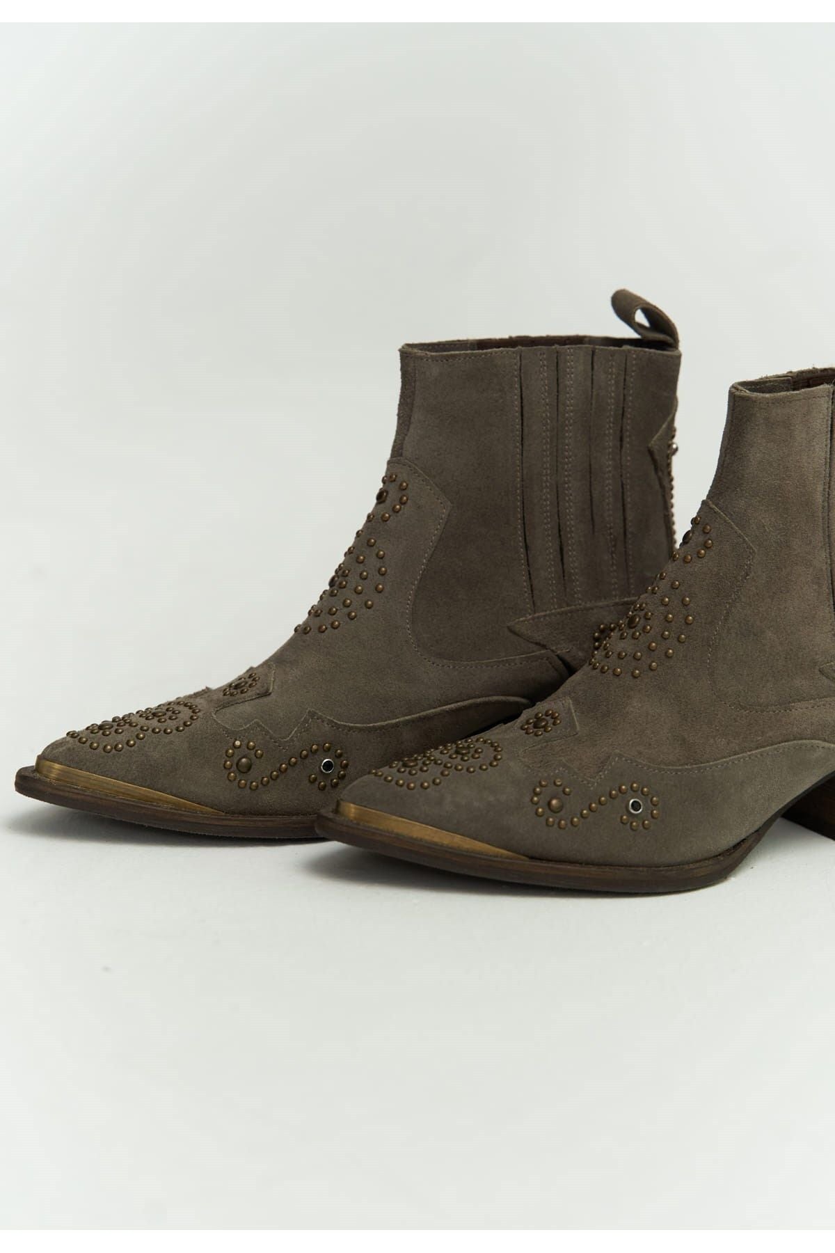 Maxi Zımba Detay Gri Süet Kovboy Bot