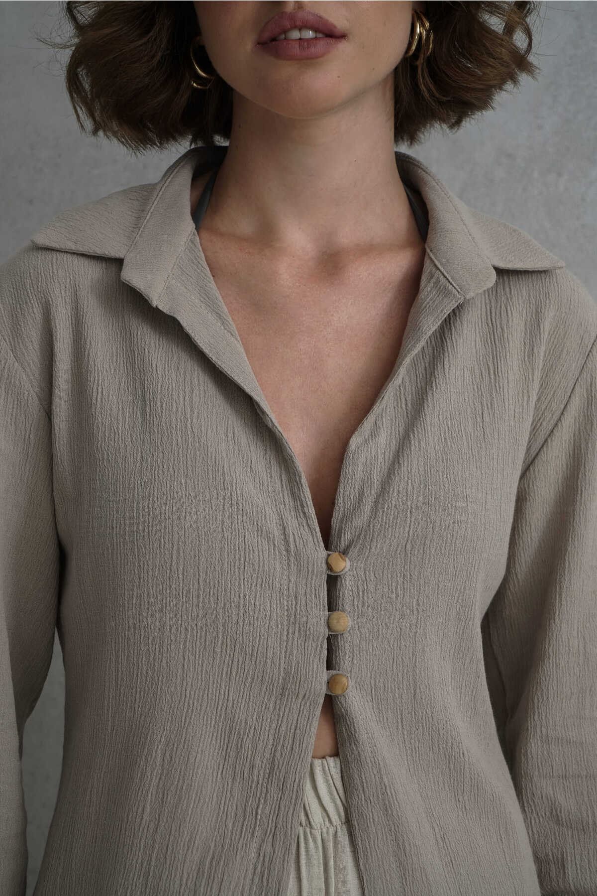 Morrow Ahşap Düğme Detay Taş Gömlek