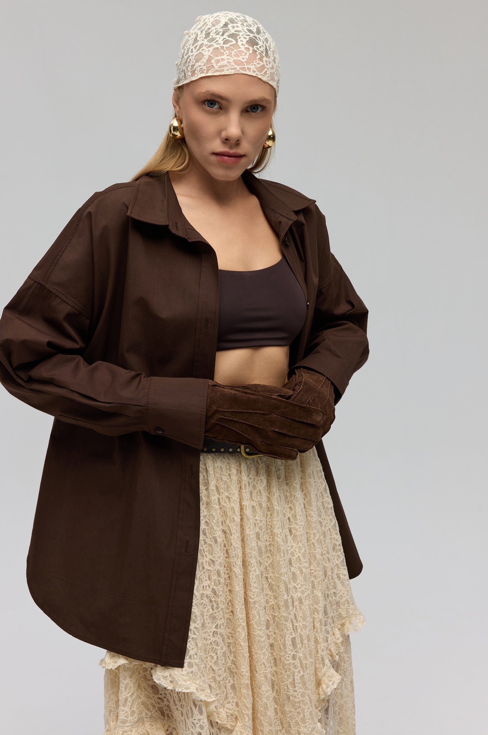 Phoebe Oversize Kahve Gömlek