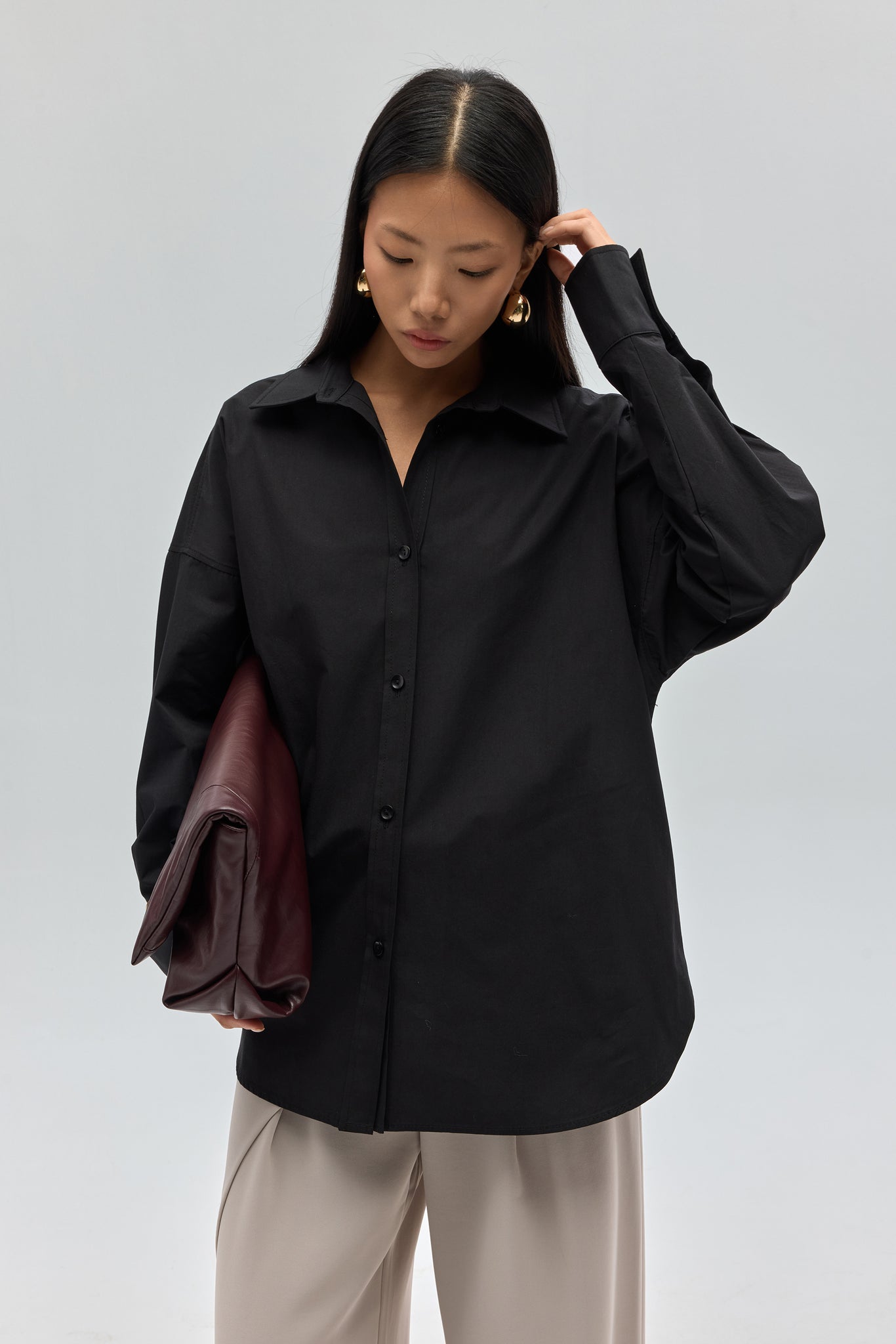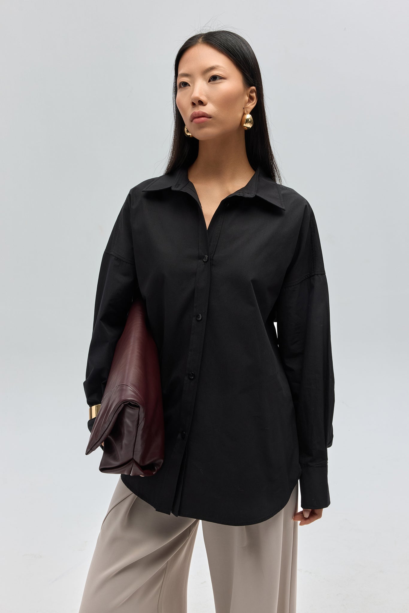 Phoebe Oversize Siyah Gömlek