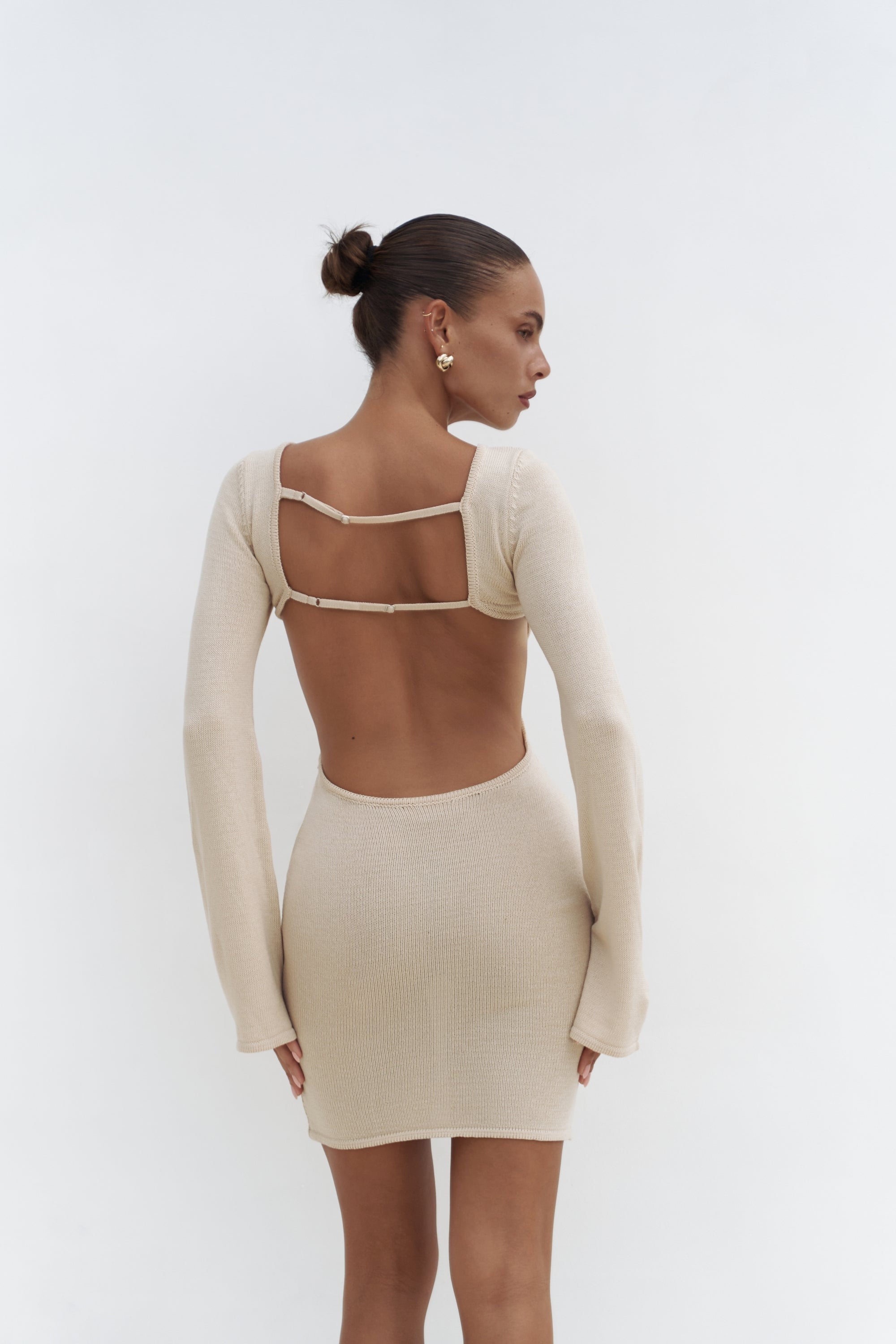 Sariah Pencere Detay Koyu Bej Triko Elbise