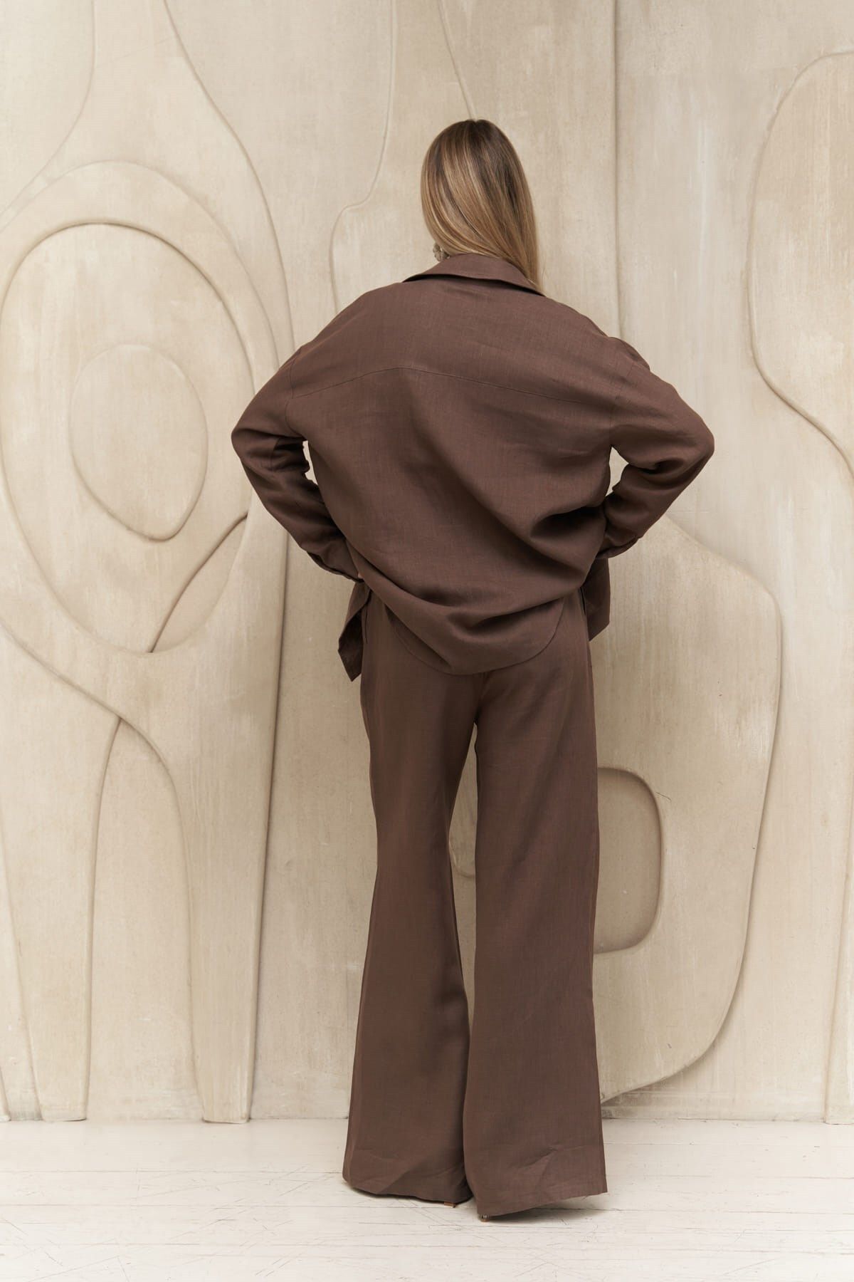 Willord Kahve Keten Gömlek Pantolon Takım