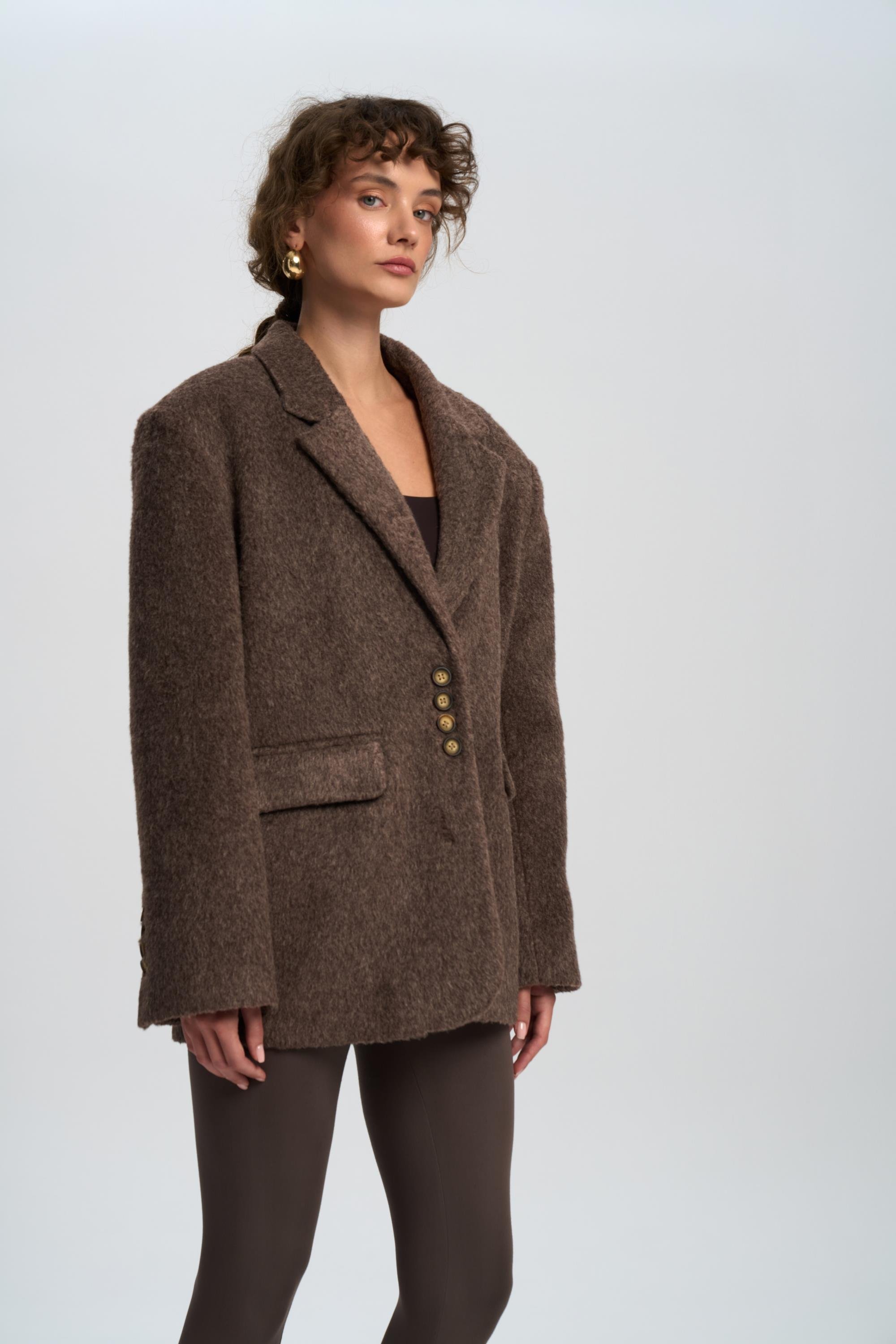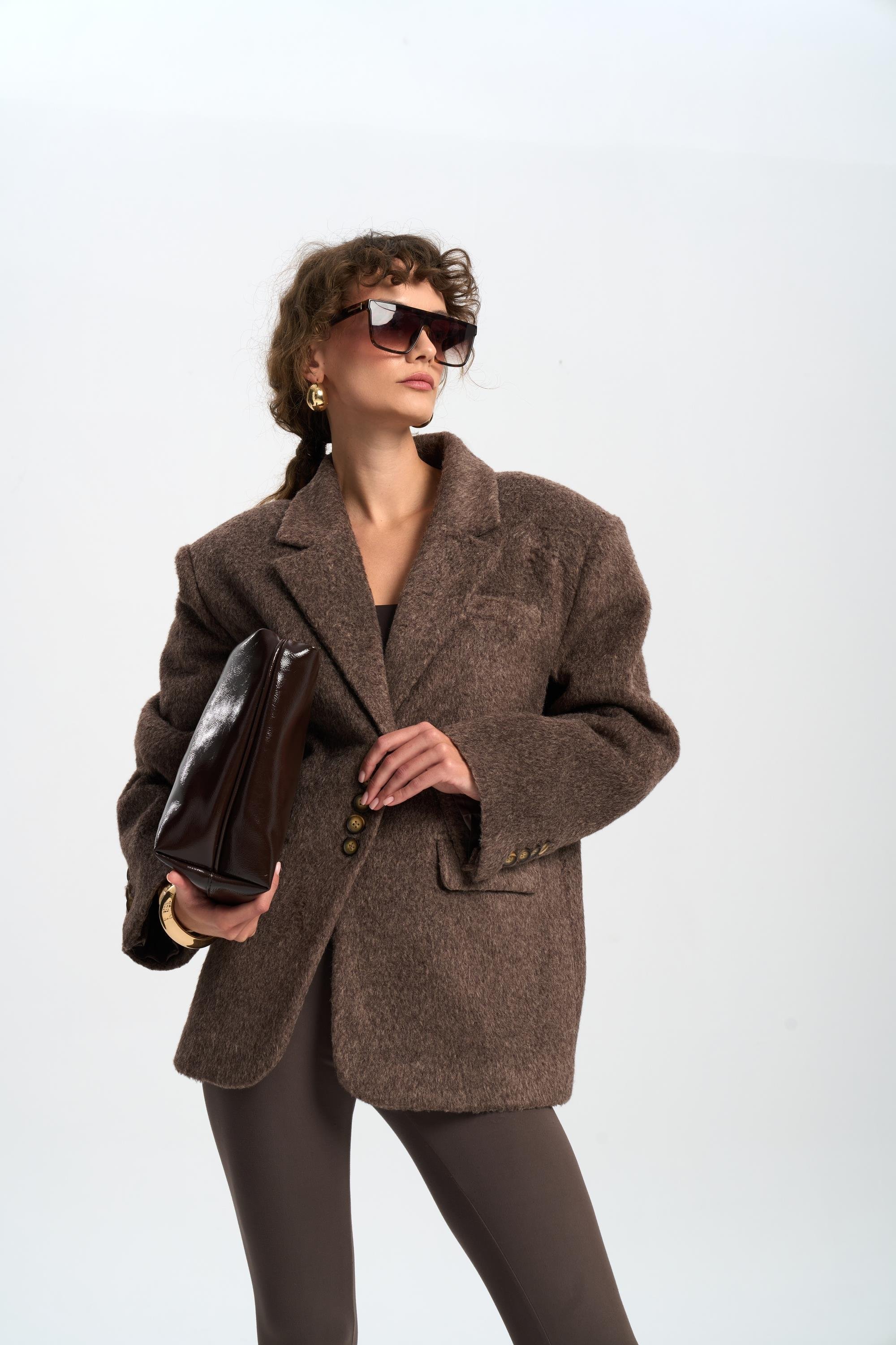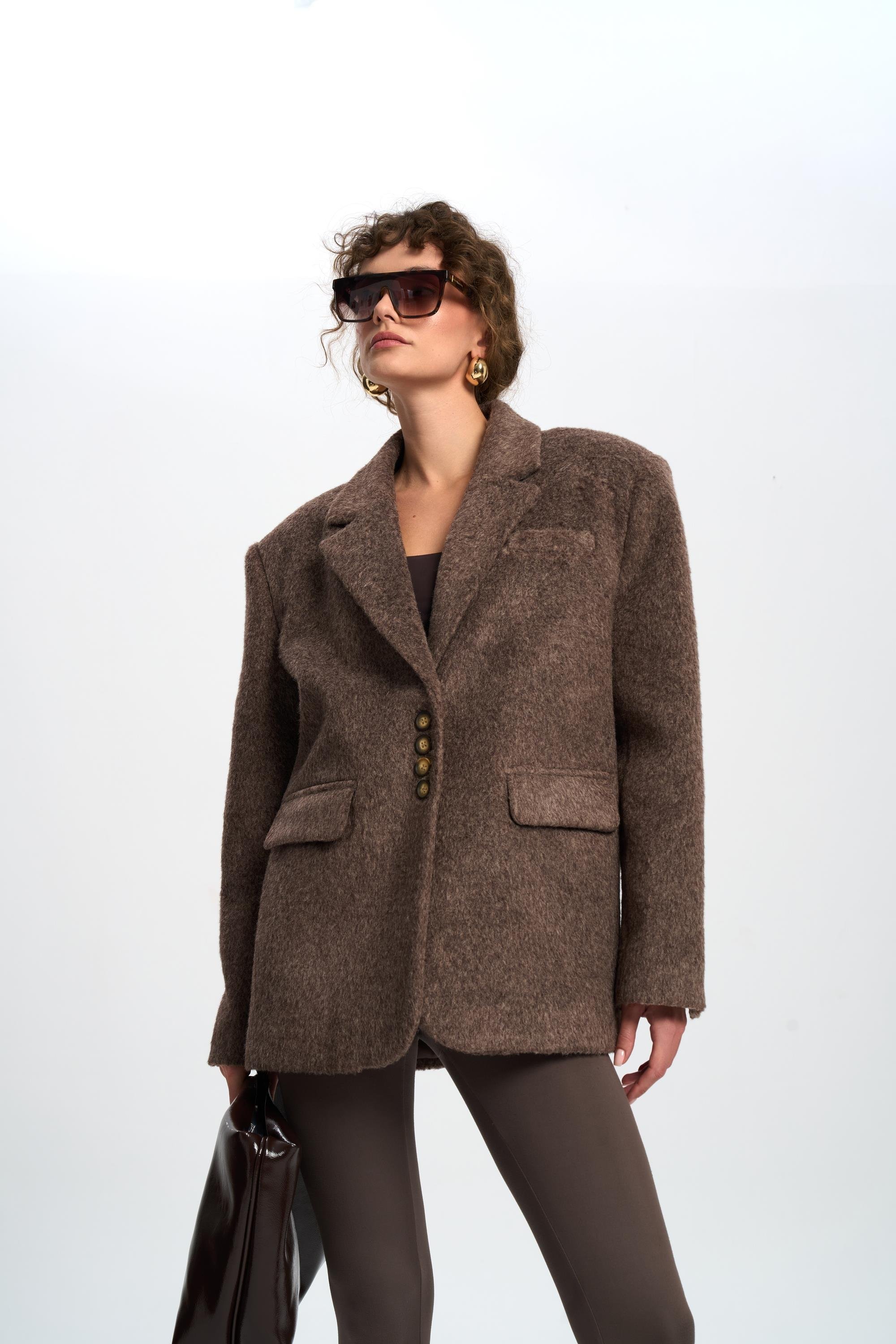 Katlı yaka, dökümlü blazer ceket. Vatkalı ve astarlı. Önü ve kolları düğmeli.