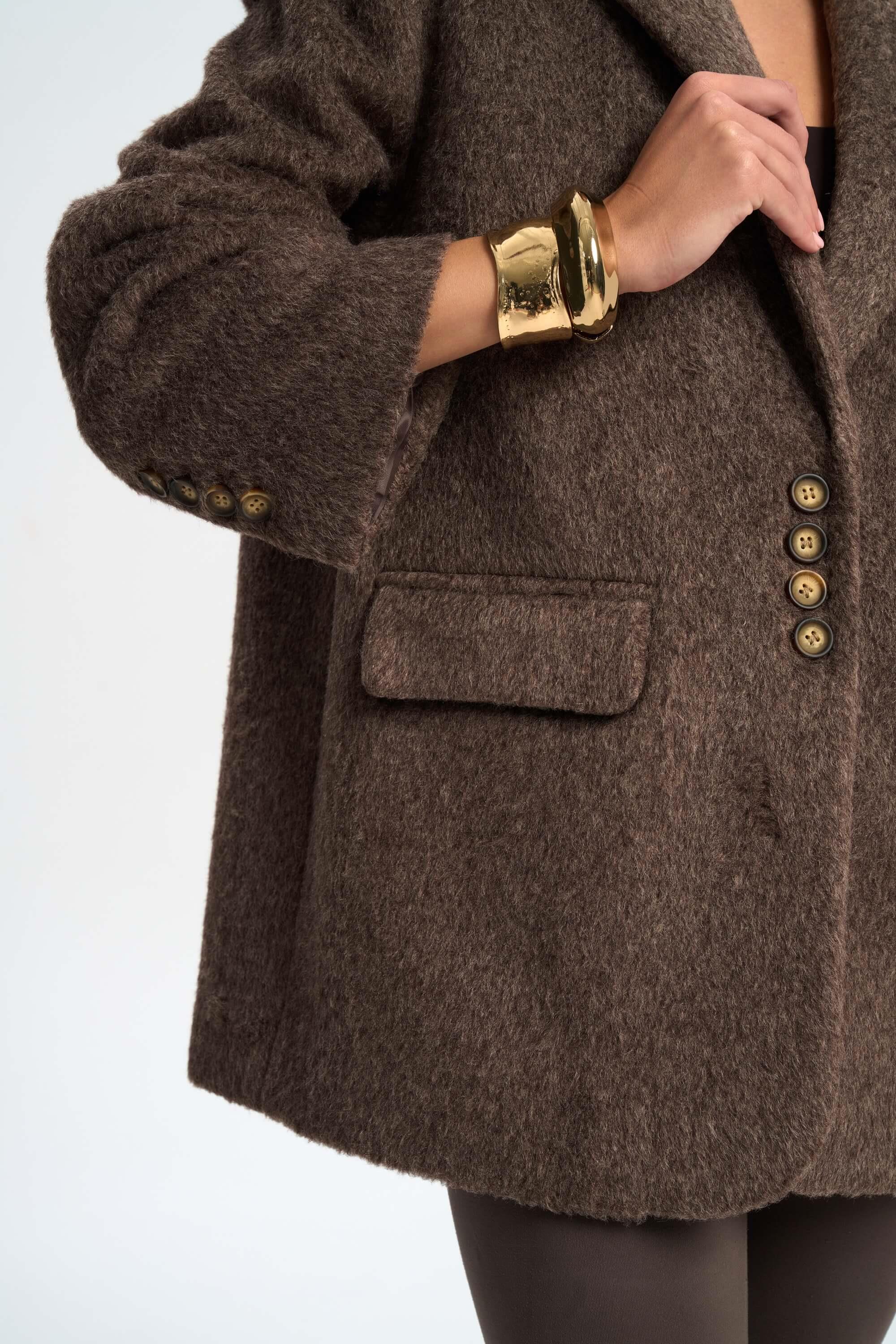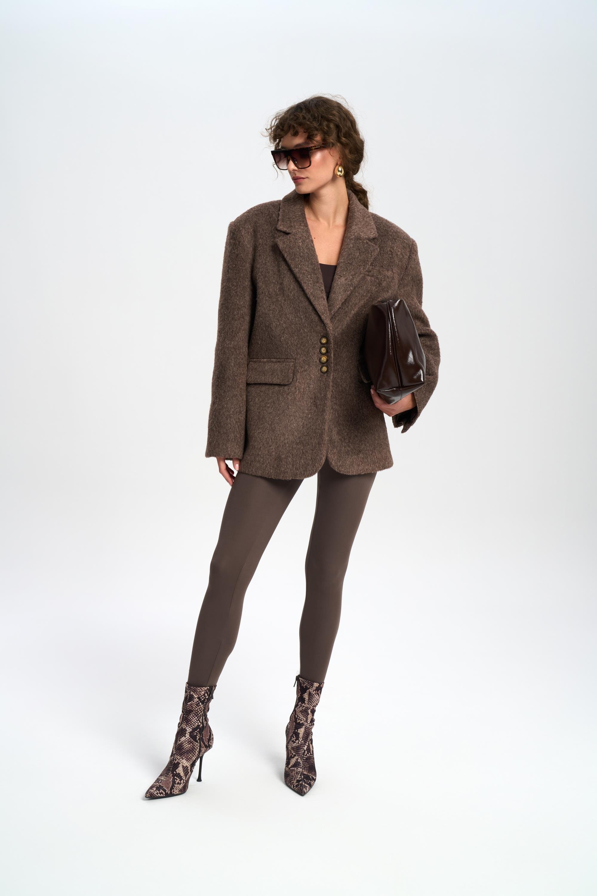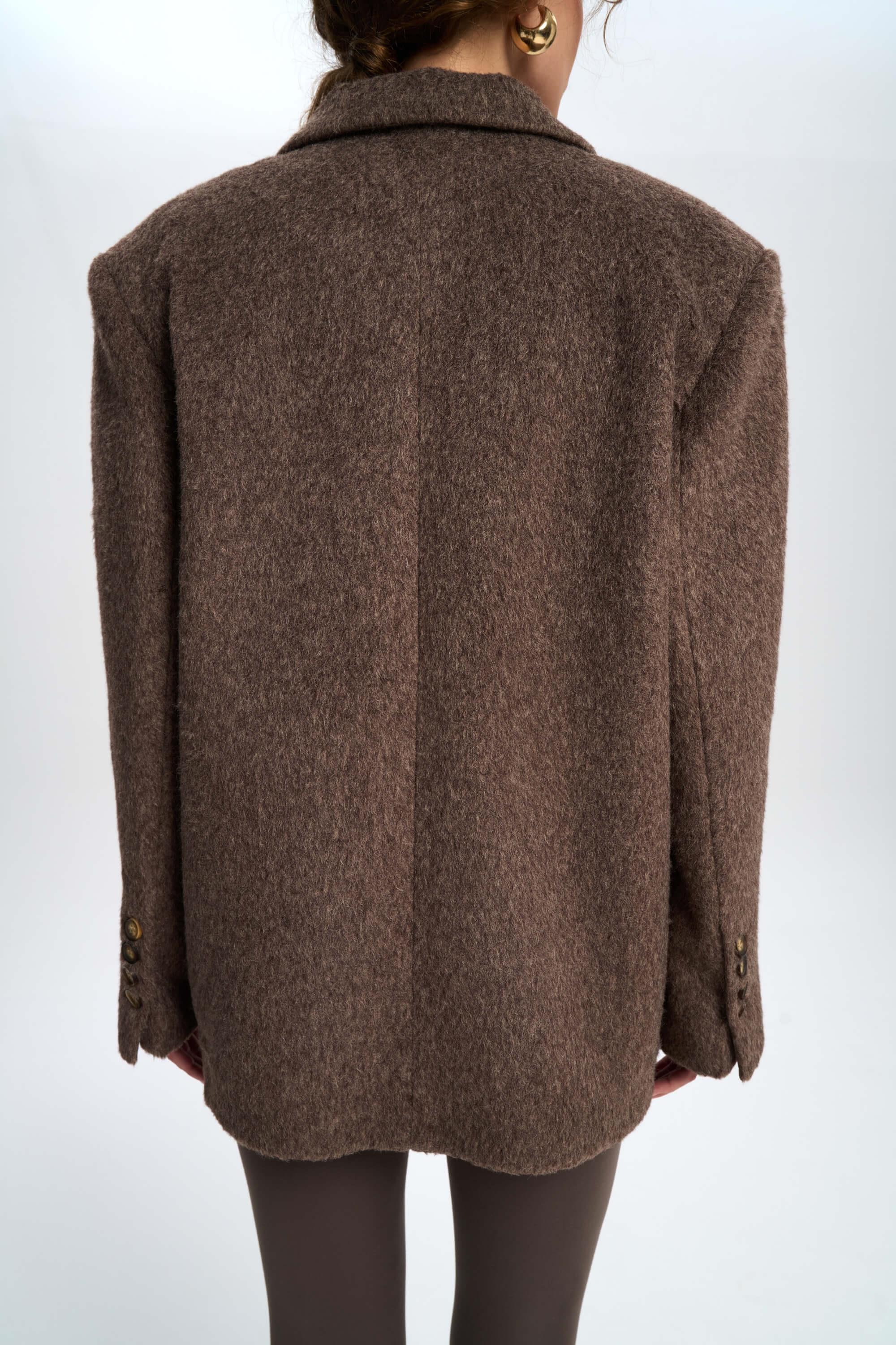Katlı yaka, dökümlü blazer ceket. Vatkalı ve astarlı. Önü ve kolları düğmeli.