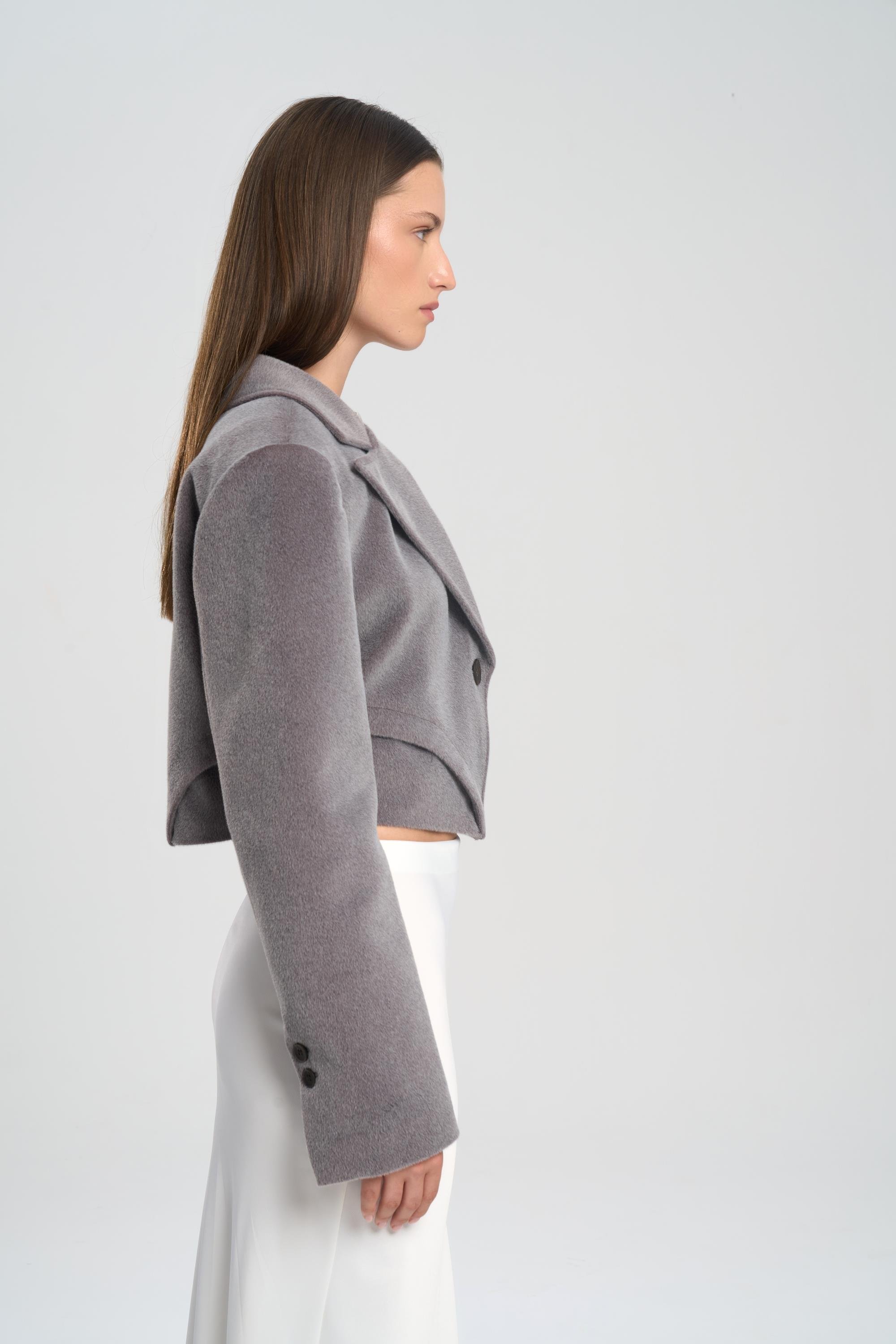 Teya Gri Üçgen Detay Crop Ceket (8684923034483)