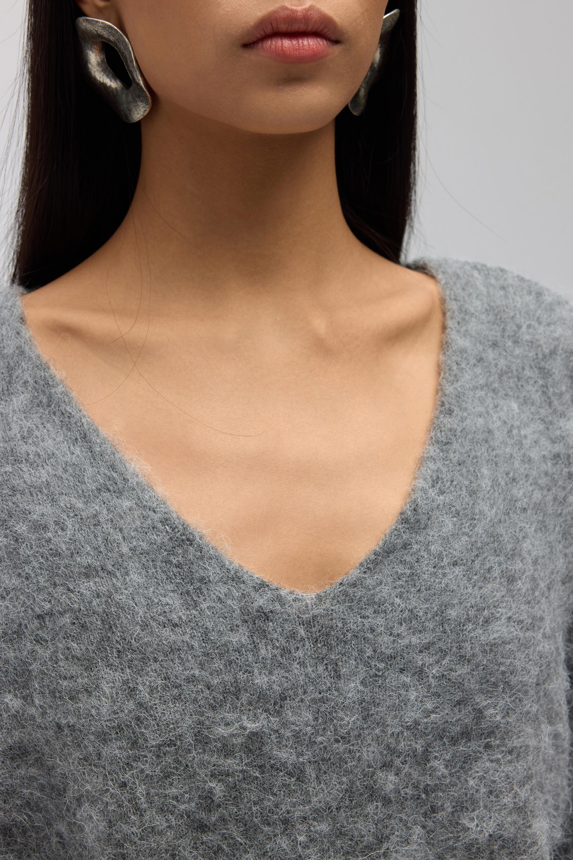 Zerium Basic V Yaka Gri Triko Kazak